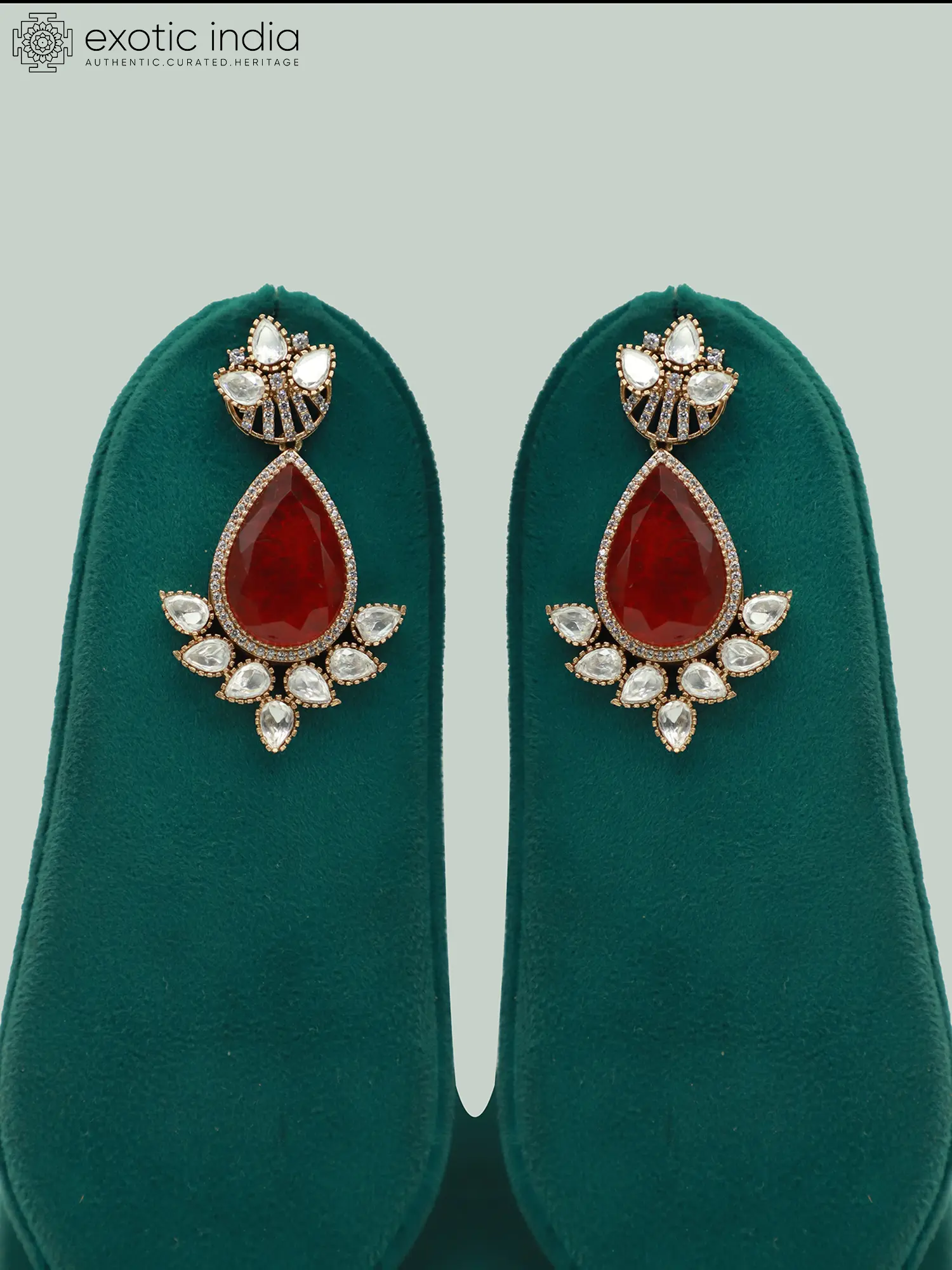 Features a striking floral motif meticulously adorned with moissanite kundan and sparkling diamond-like stones.
