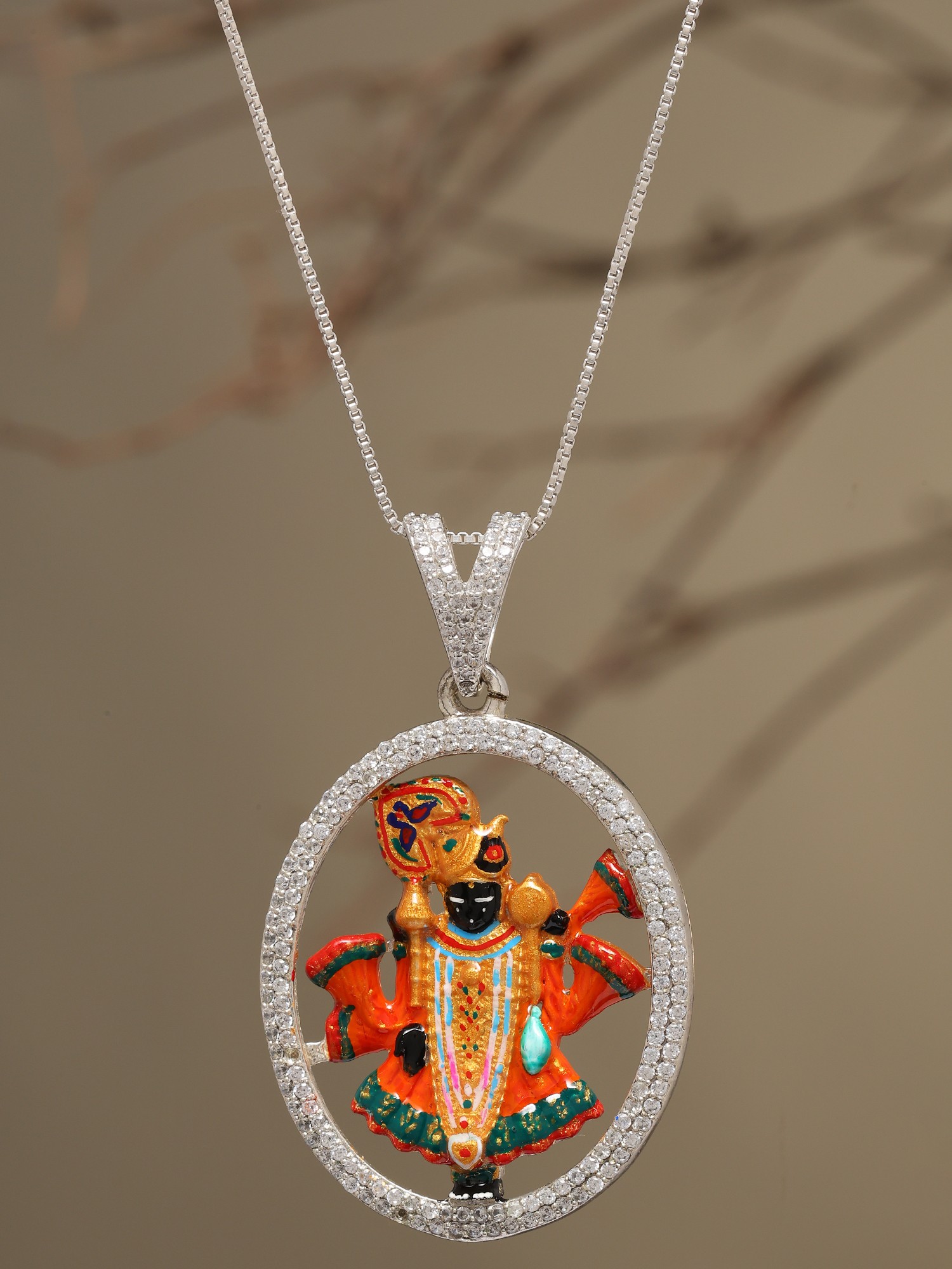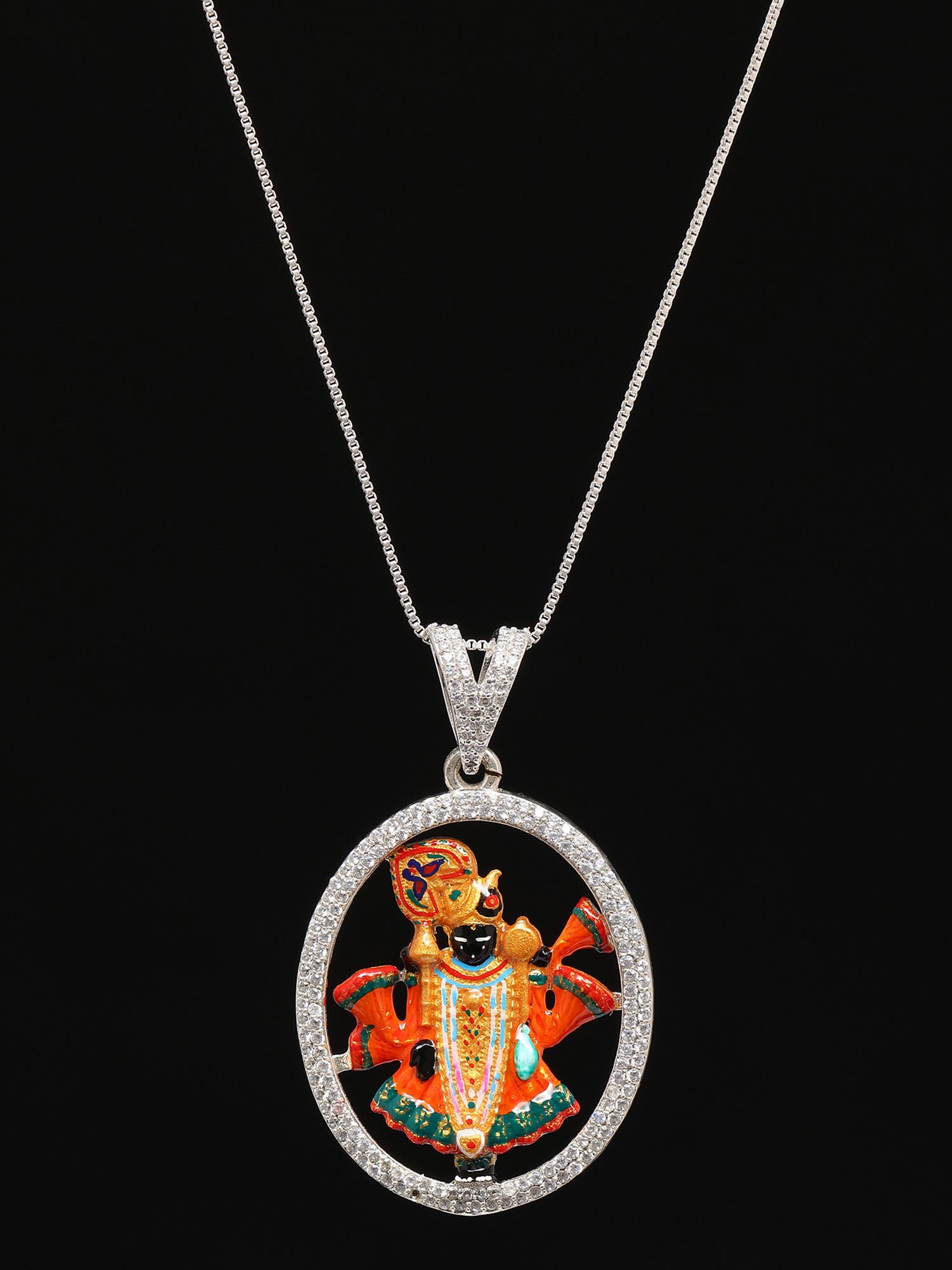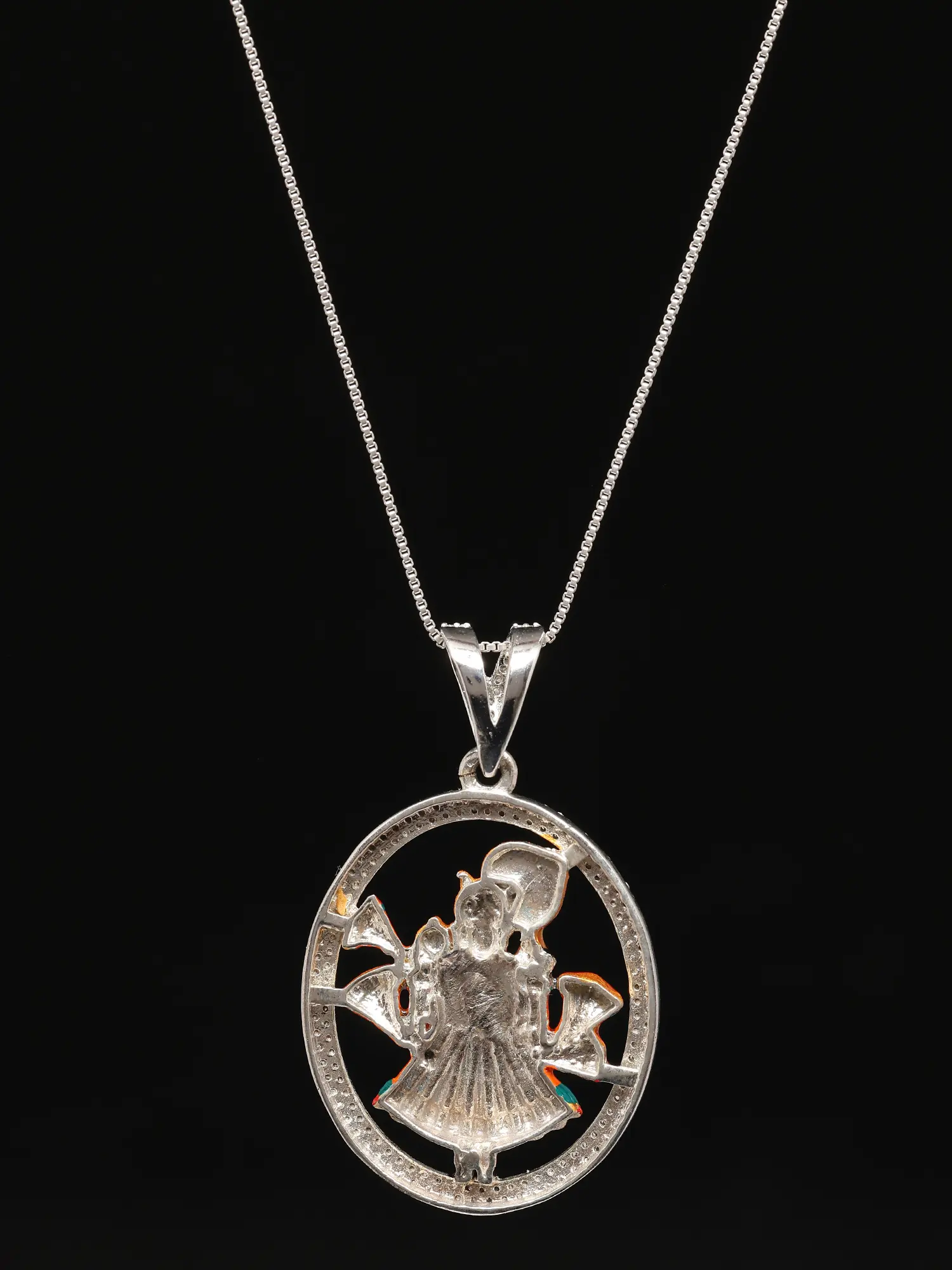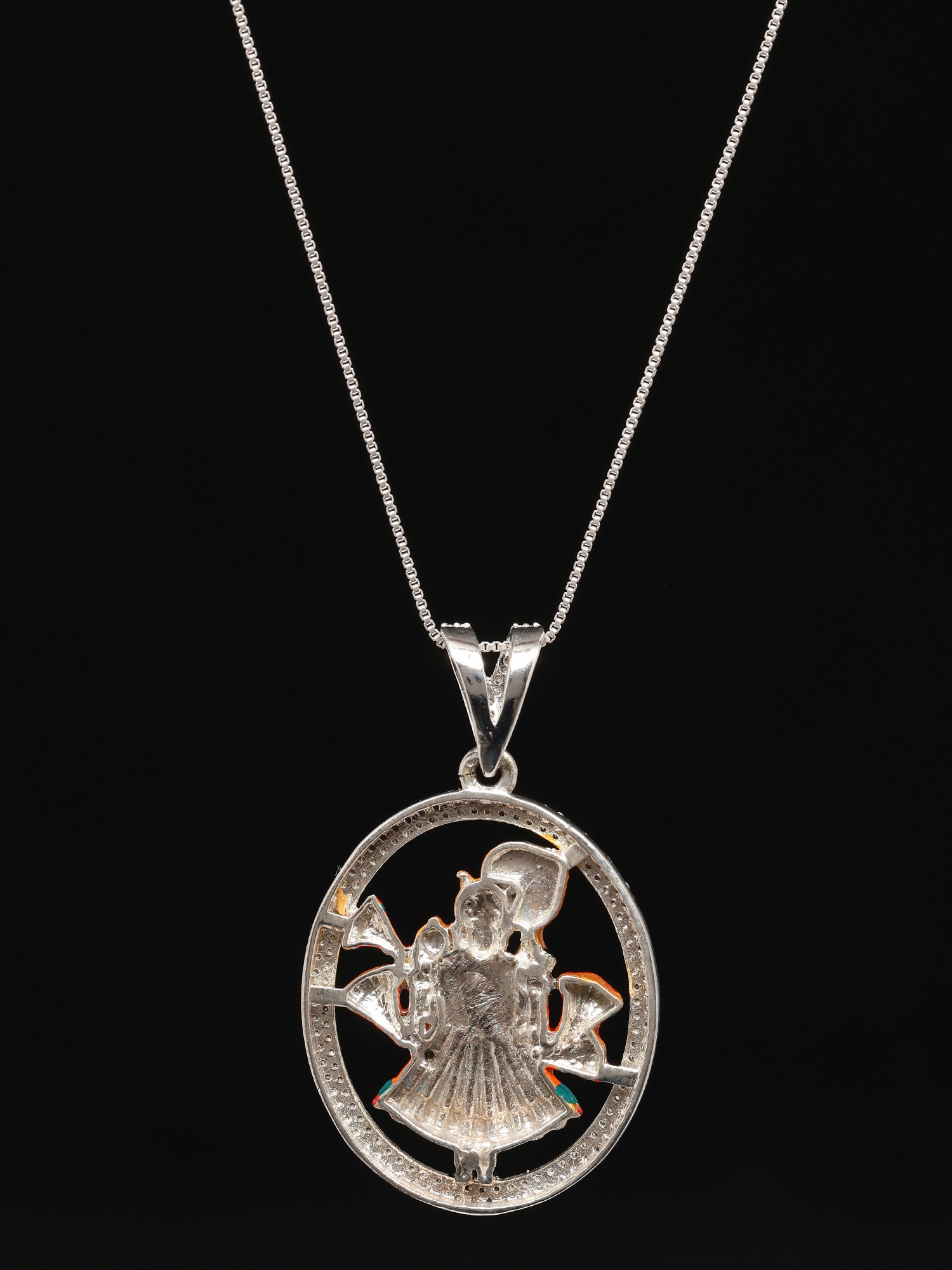 Sterling Silver Murli Pendant with Round Shape Multi Gemstone