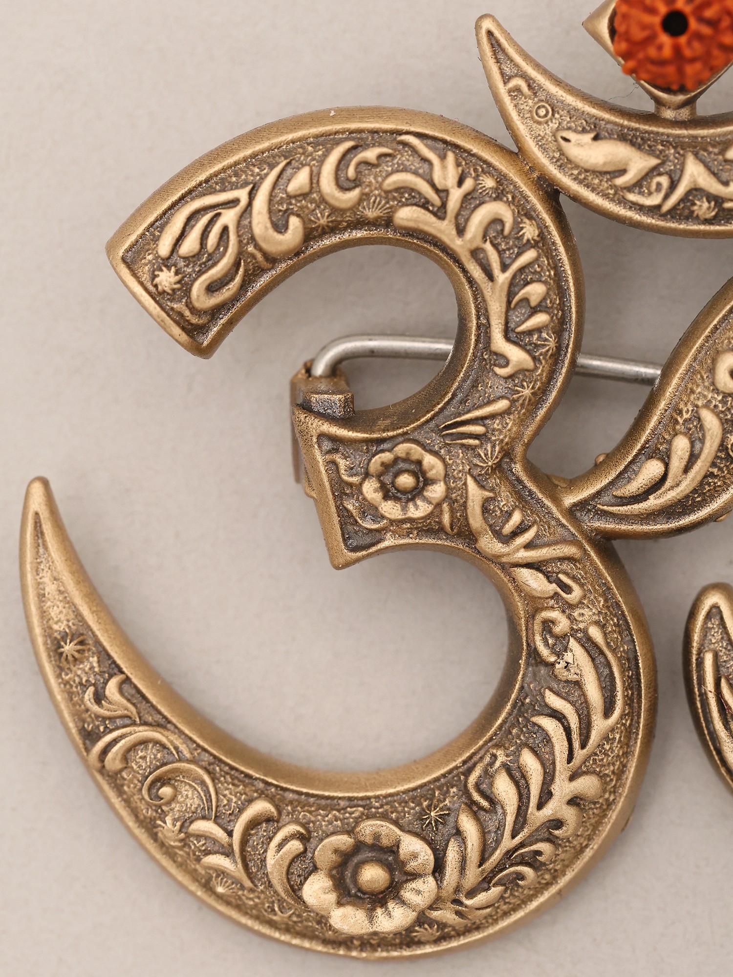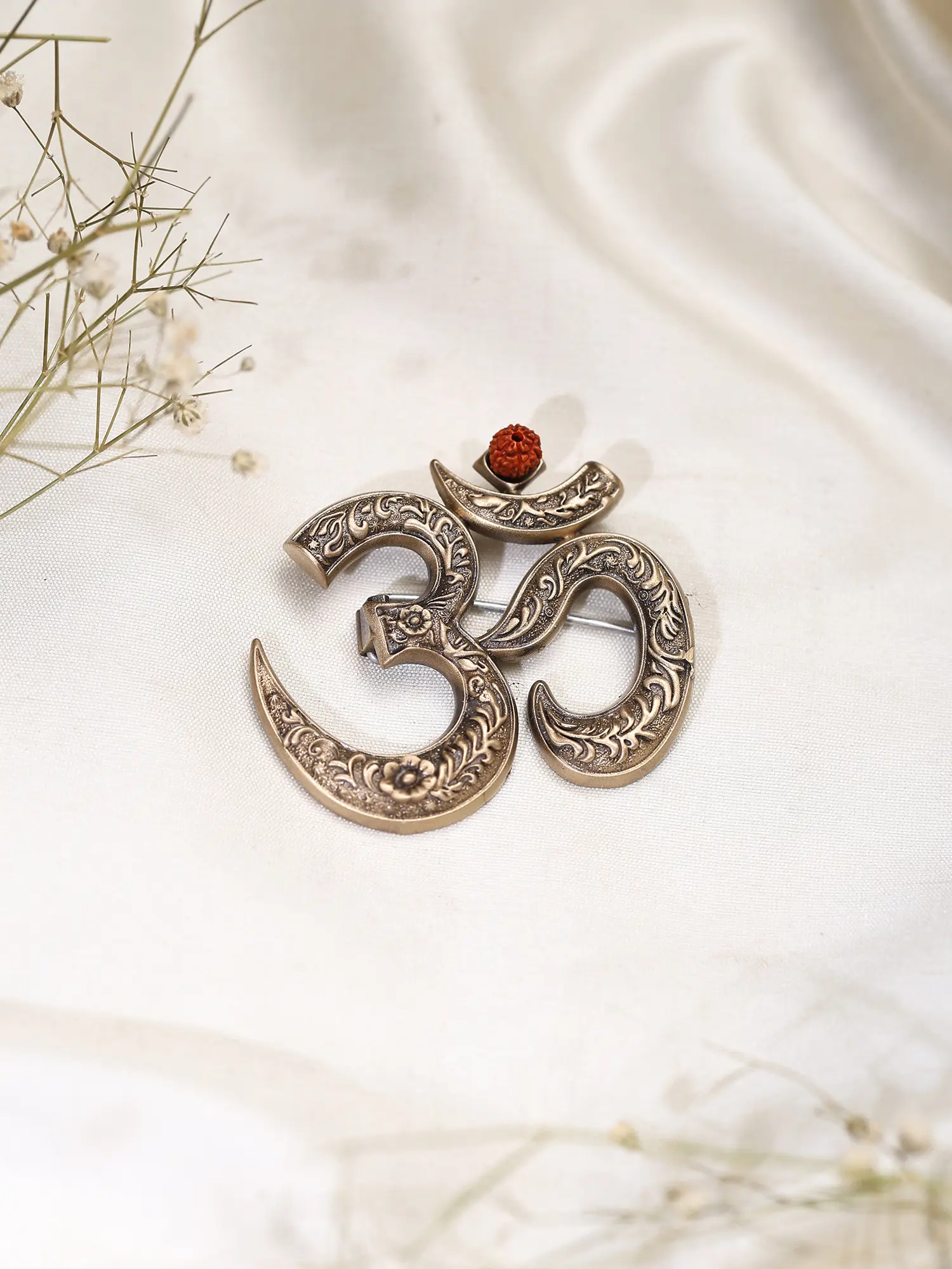 The "Om" symbol is universally recognized as the primordial sound of the universe, representing consciousness, creation, and ultimate reality in many Eastern traditions. It is a mantra and a visual representation of the divine, invoking a sense of calm and spiritual awareness. The Rudraksha, often associated with Lord Shiva, is believed to offer protection and clarity.