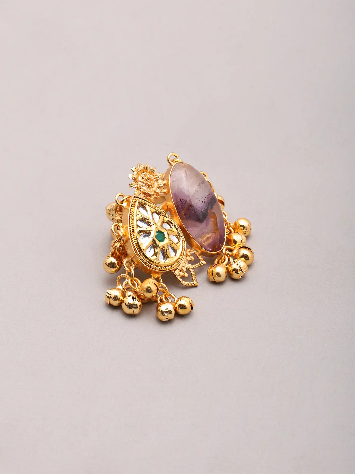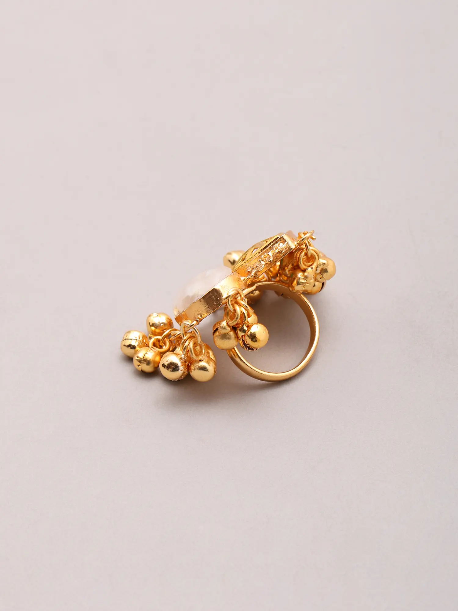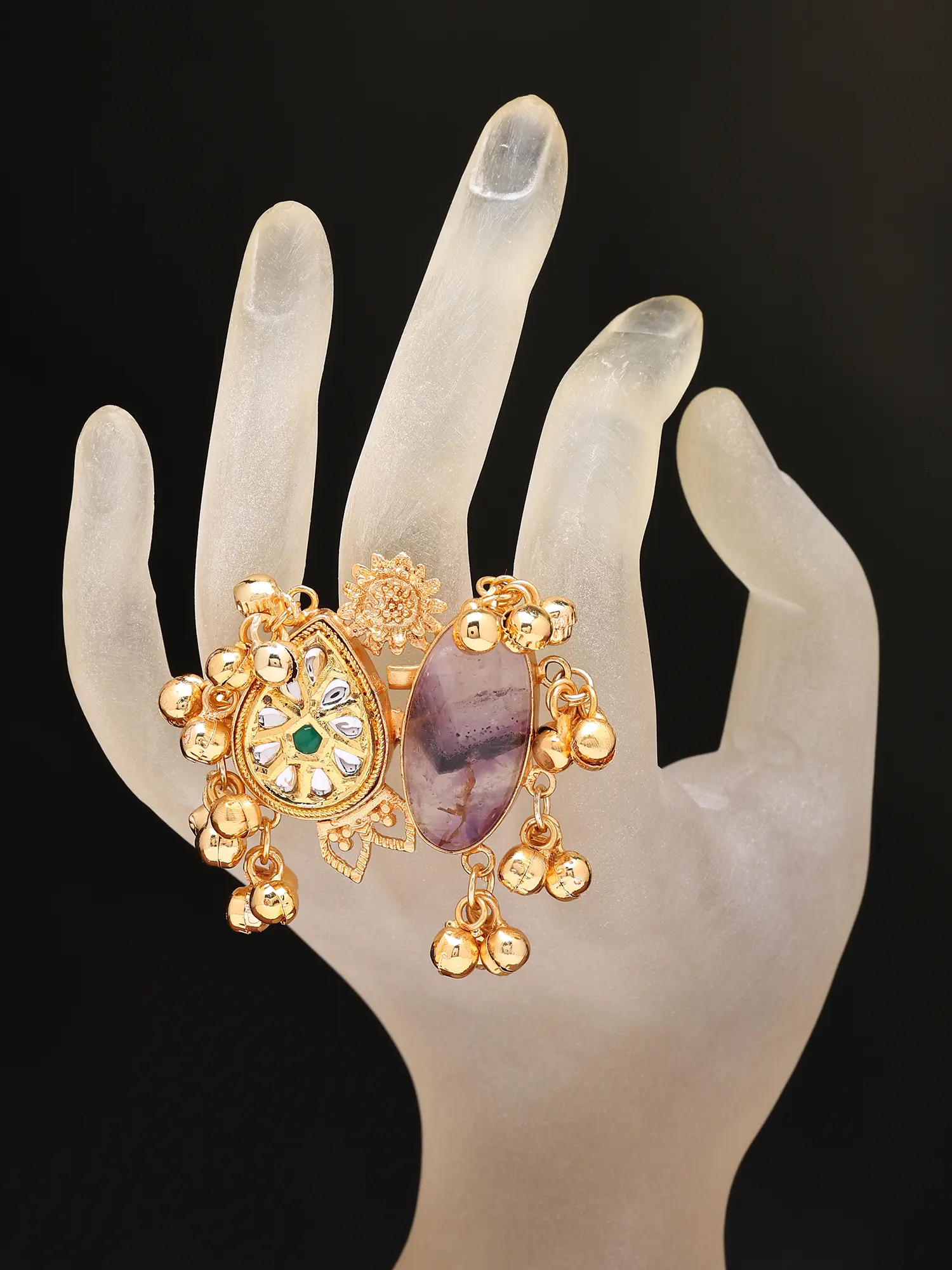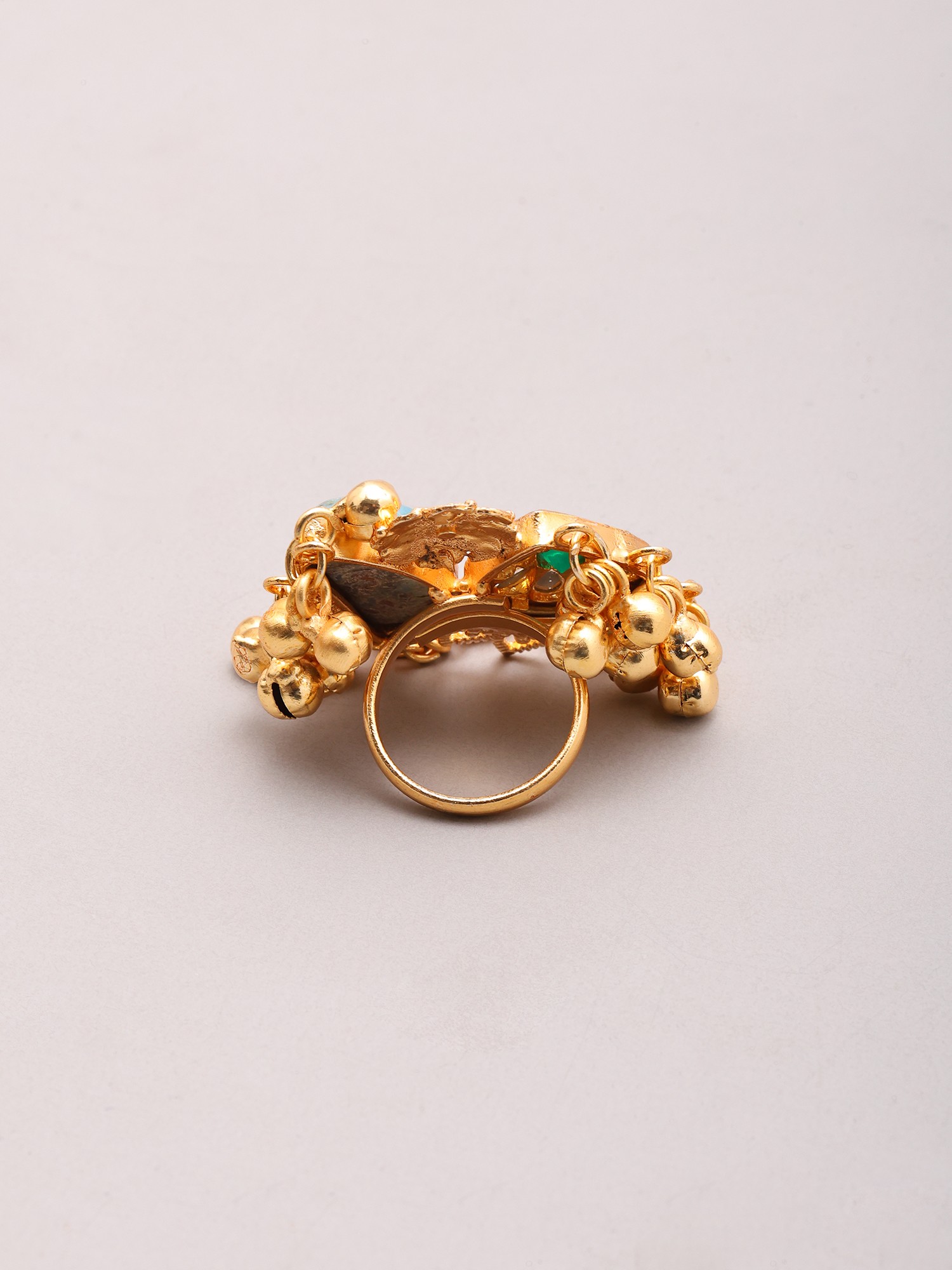 Ethnic Stone Studded Statement Ring with Ghungroo Cluster