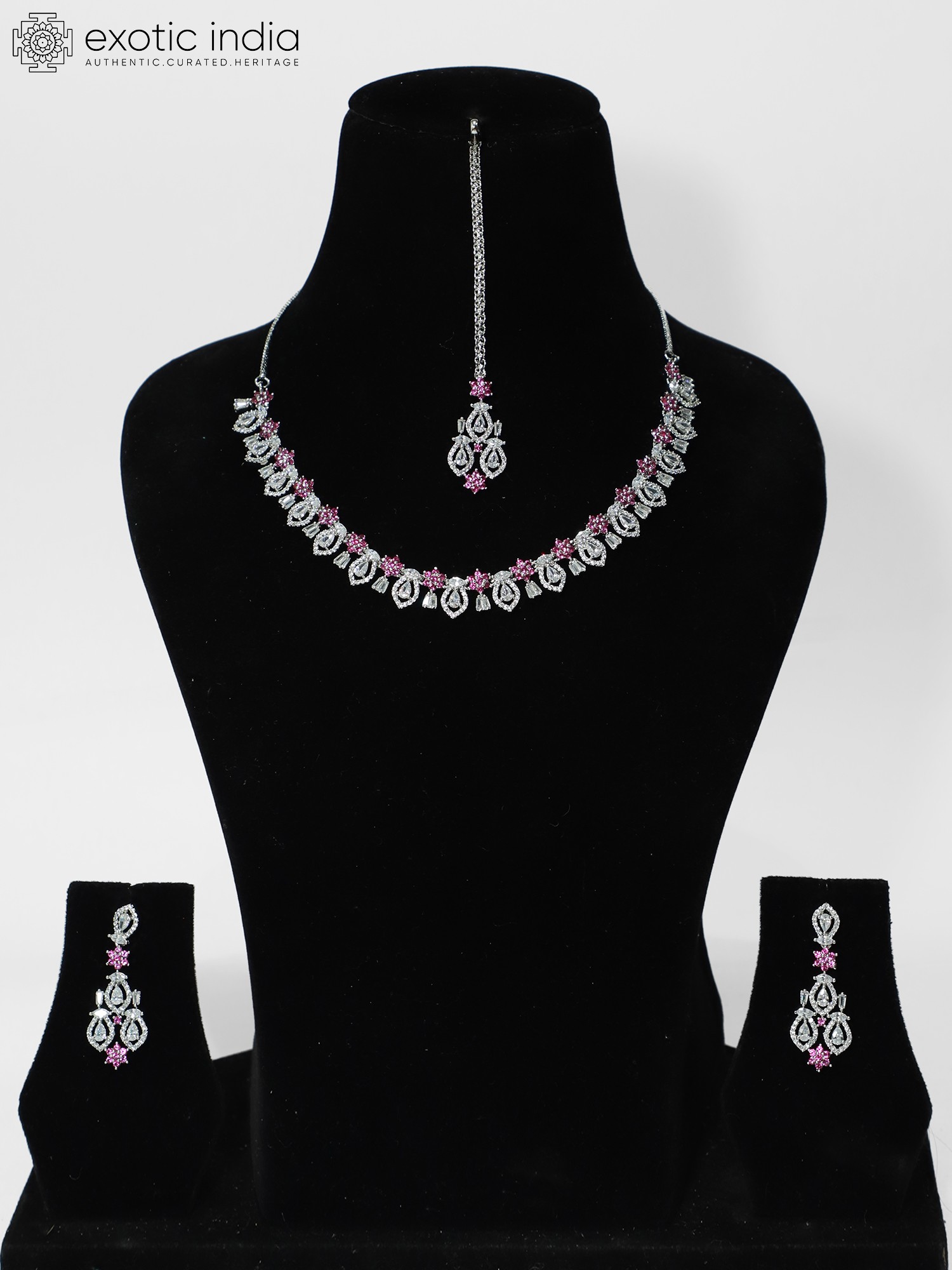 Stone Studded Exquisite American Diamond Necklace Set With Earrings