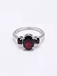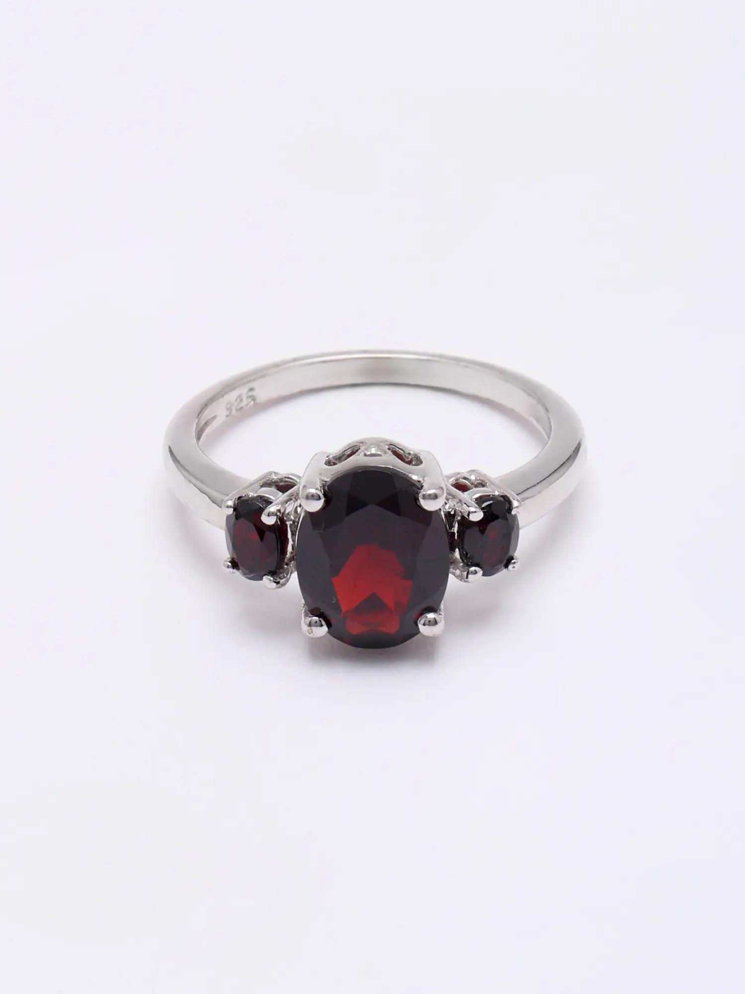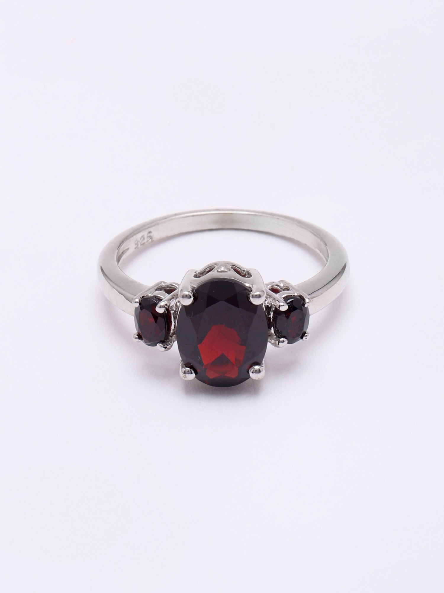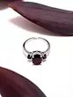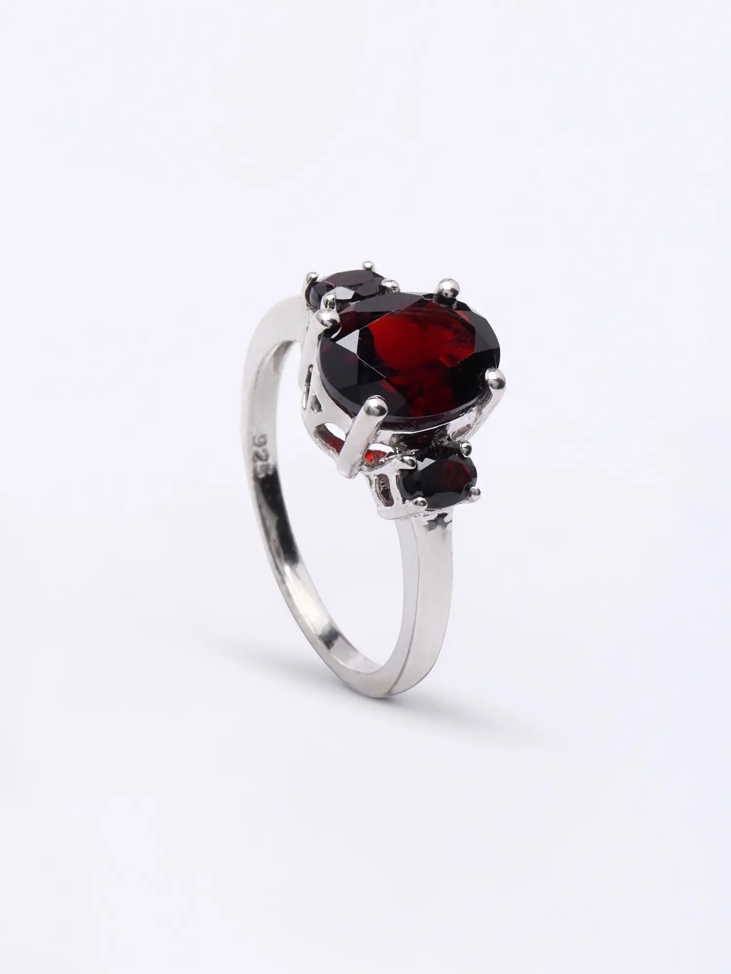 Adjustable Floral Design Sterling Silver Ring with Garnet and Crystal Stone