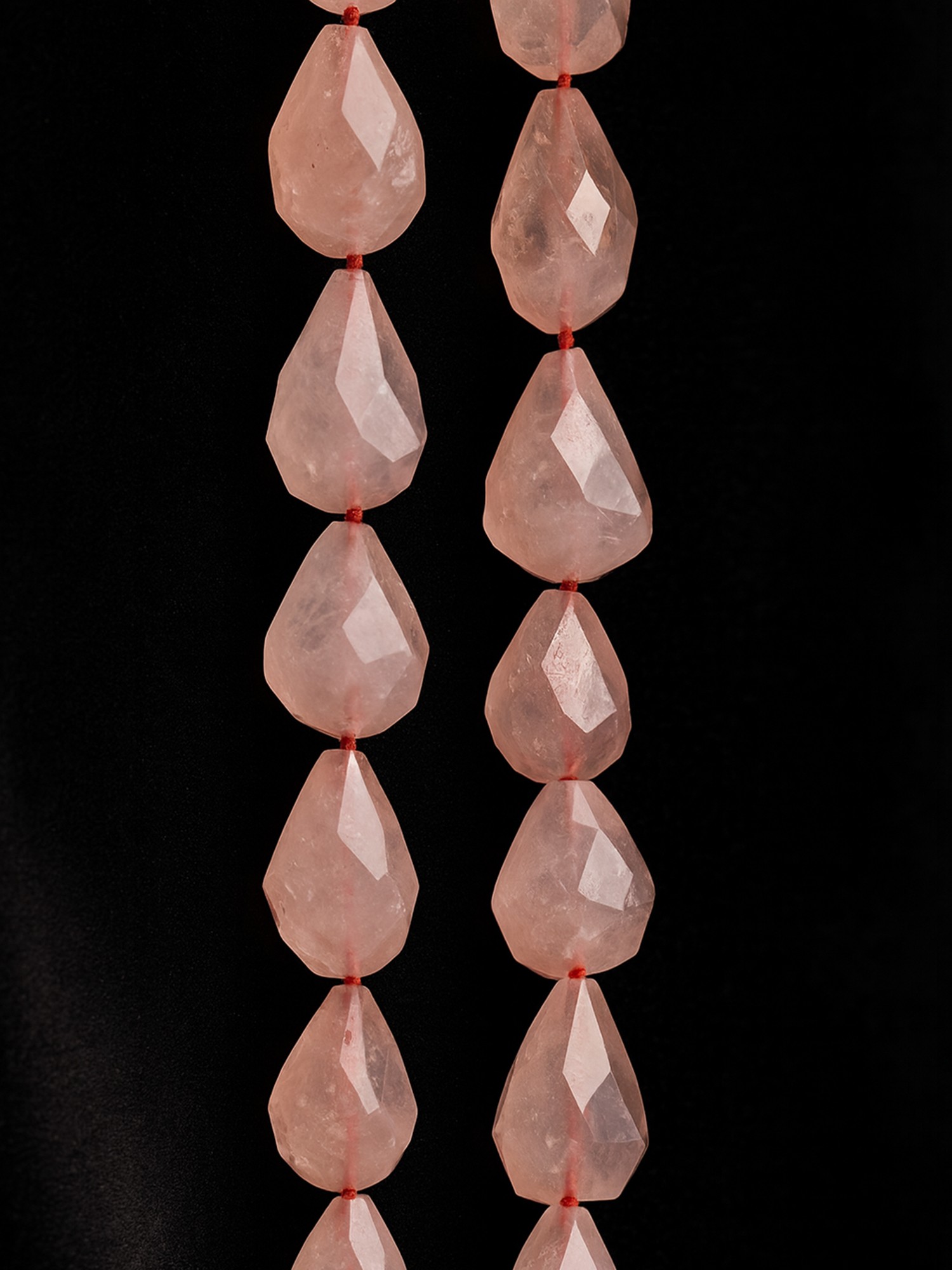 These faceted Rose Quartz straight drilled drops are a string of delicate whispers, each bead a soft echo of love and healing.