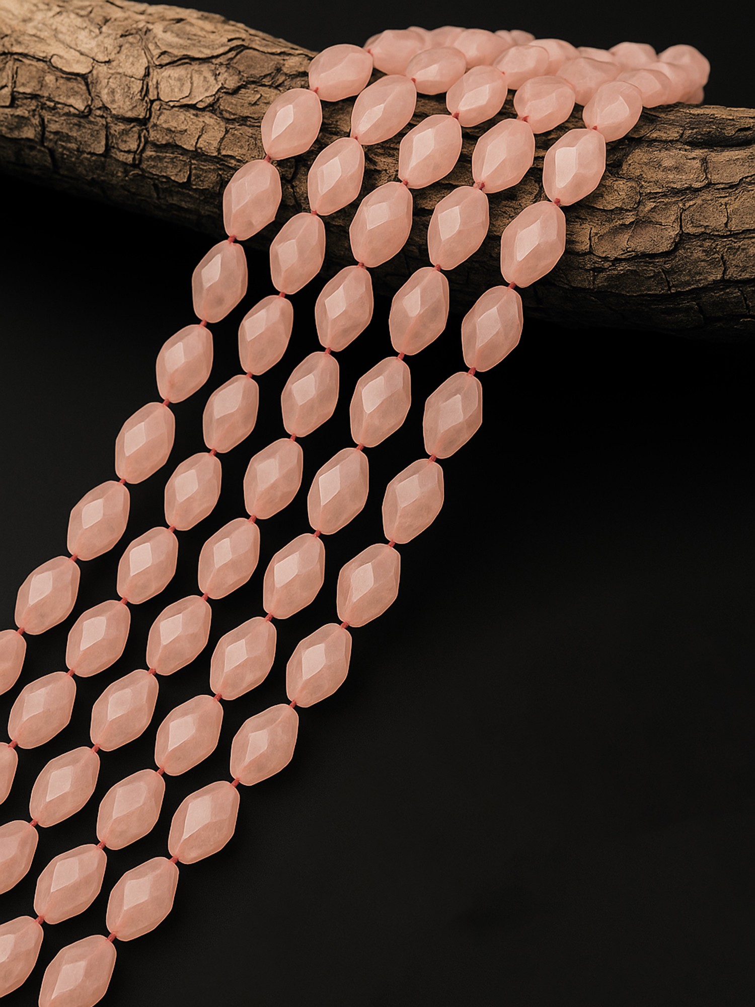 A strand of Rose Quartz drops is not just a piece of jewelry; it's a loving embrace, a nurturing touch for the soul in need of comfort and companionship.