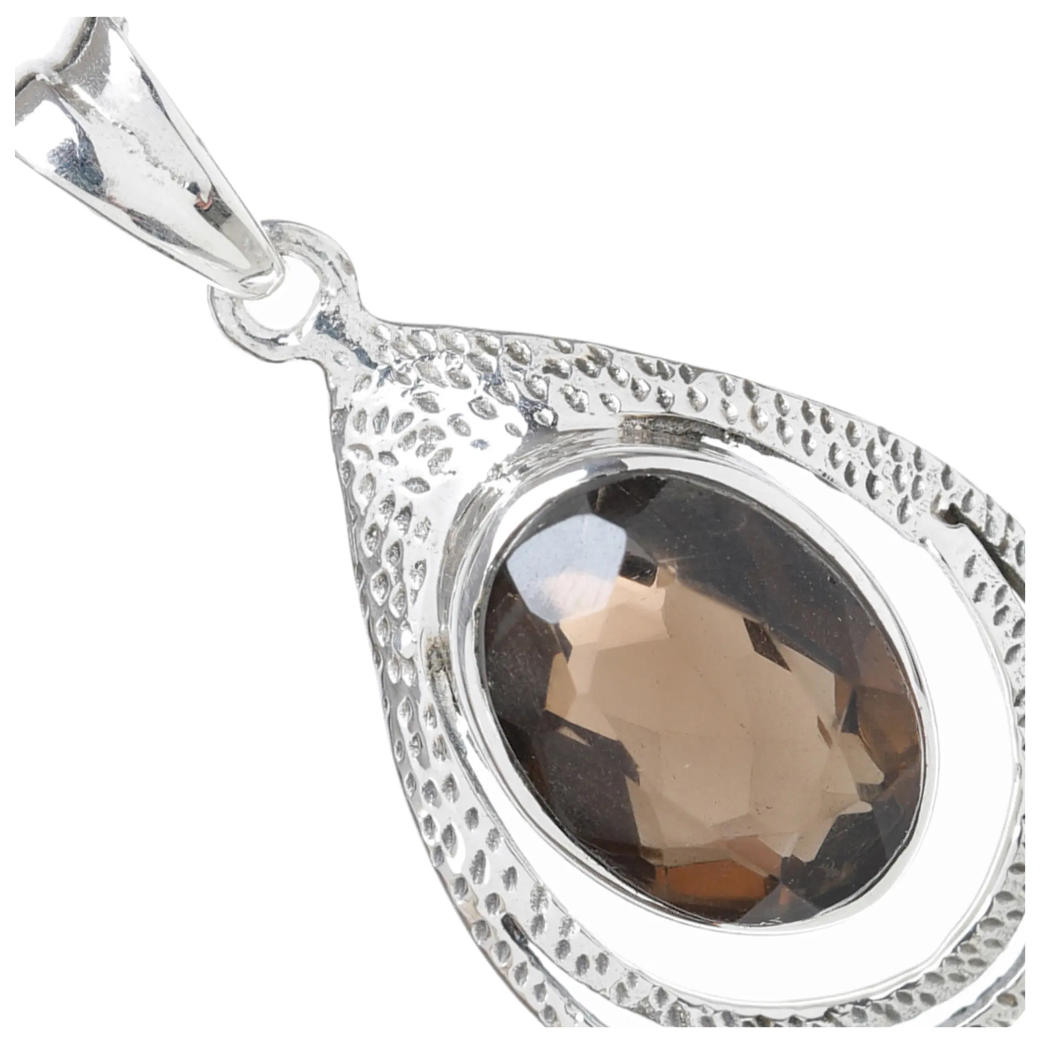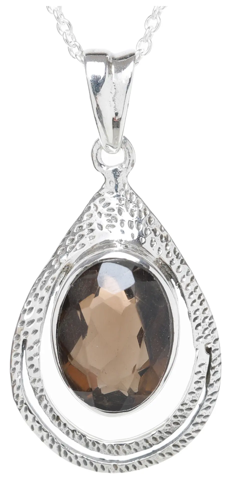 Adorn yourself with a piece that embodies both sophistication and natural beauty. This exquisite pendant features a meticulously cut stone set in a lustrous setting. The rich, earthy tones of the gem are captivating, drawing the eye with its subtle sparkle and intriguing depth. The stone's multiple facets catch the light beautifully, creating a play of shadows and highlights that adds dimension and allure. Its warm, inviting hue complements a variety of skin tones and outfits, making it a versatile addition to any jewelry collection.
