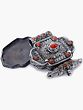 This filigree gau box pendant is studded with the glowy coral gemstone. This ravishing gau box pendant is crafted by expert Tibetan artisans from Nepal. The gau box is the is container covered with the charismatic appeal is used to store a prayer or any sacred writing.