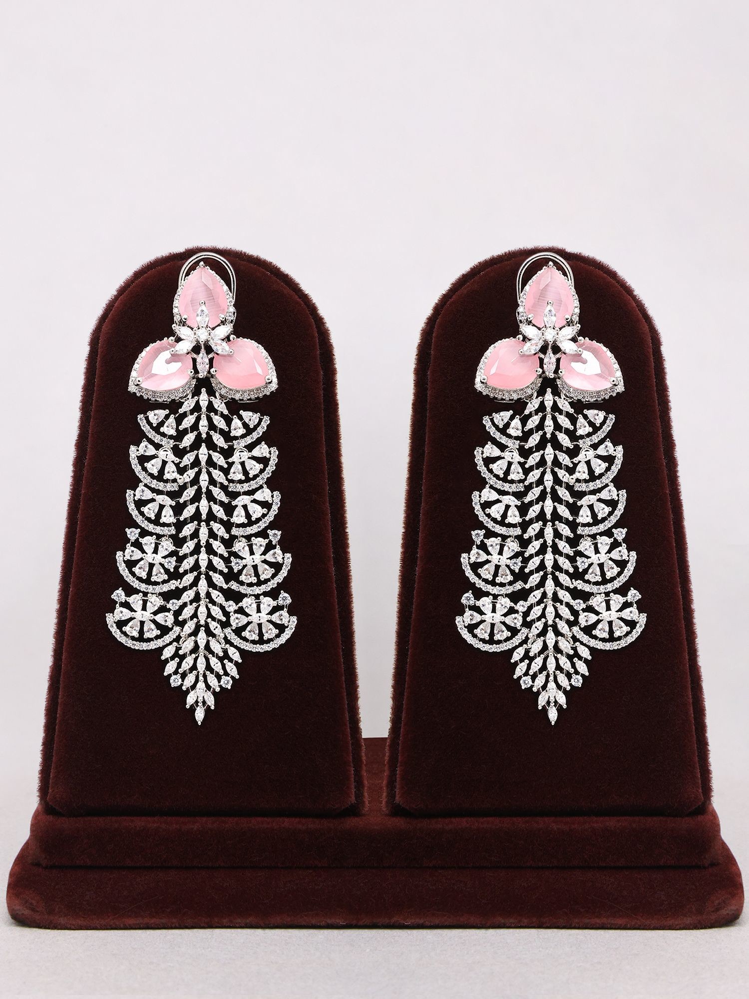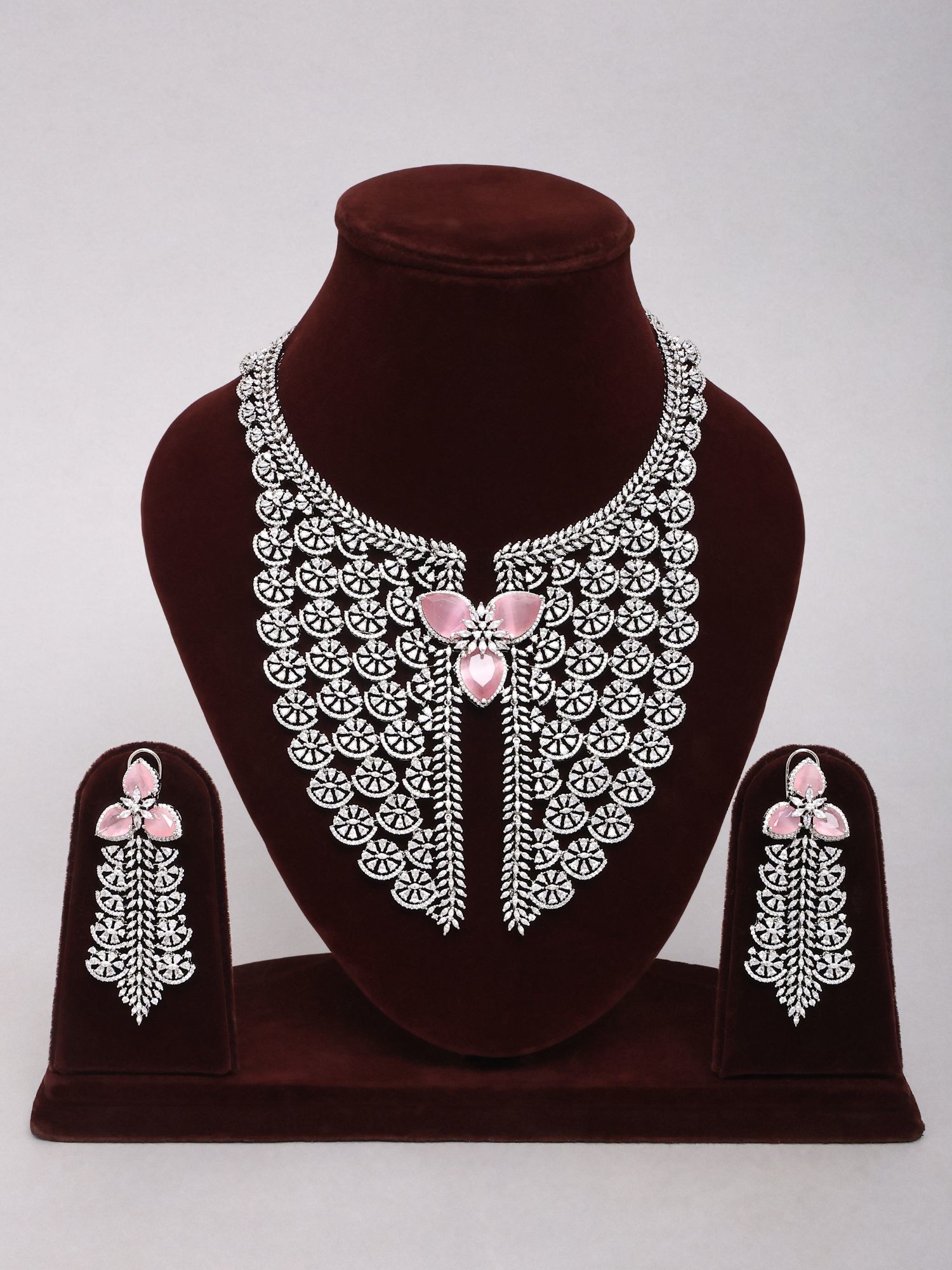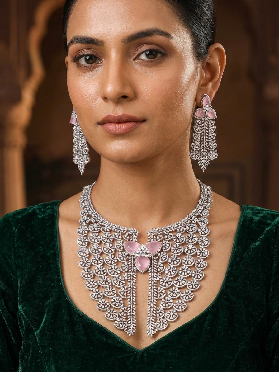 Elegant Necklace and Earring Set with Pink American Diamonds