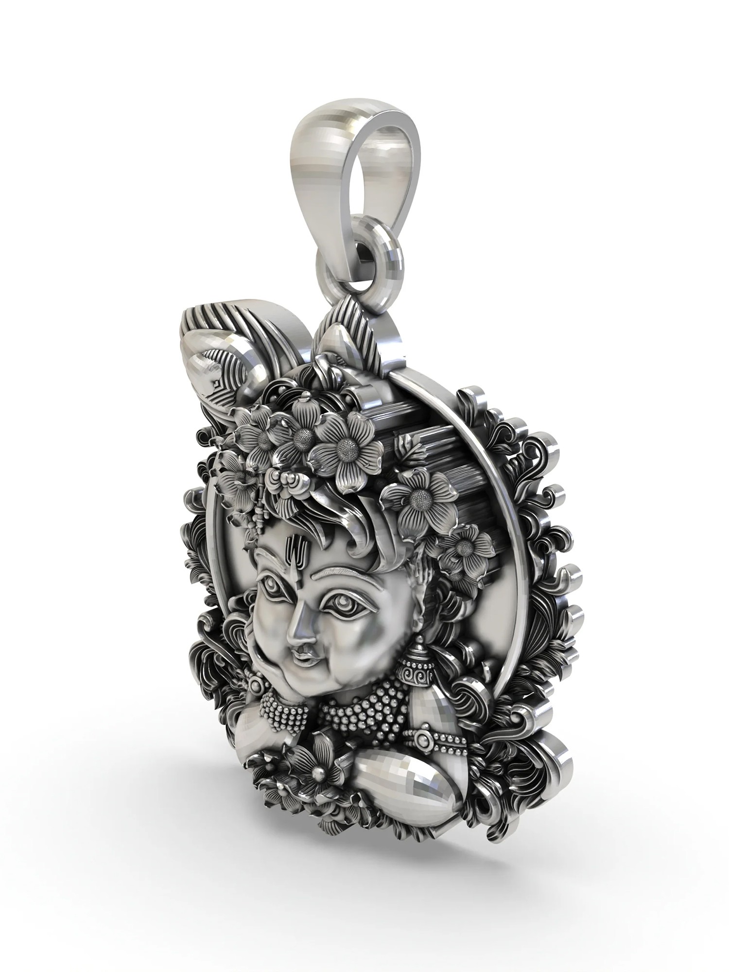 Adorn yourself with the divine grace of Bal Krishna, captured in exquisite detail within this sterling silver pendant. This piece is more than just an accessory; it's a wearable testament to devotion, artistry, and the enduring charm of one of Hinduism's most beloved deities. The pendant showcases the youthful Krishna, his face etched with a gentle smile and a contemplative gaze, as if lost in thought or observing the world with innocent wonder.