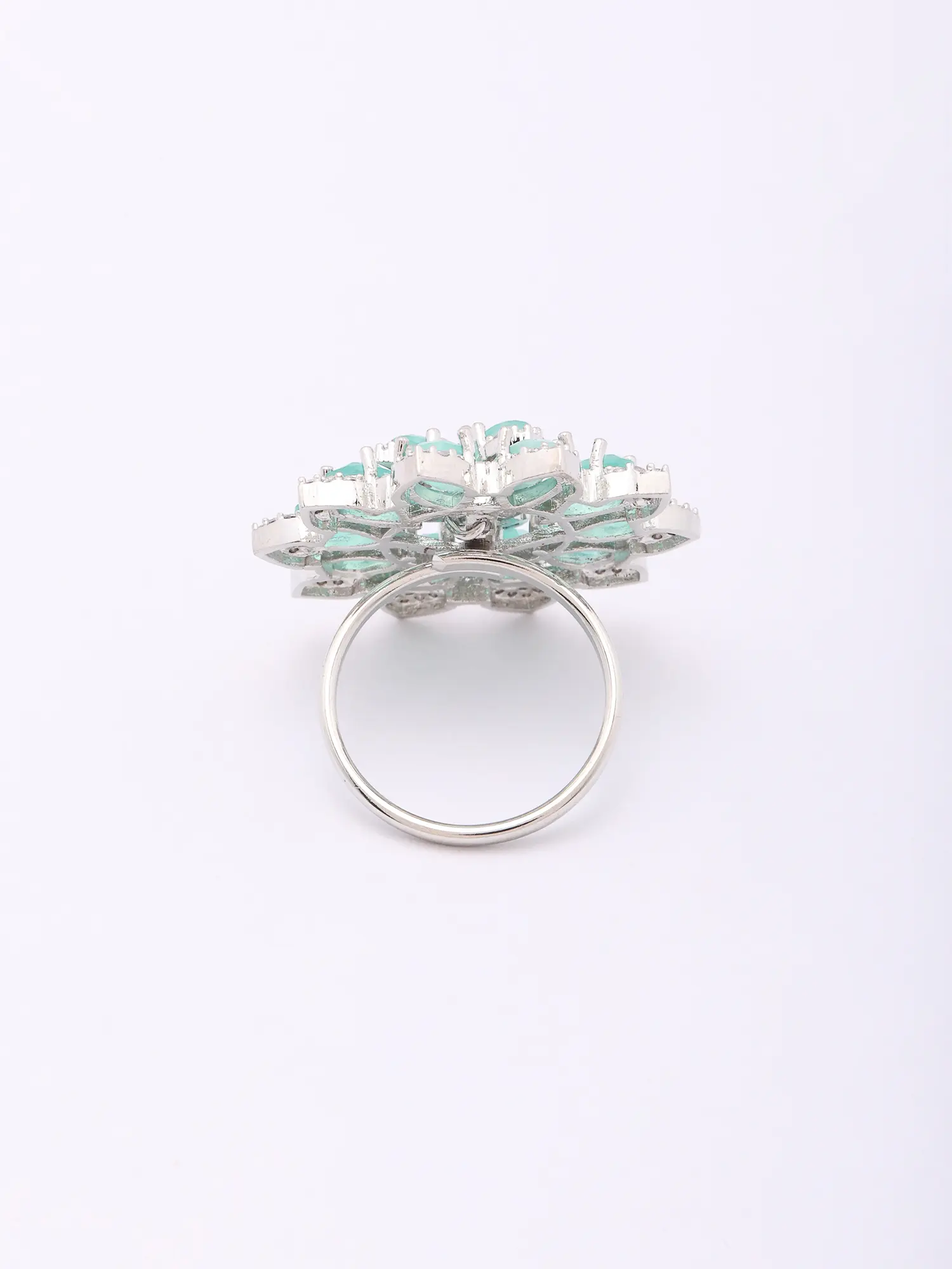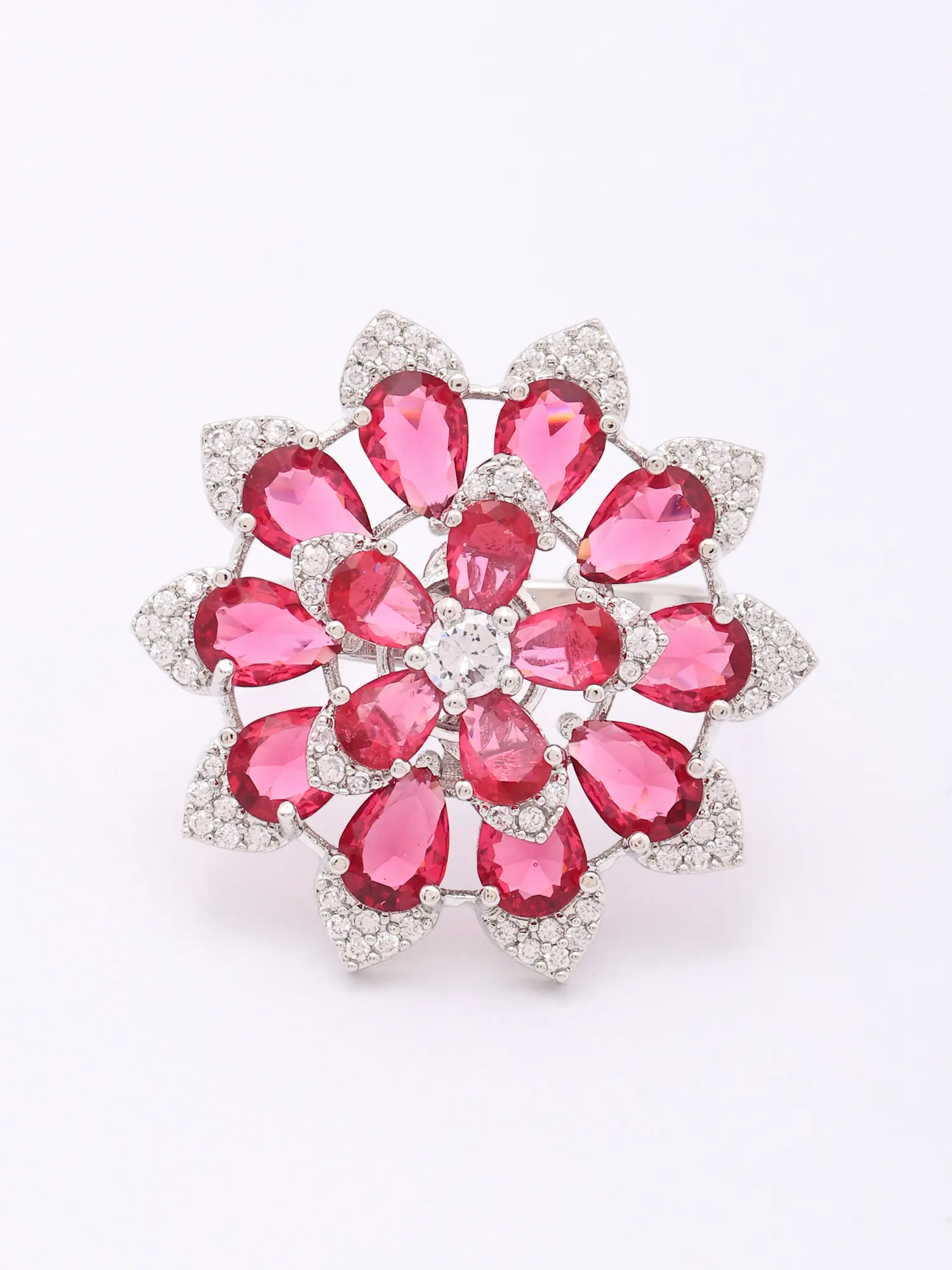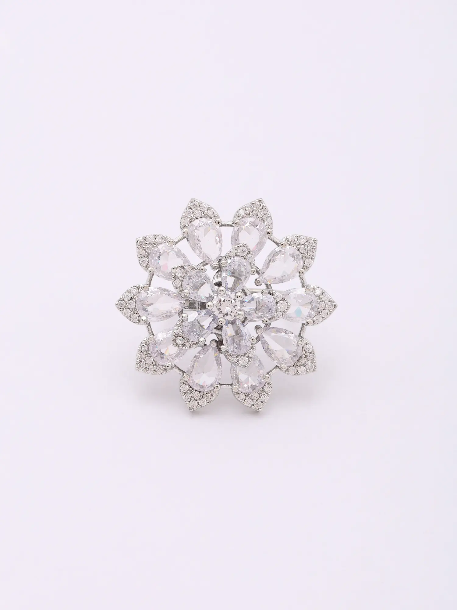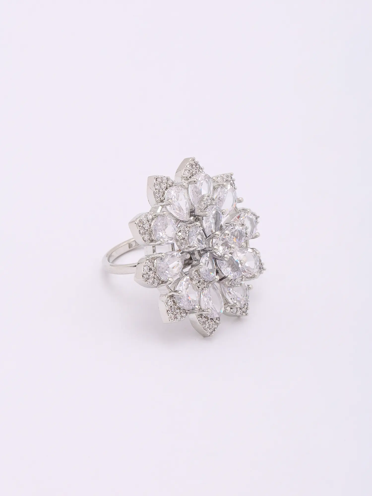 Floral Halo Design Adjustable American Diamond Statement Ring