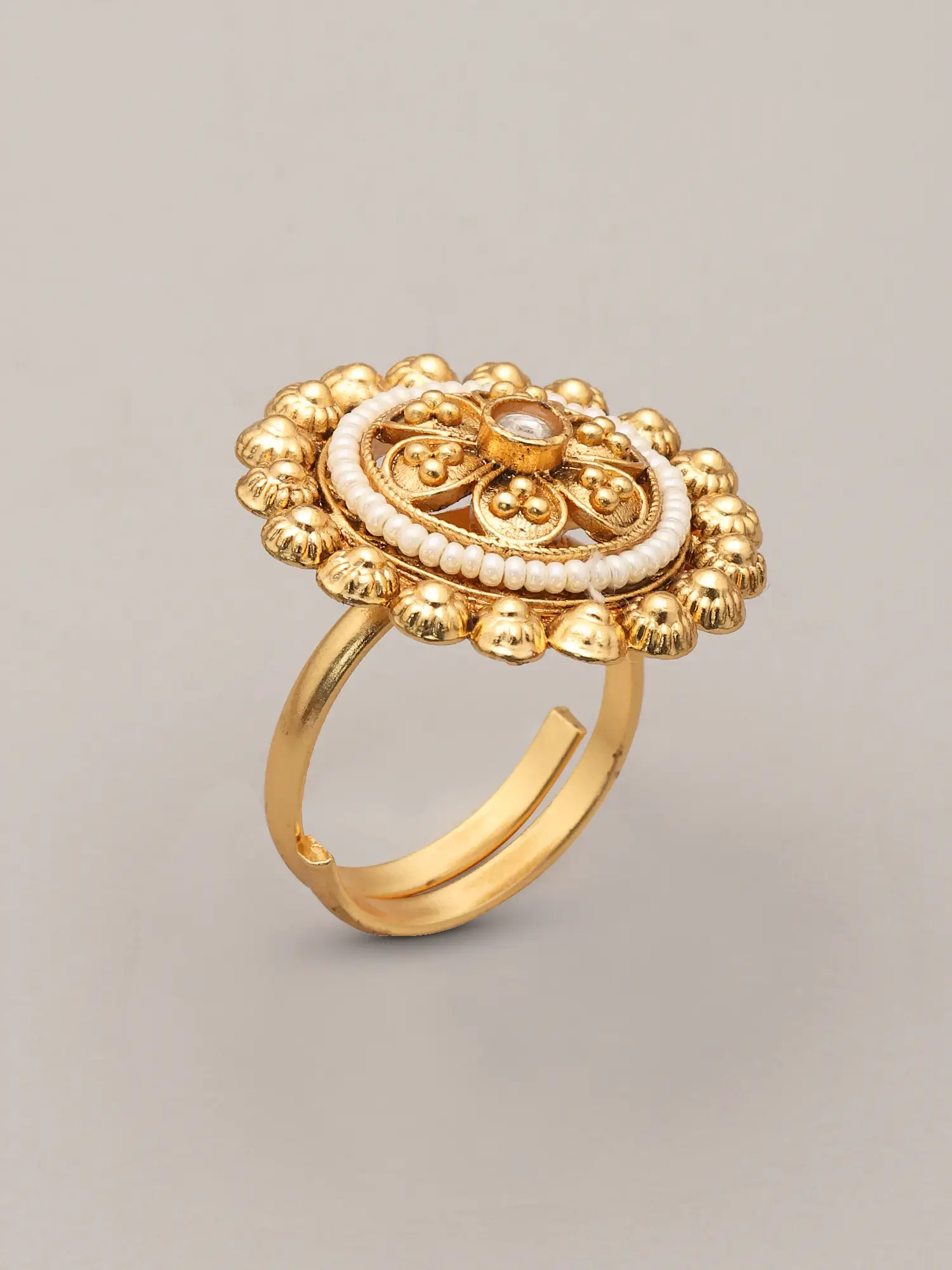 Superfine Sterling Silver Ring with Floral Turquoise Stone