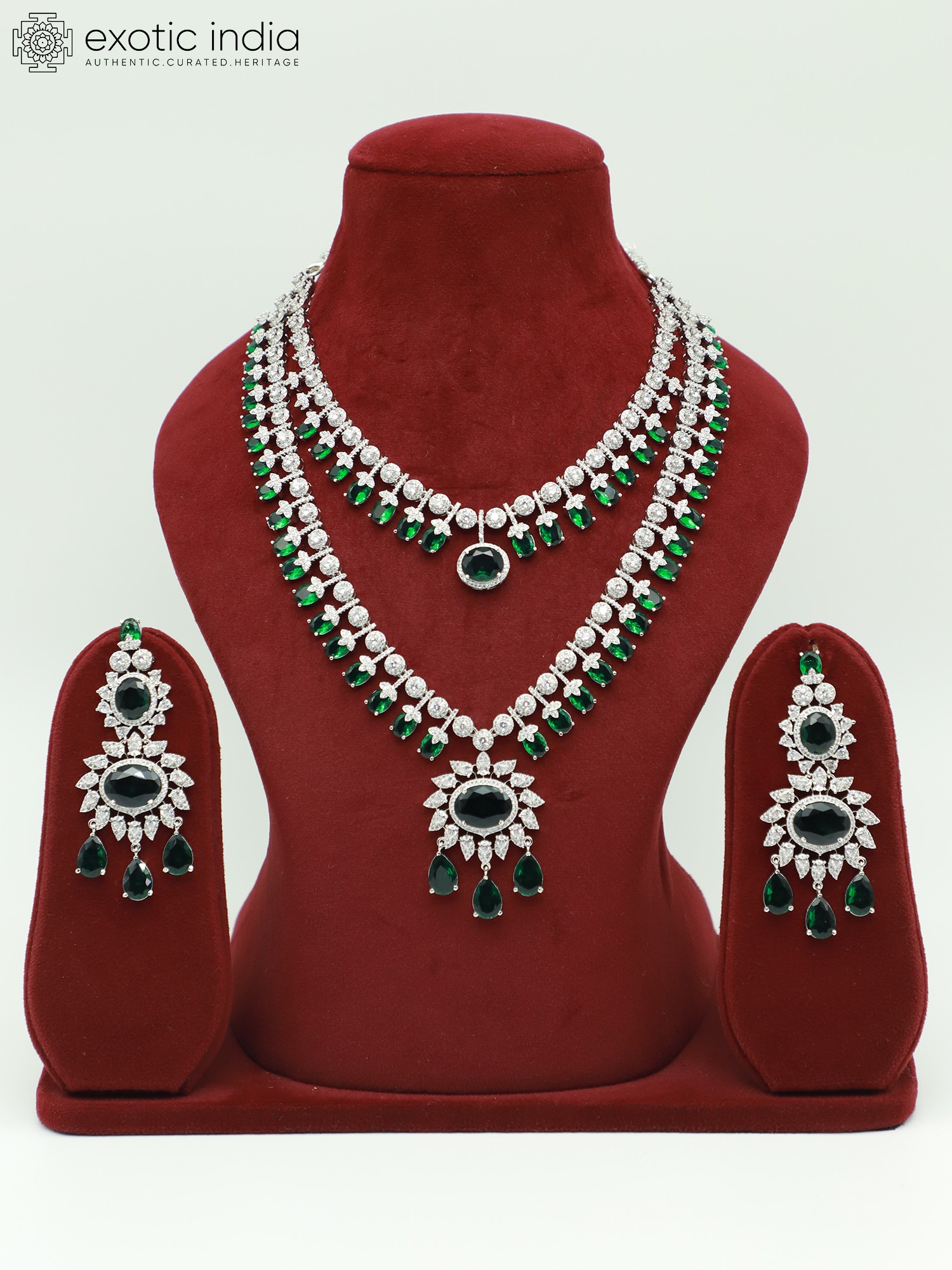 Crafted from high-quality brass, this set is designed for both beauty and longevity. The brass provides a sturdy base for the American diamonds, ensuring that they are securely held in place. The materials are carefully selected to provide a comfortable fit and a lasting shine. This set is not only visually stunning but also practical and durable, making it a valuable investment that you can enjoy for years to come. With proper care, this necklace and earring set will continue to shine and sparkle, maintaining its beauty and elegance.