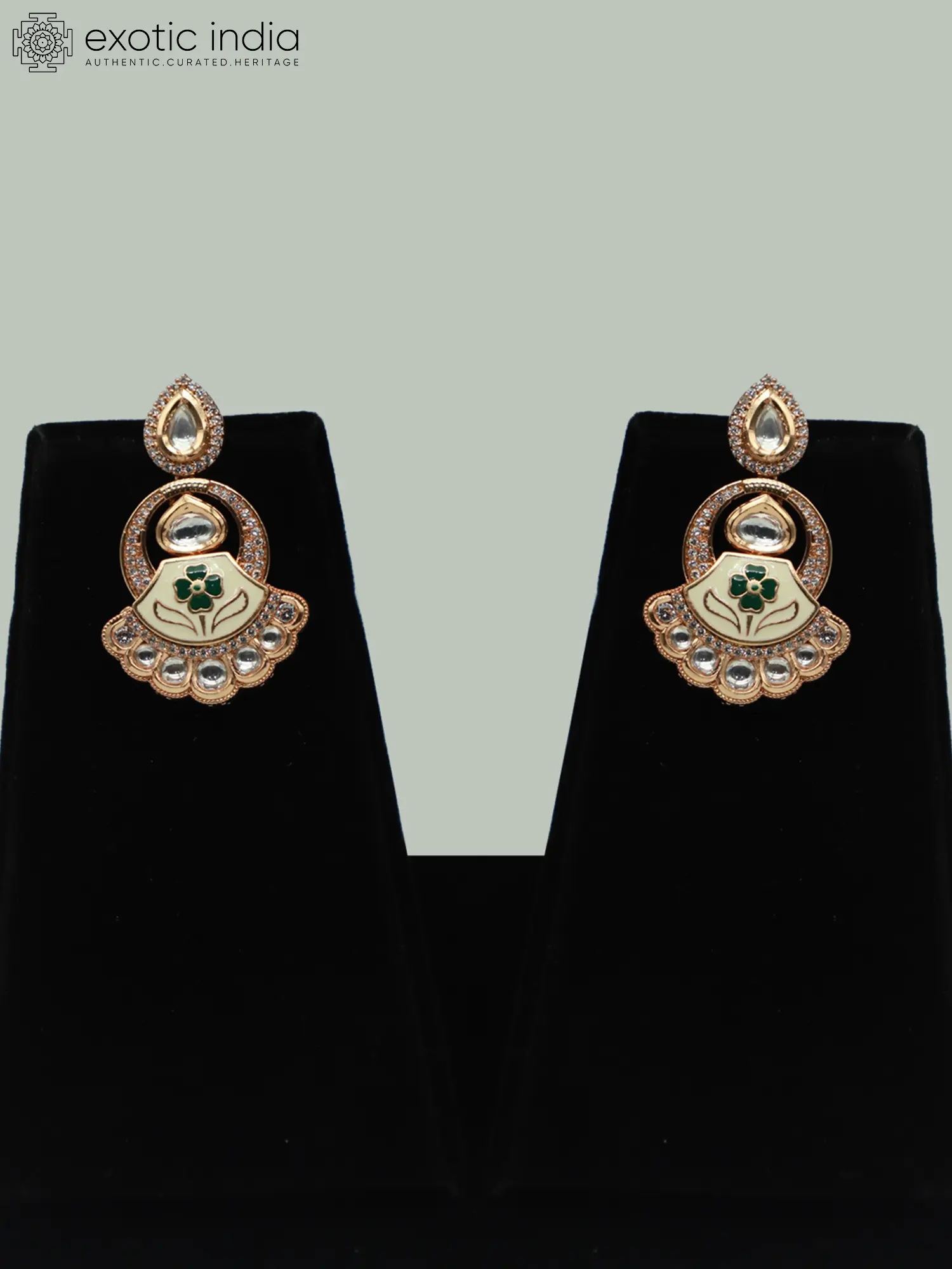Designer Meenakari Necklace Set In Brass With Kundan Stone And Earrings