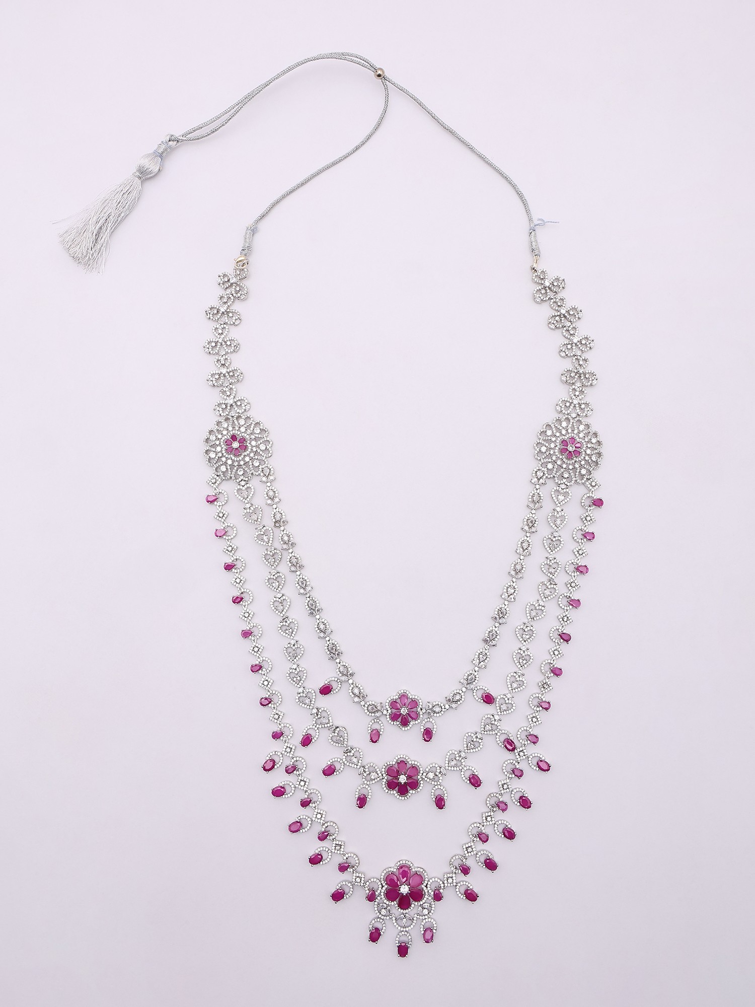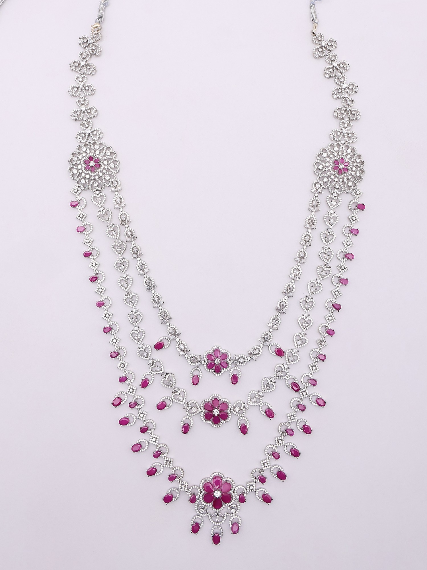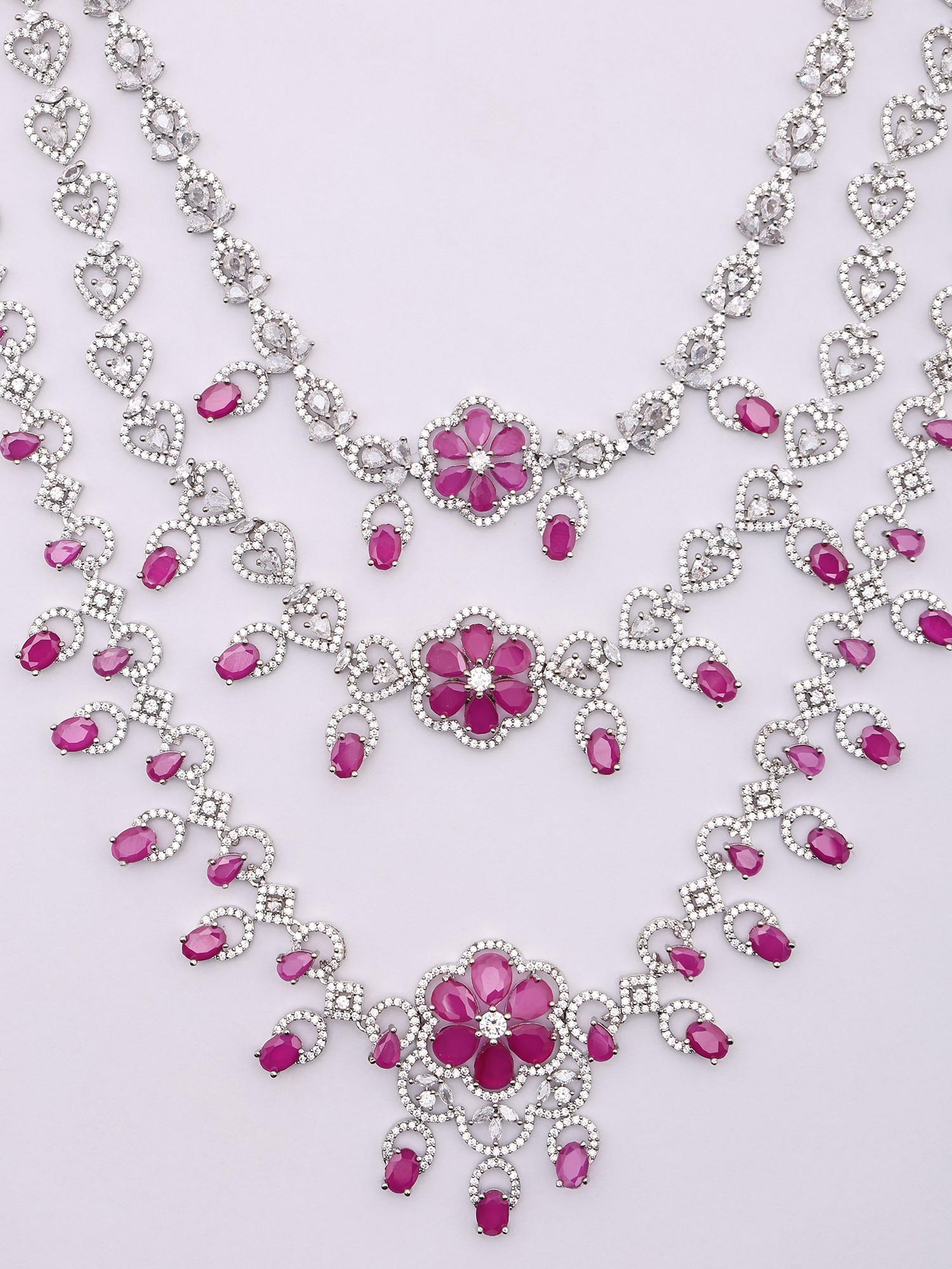 Floral Design Multi Strand American Diamond Bridal Necklace Set