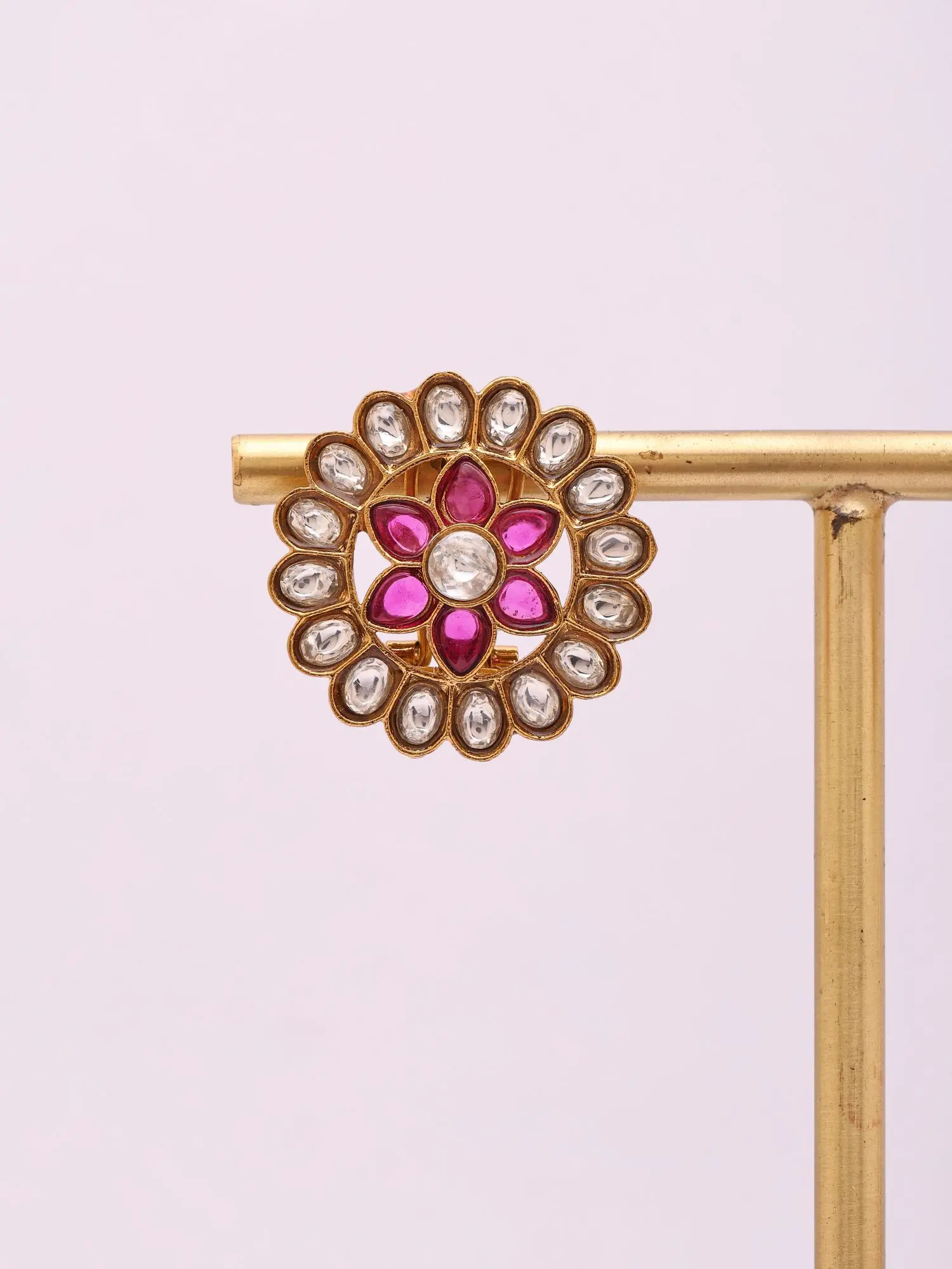 Flower Design Kundan Stone Studded Adjustable Ring