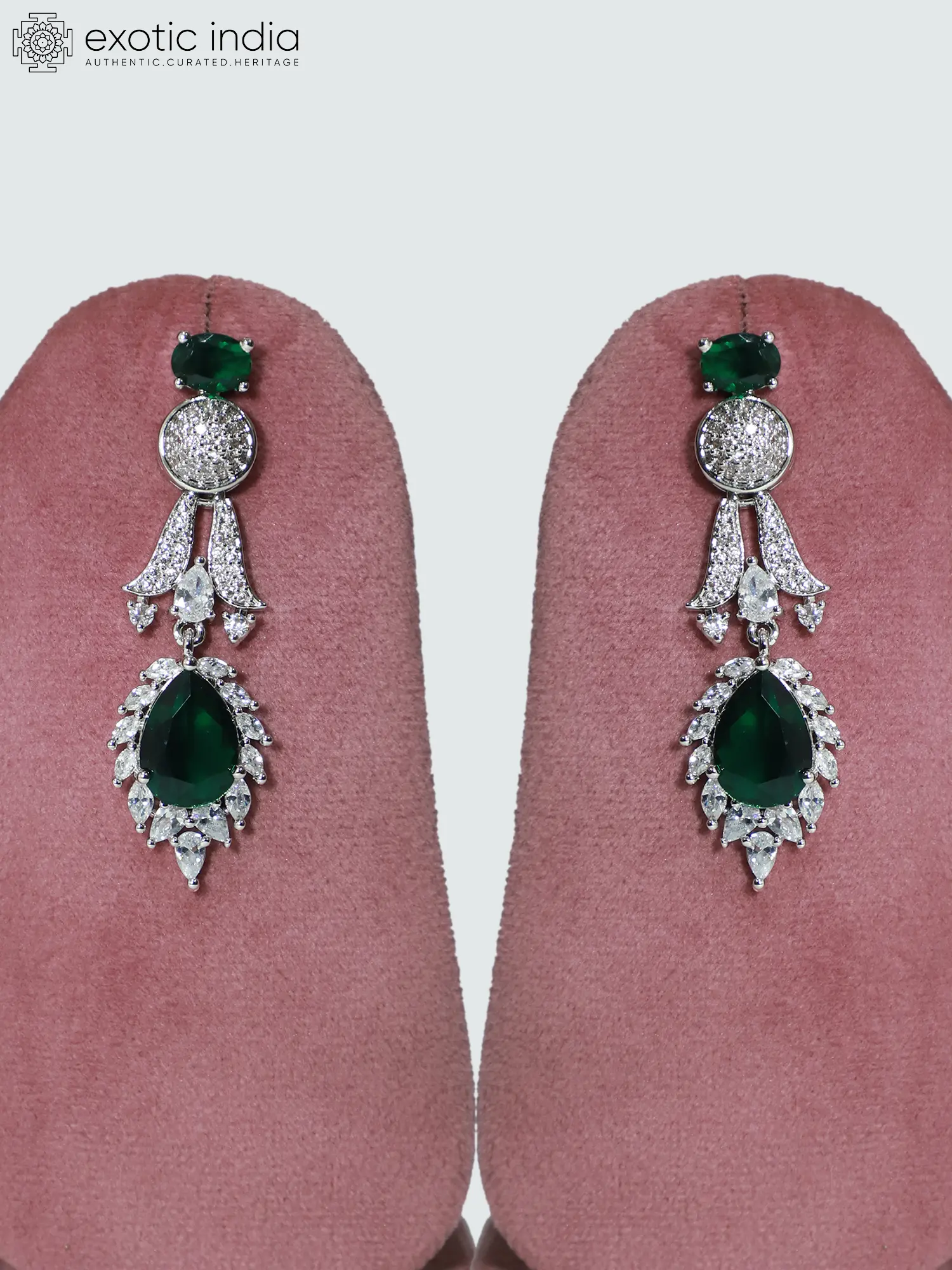 This exquisite set is crafted with meticulous attention to detail, utilizing high-quality materials to ensure lasting beauty and durability. The necklace and earrings boast a silver polish base, providing a lustrous foundation that enhances the brilliance of both the American diamonds and the ruby stones. This combination of materials ensures that the piece not only looks stunning but also feels luxurious and substantial against your skin. The secure clasps and carefully constructed settings guarantee that the stones remain securely in place, allowing you to wear this captivating set with complete confidence and comfort.