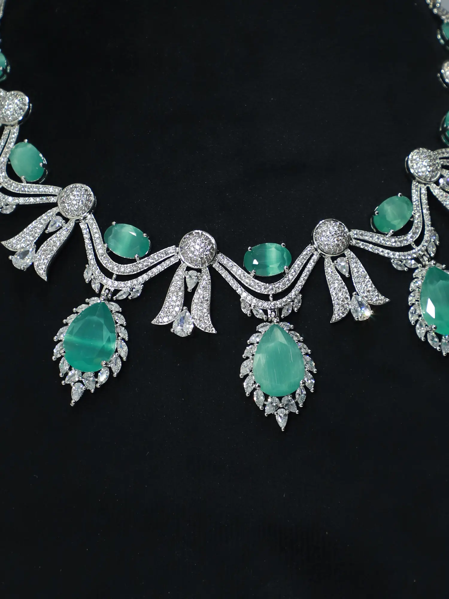Whether you're attending a lavish gala, a romantic dinner date, or a special family gathering, this necklace and earring set is the perfect accessory to complete your look. Its versatile design allows it to be paired with a variety of outfits, from classic evening gowns to more contemporary styles. Its timeless elegance ensures that it remains a cherished piece in your jewelry collection for years to come. Make a statement that speaks volumes about your refined taste and impeccable style – this necklace and earring set is the ultimate expression of sophisticated glamour.