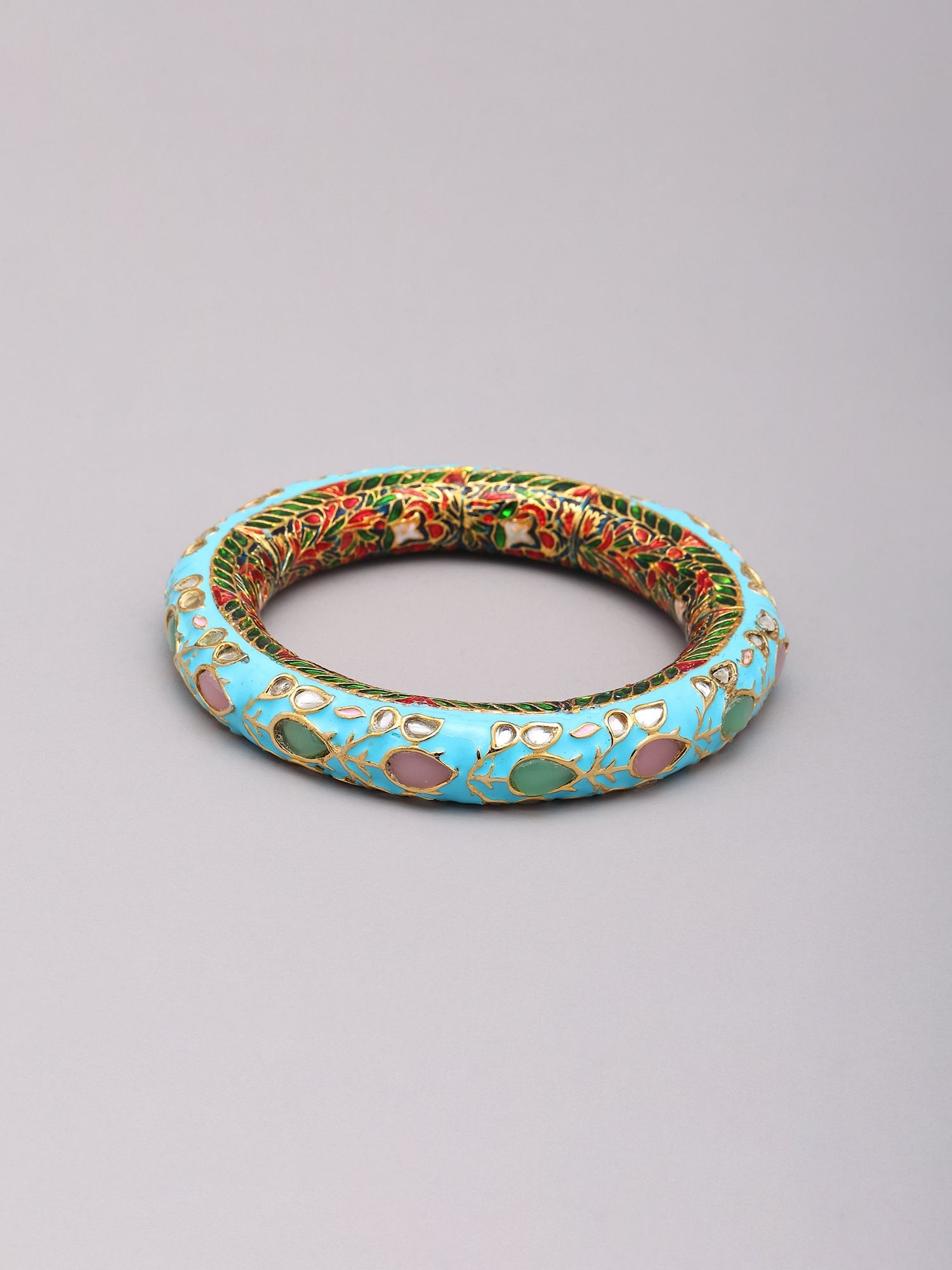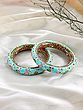 Floral Enamel Meenakari Kundan Bangles in Turquoise