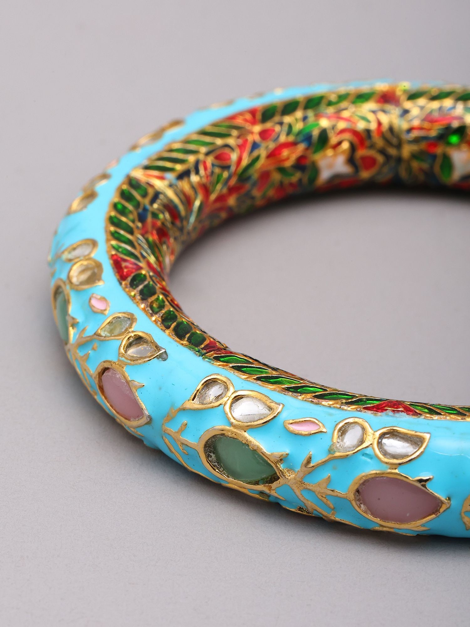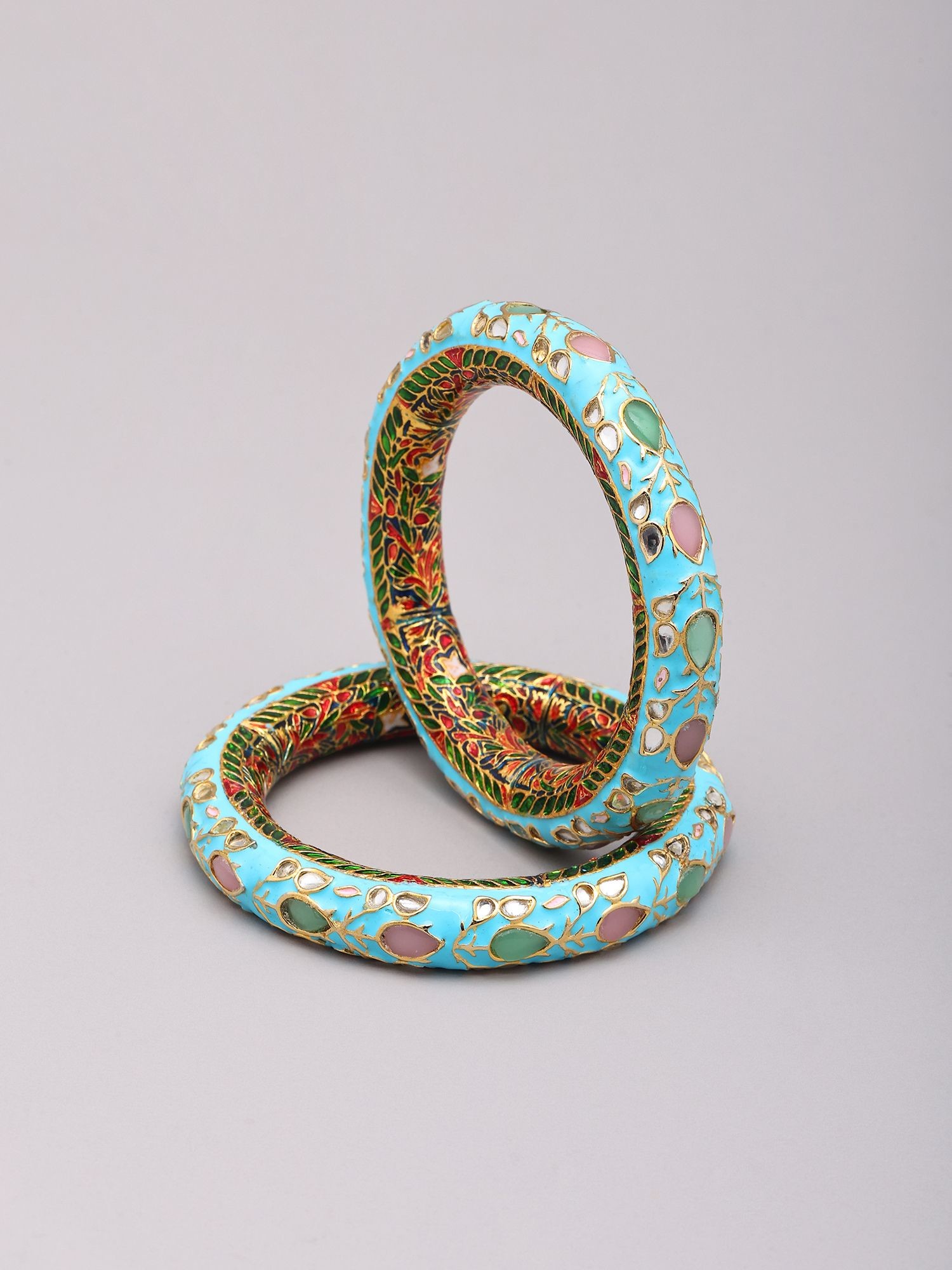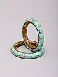 Exquisite turquoise Meenakari bangles adorned with vibrant floral enamel work.