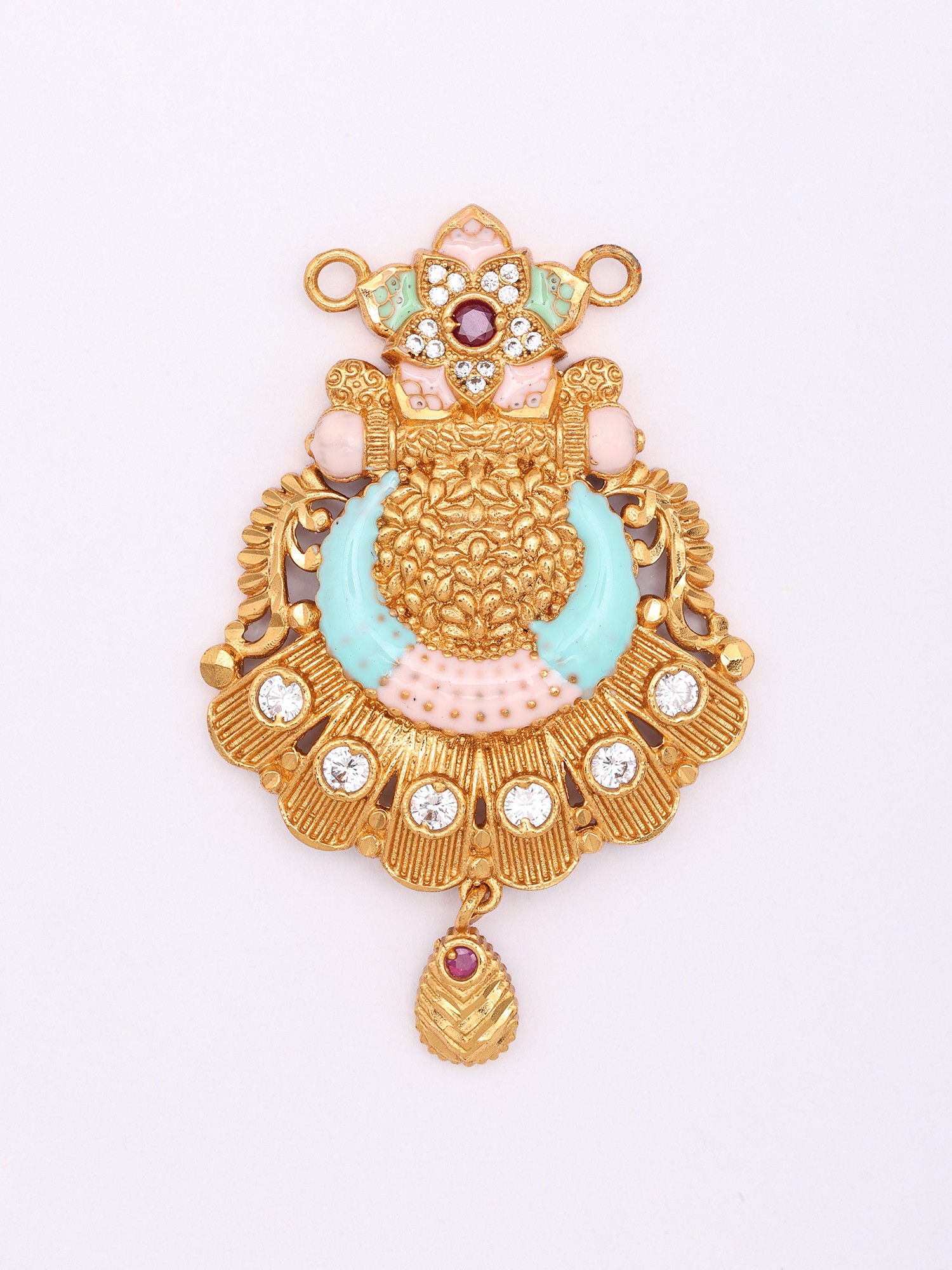 Stone and Kundan Studded Lord Krishna Pendant Set with Earrings