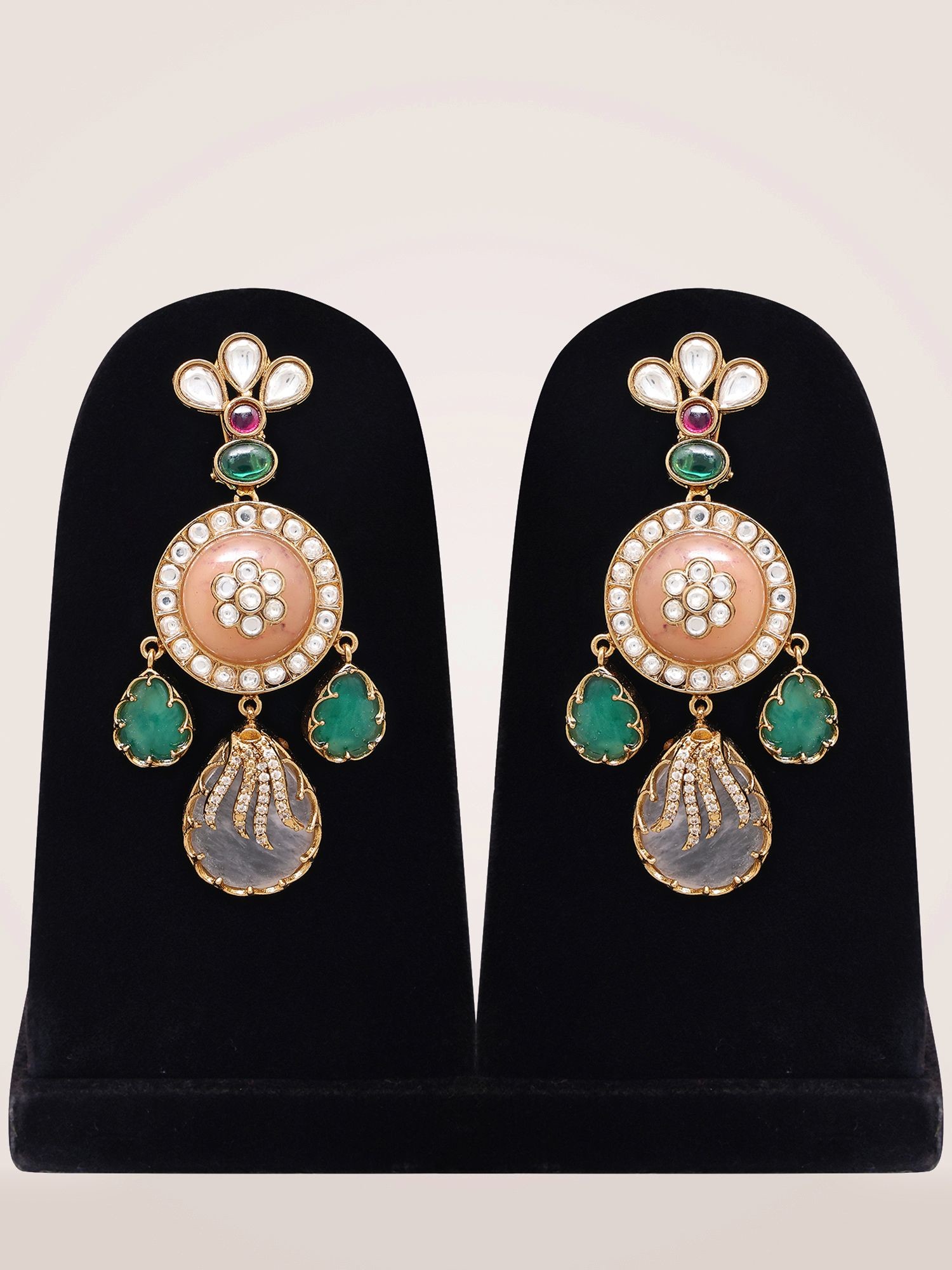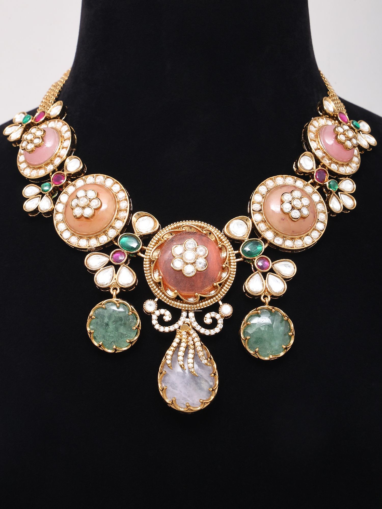 Kundan Necklace Set with Emeralds, Polki Detailing & Teardrop Pendant