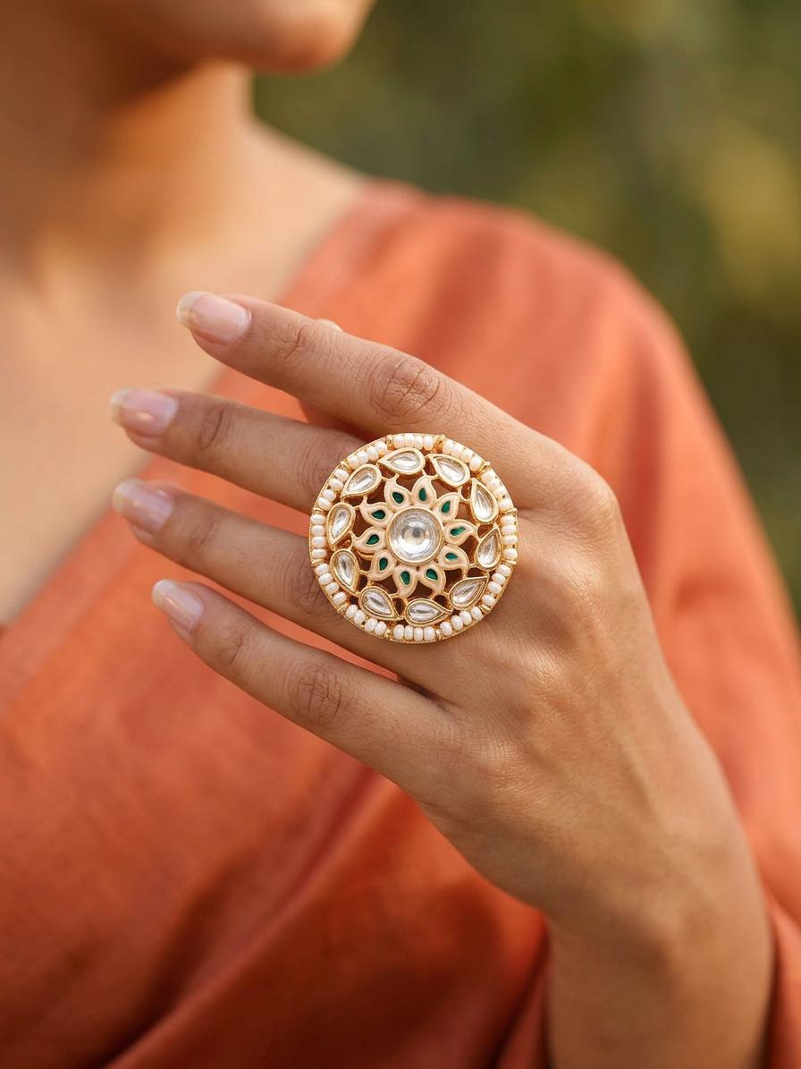 Kundan Stone Studded Adjustable Cocktail Ring