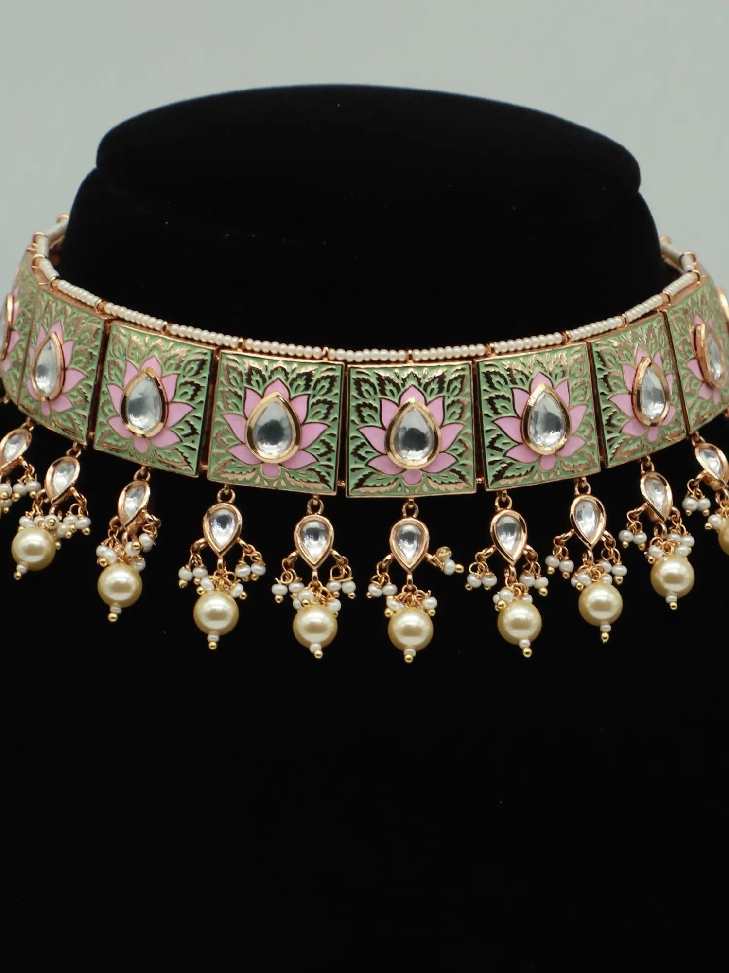 Studded Choker Set With Earrings And Drops Beads