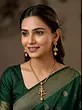 Radha Krishna Long Temple Necklace and Earring Set with Green Beads