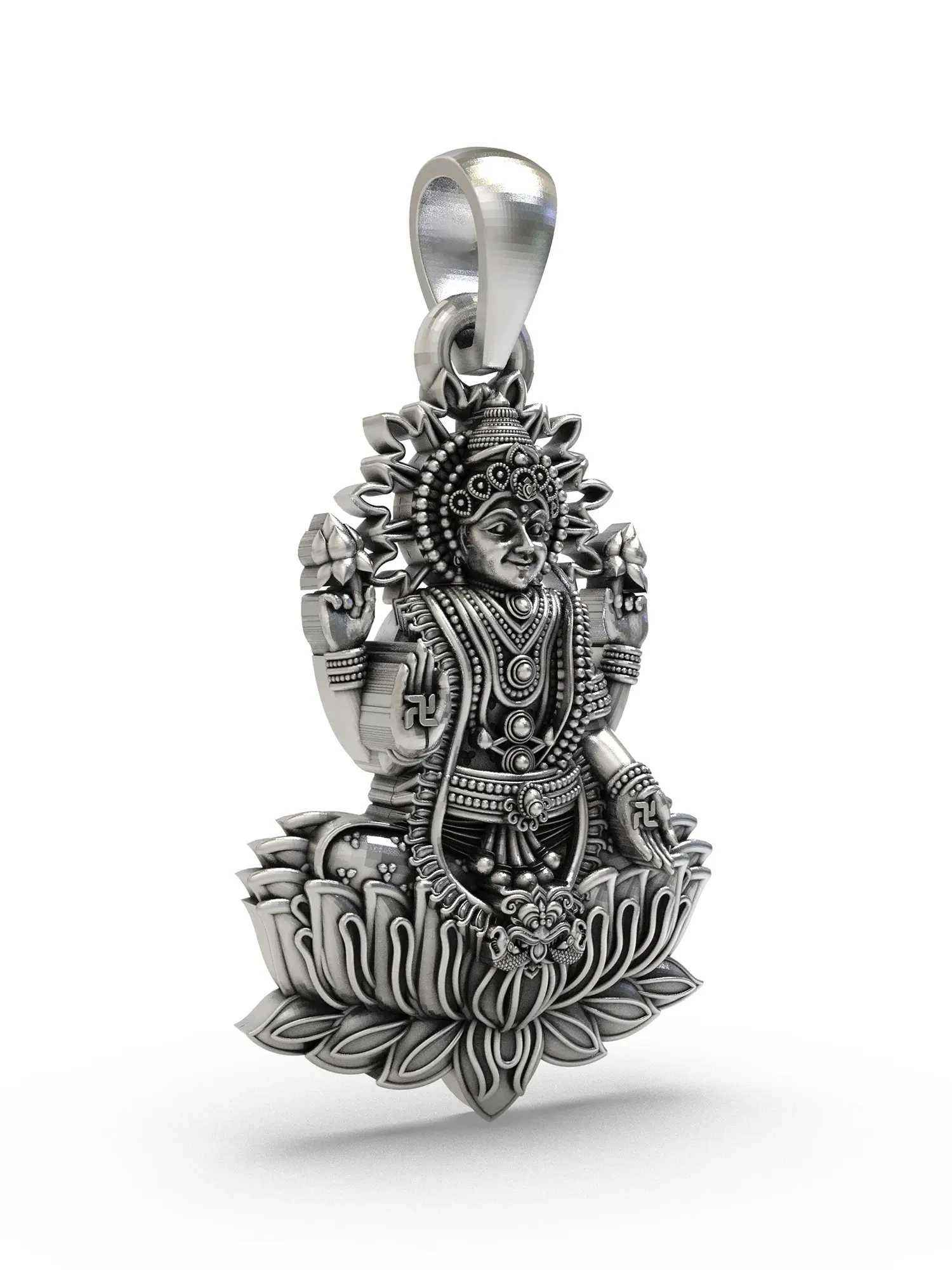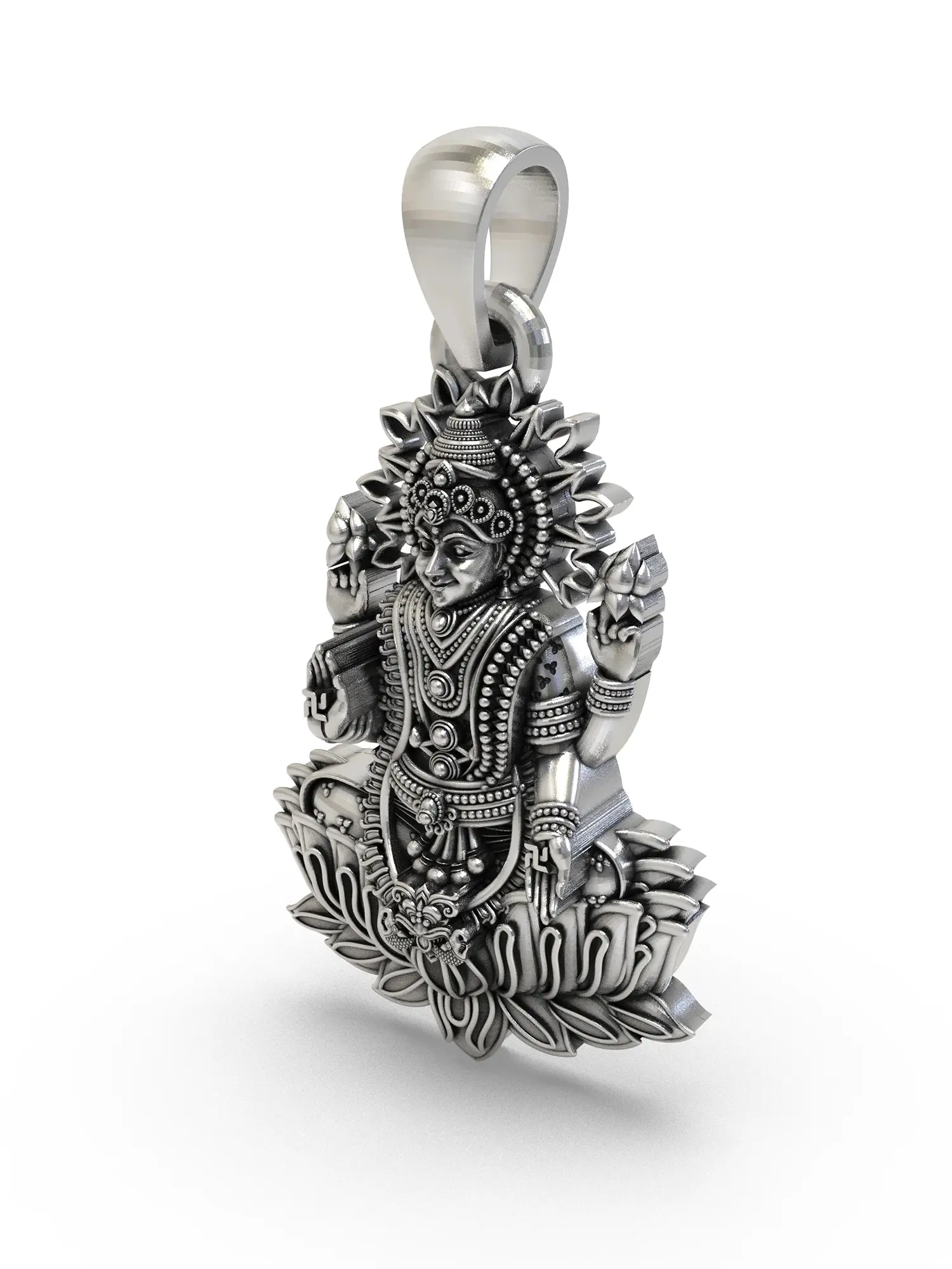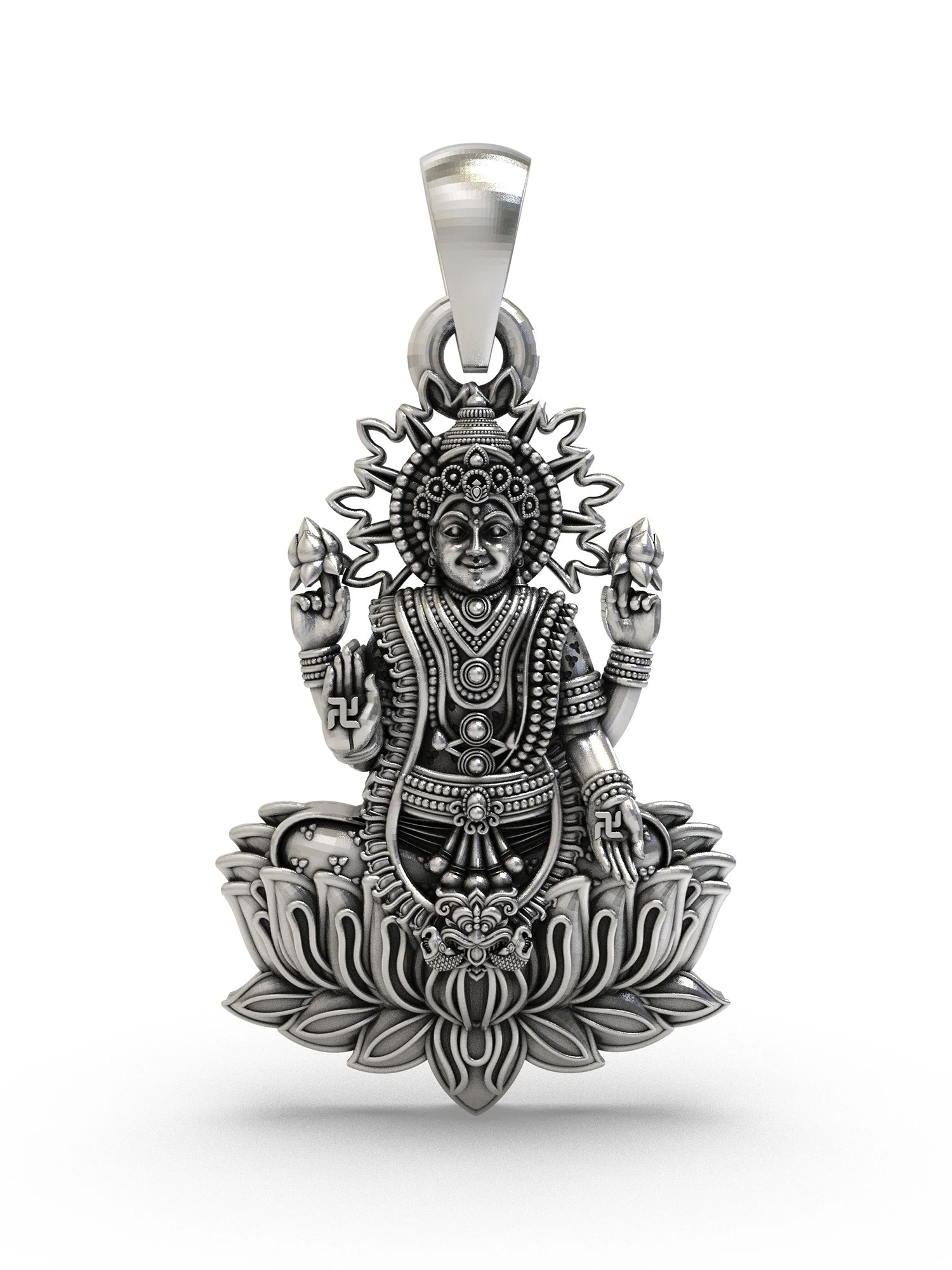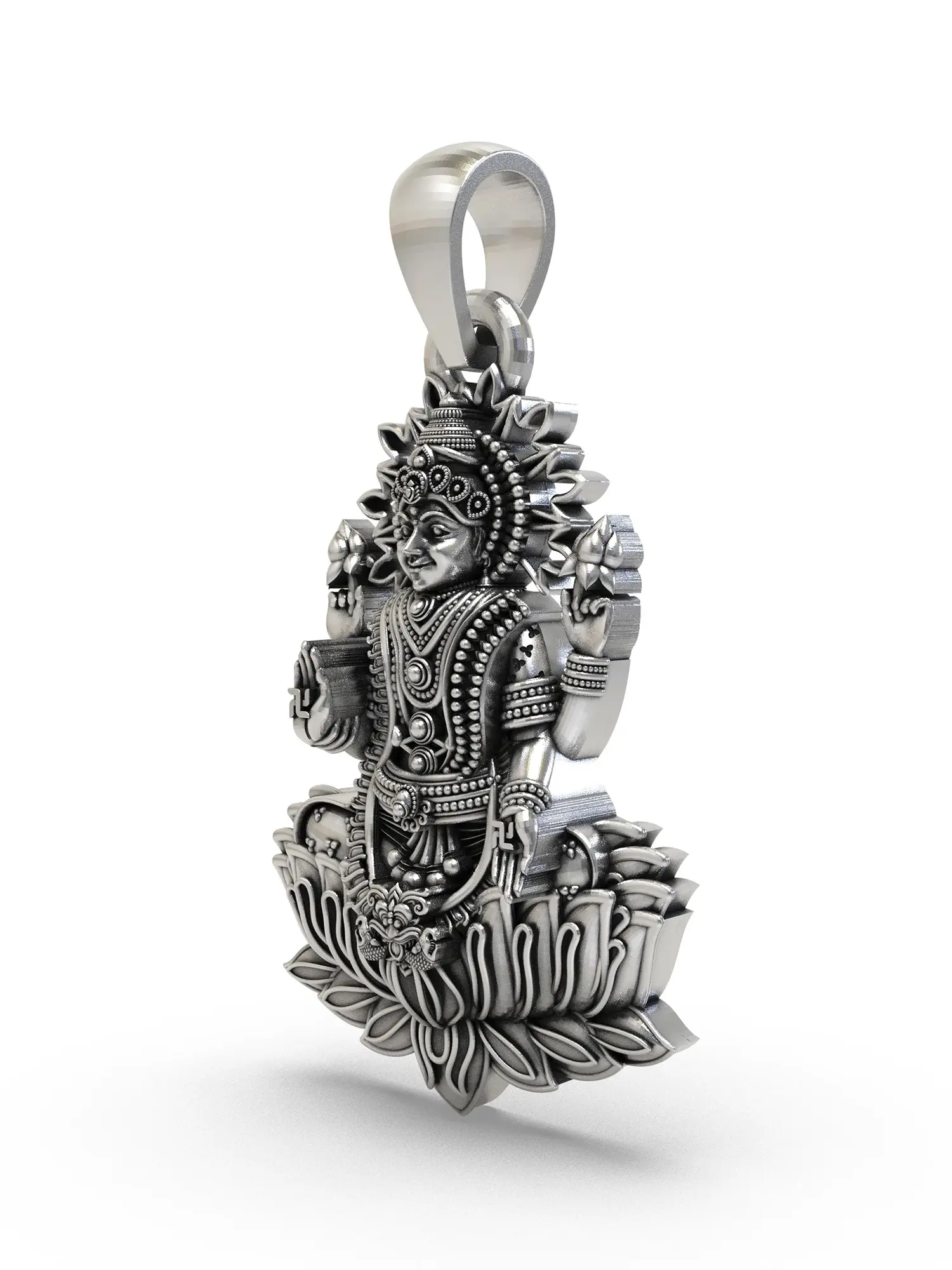 Temple-Inspired Goddess Lakshmi Sterling Silver Pendant