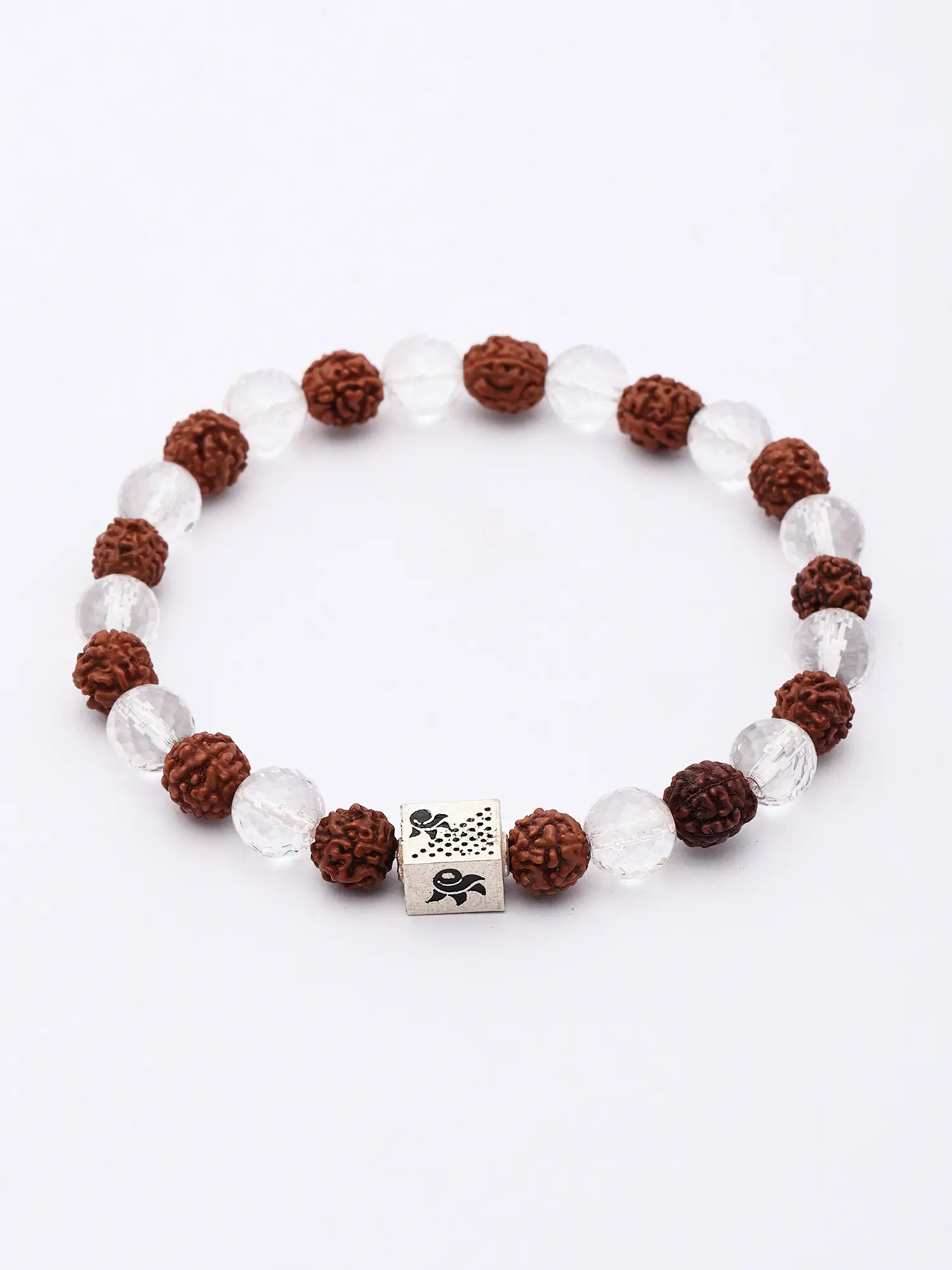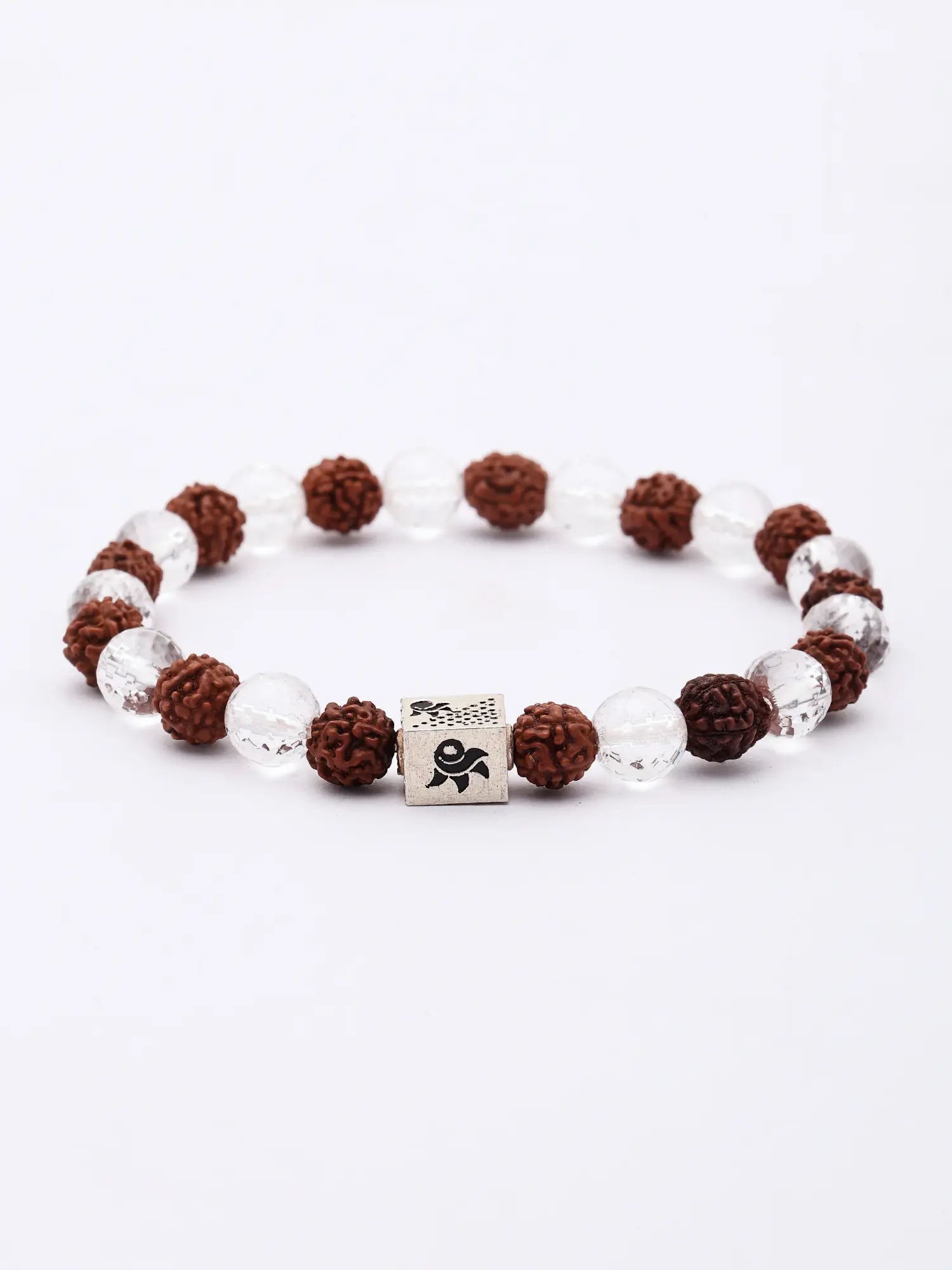 This bracelet is more than just an accessory; it's a wearable piece of art infused with intention and natural beauty. Its stretch design ensures a comfortable and secure fit for most wrists, making it an ideal choice for everyday wear or for special occasions. Whether you are drawn to the spiritual resonance of Rudraksha, the clarifying energy of quartz, or simply the elegant aesthetic of this unique combination, this bracelet offers a beautiful way to express your personal style and connect with a sense of grounded well-being. It makes for a thoughtful and cherished gift, suitable for anyone who appreciates the fusion of natural elements and artisanal design.