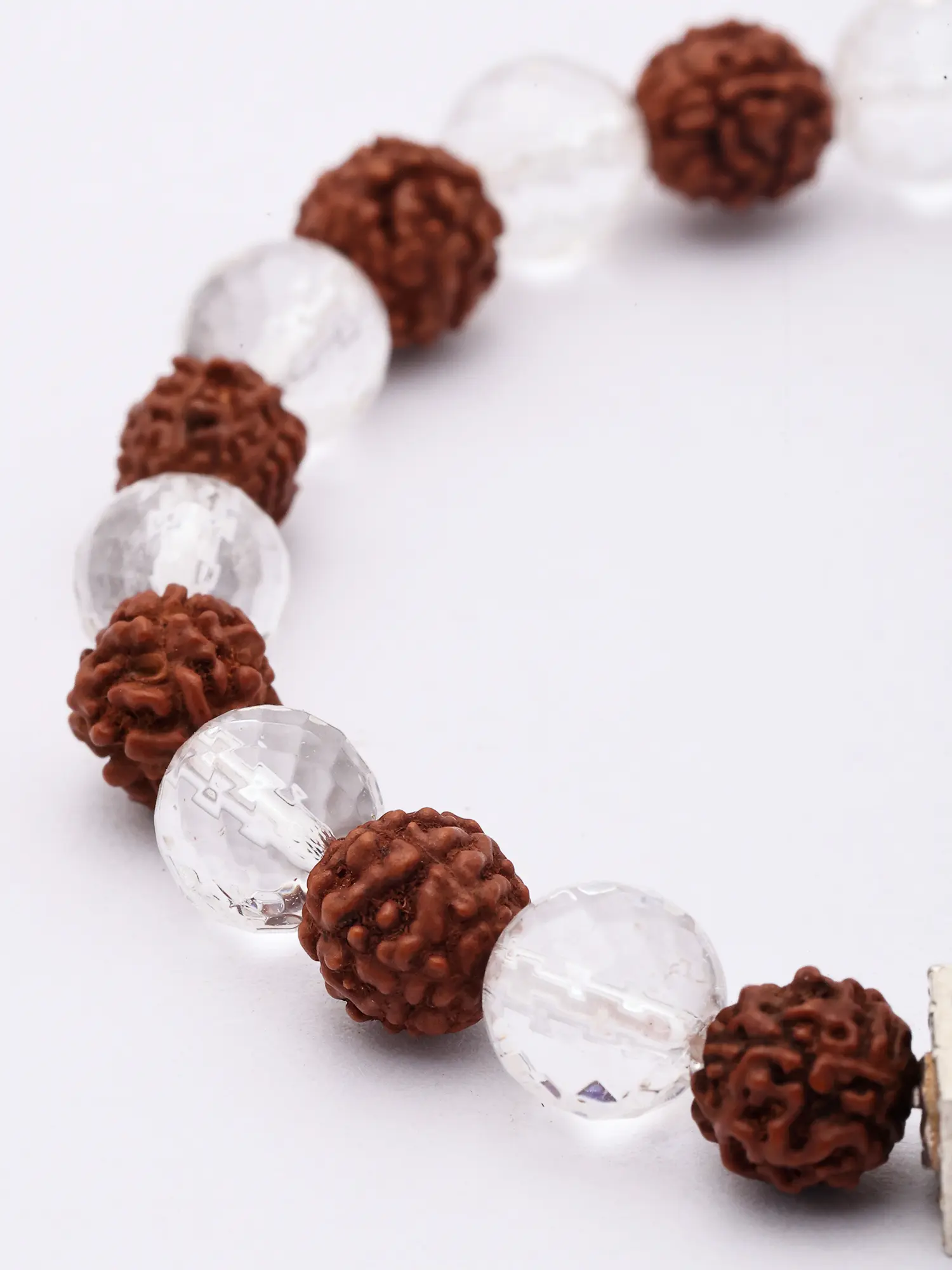 Genuine Certified Rudraksha and Clear Quartz Stretch Bracelet
