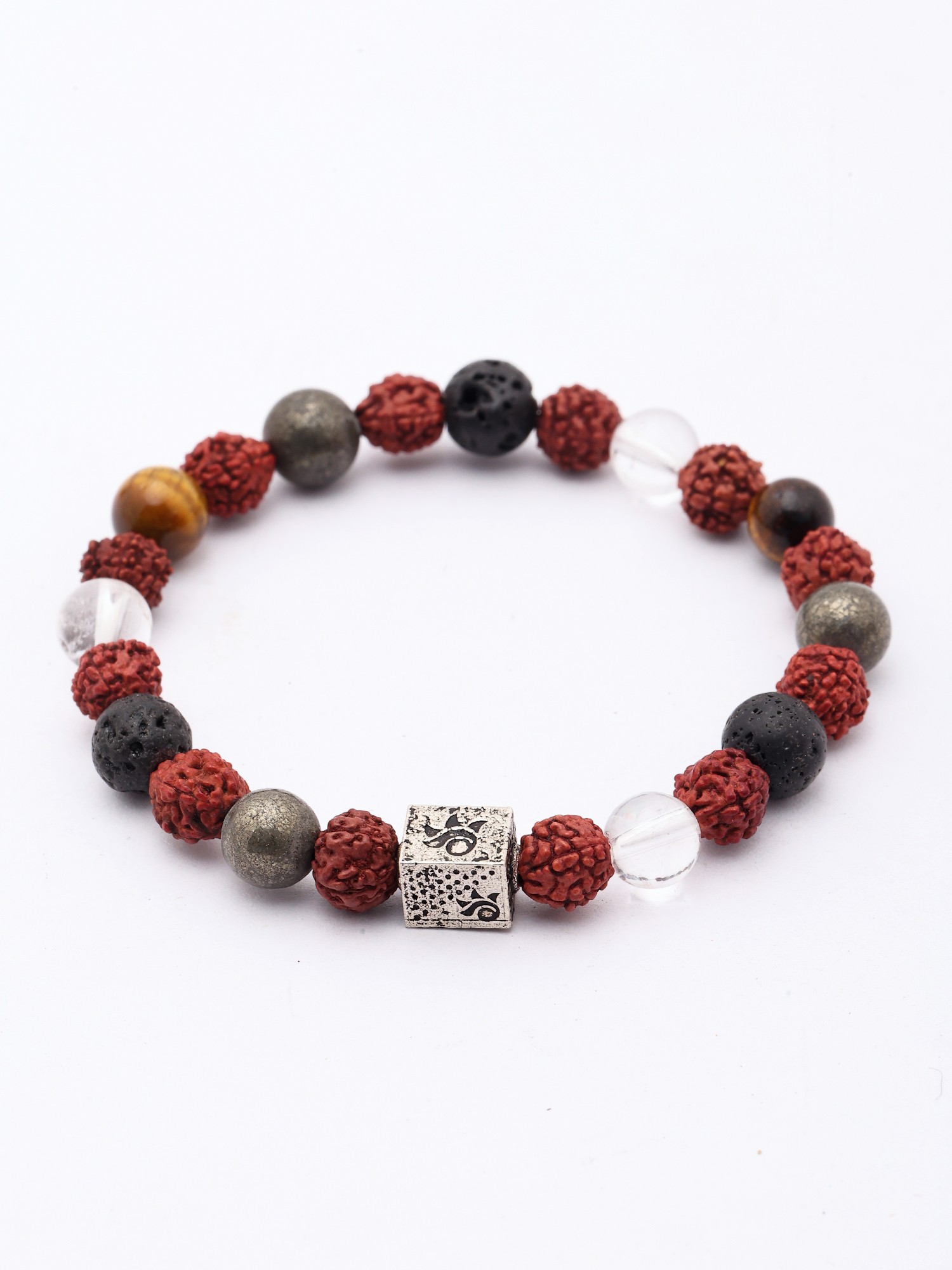 Genuine Certified Rudraksha and Clear Quartz Stretch Bracelet