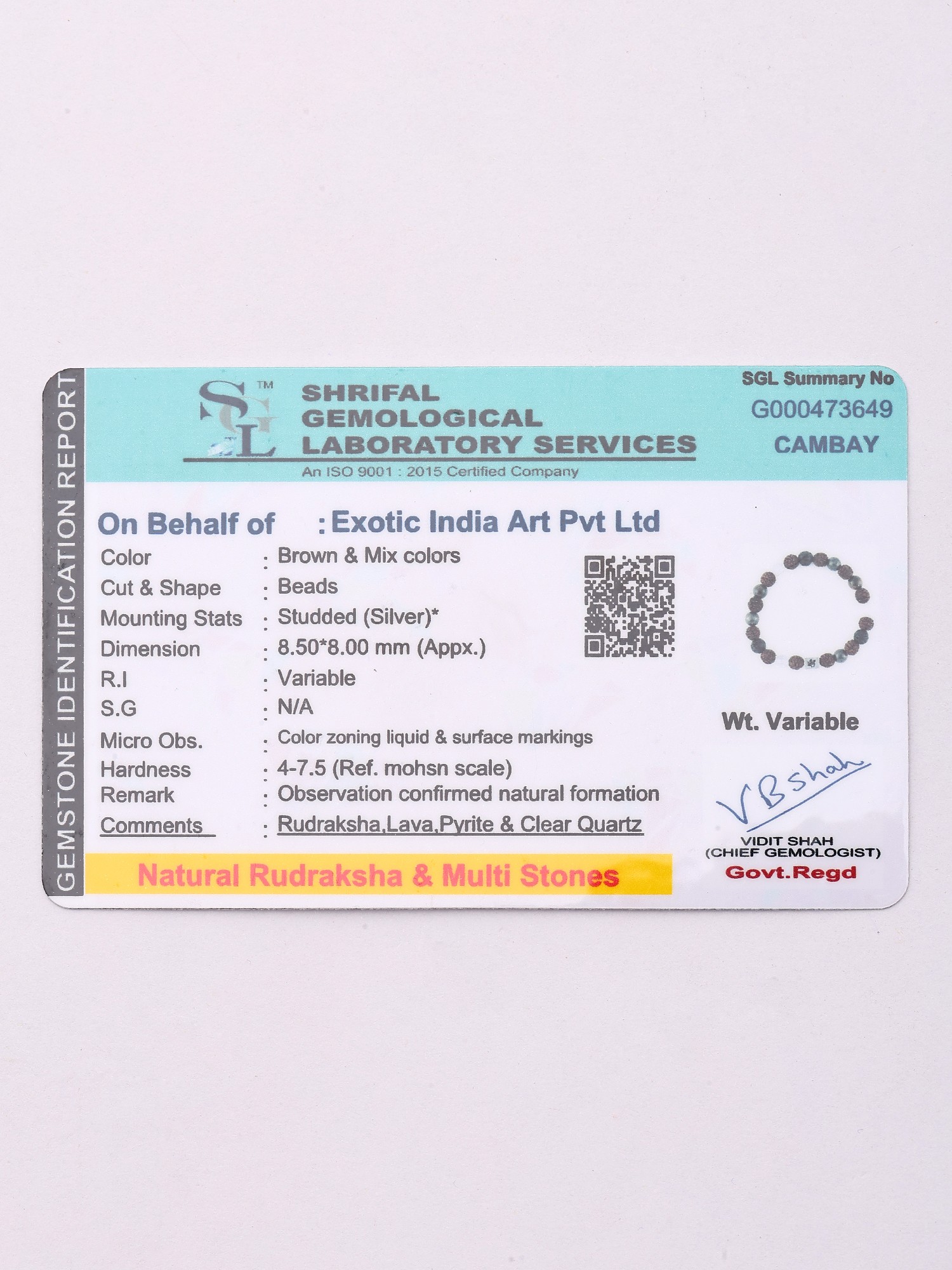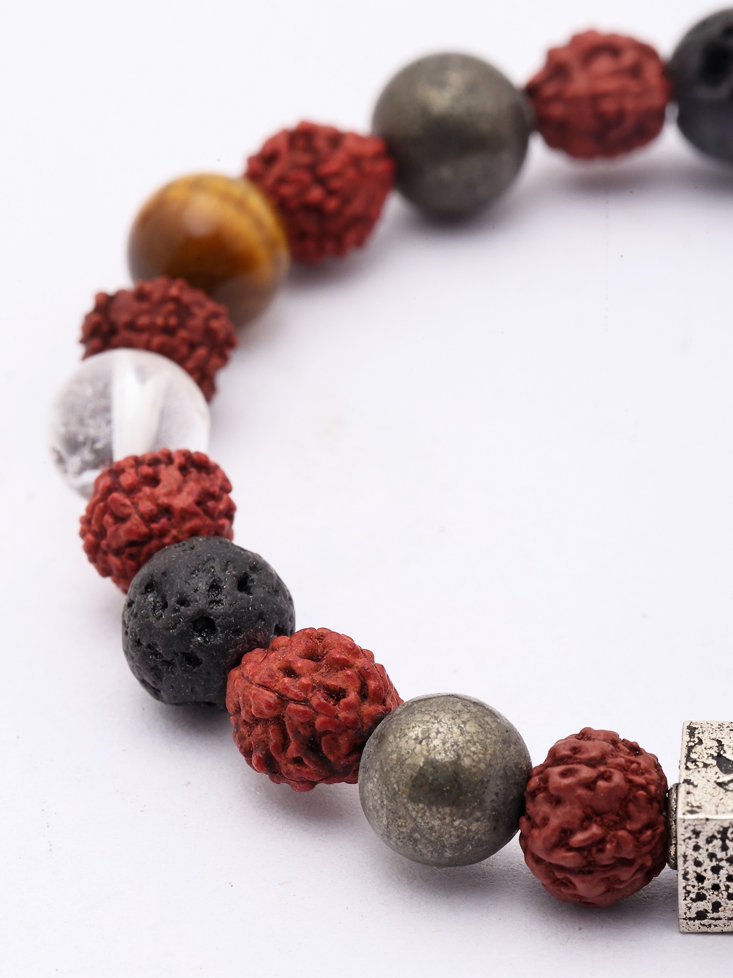 Genuine Certified Rudraksha and Multi Stone Stretch Bracelet