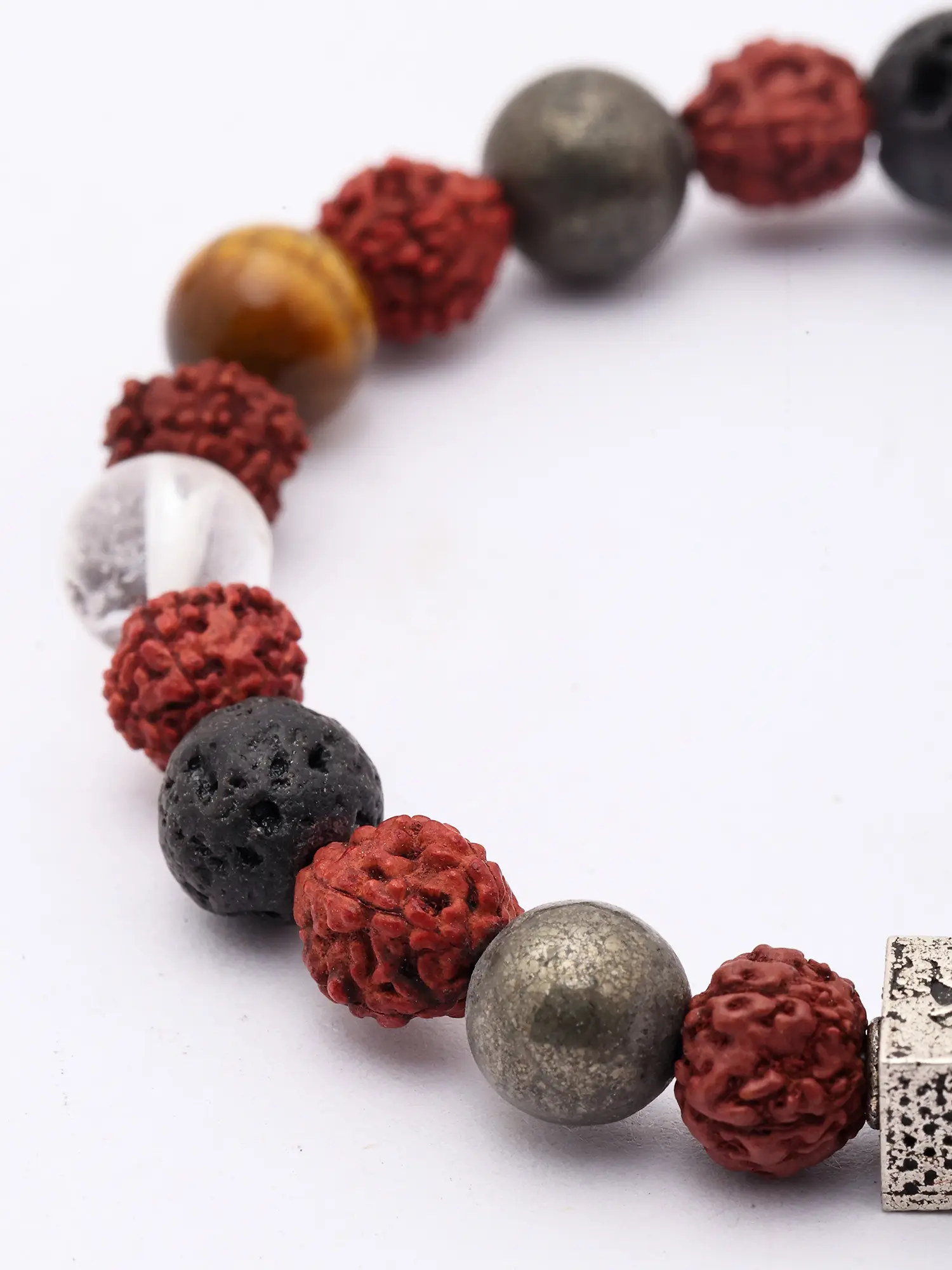 Discover a unique piece that blends the ancient spiritual significance of Rudraksha with the captivating beauty of diverse natural stones. This stretch bracelet is thoughtfully designed to be more than just an accessory; it's a connection to earth's energy and a statement of personal style. Each element has been carefully selected to create a harmonious and visually striking piece that you'll love to wear.