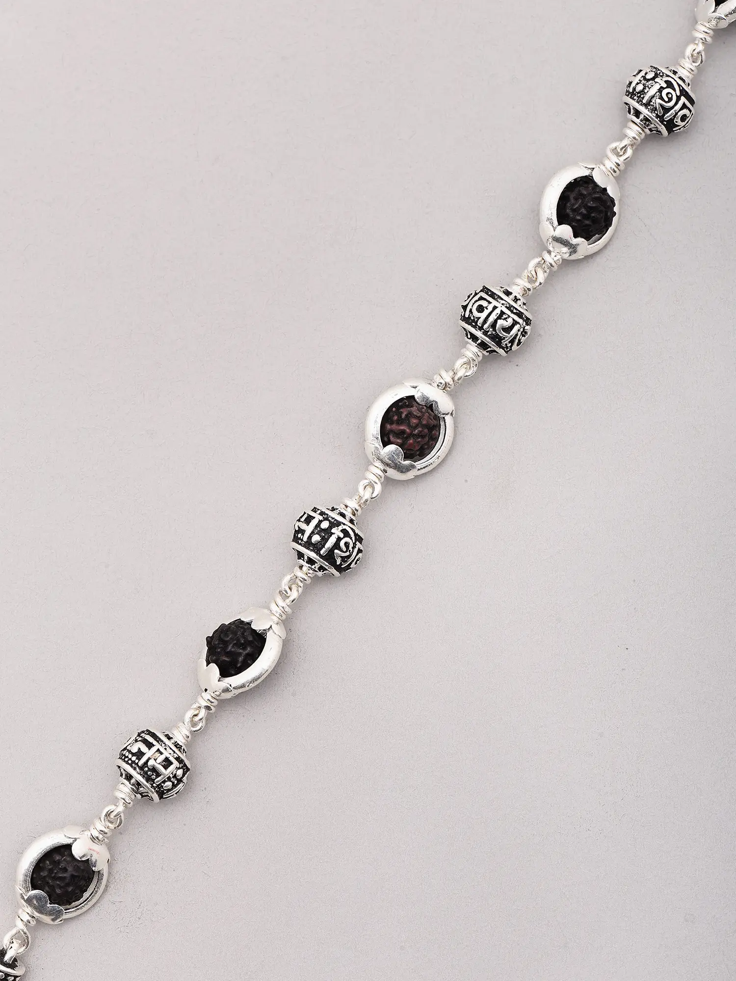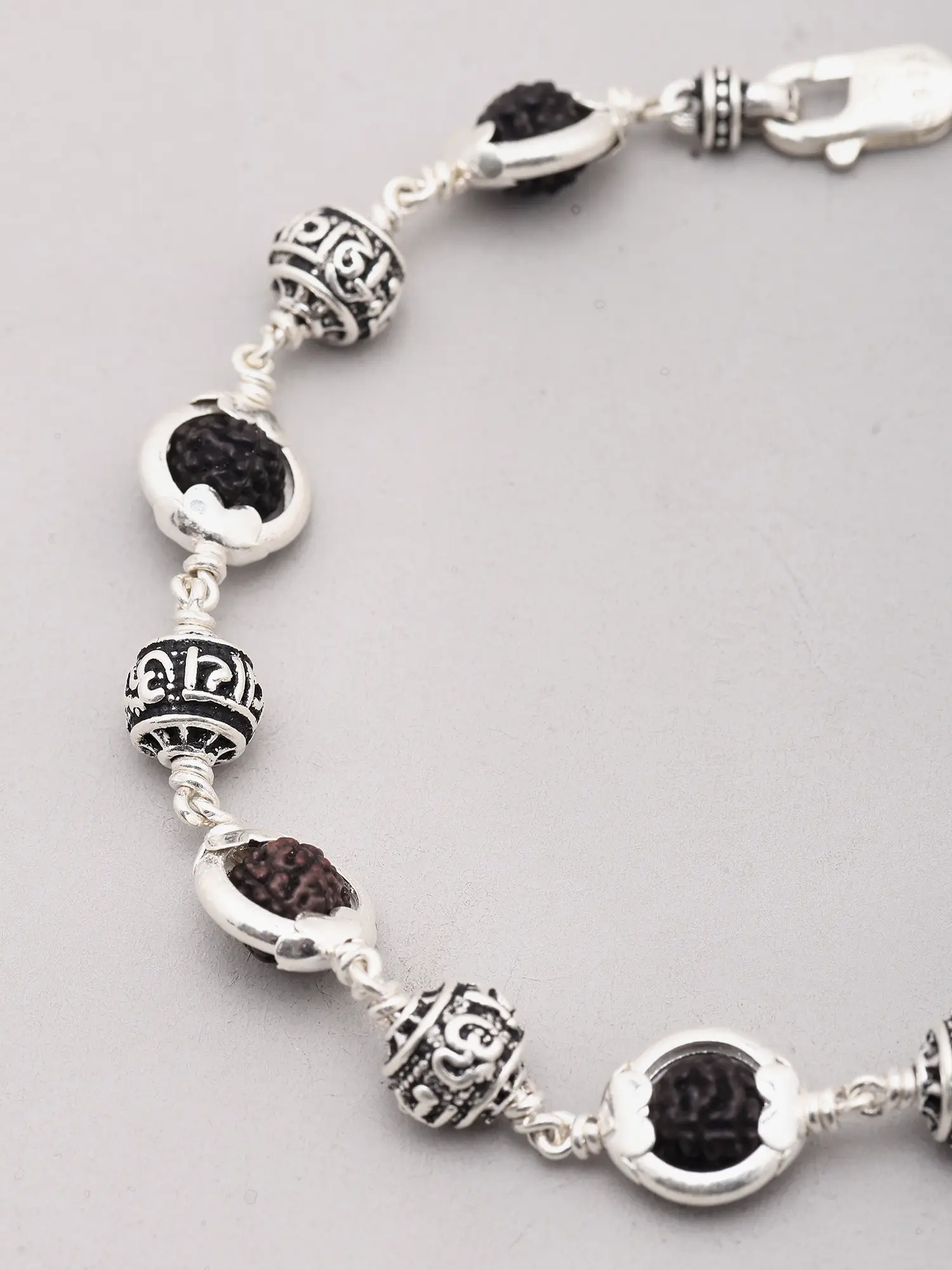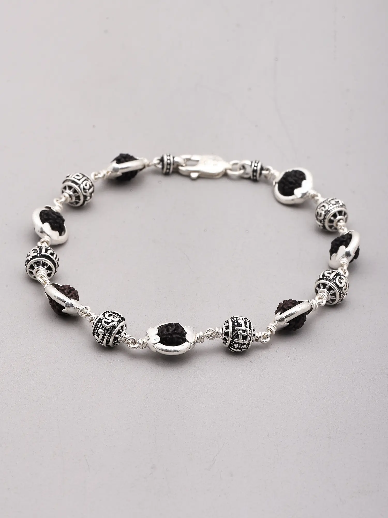 Sterling Silver Bracelet with Genuine Certified Rudraksha & Textured Silver Beads