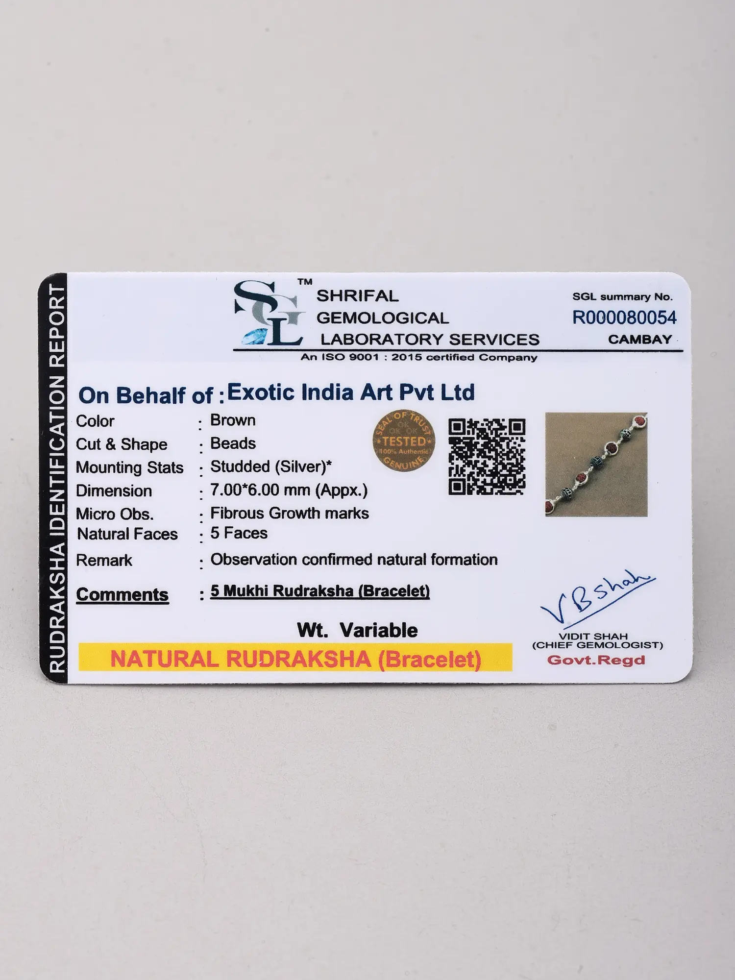 Genuine Certified Rudraksha and Sterling Silver Lattice Bead Bracelet