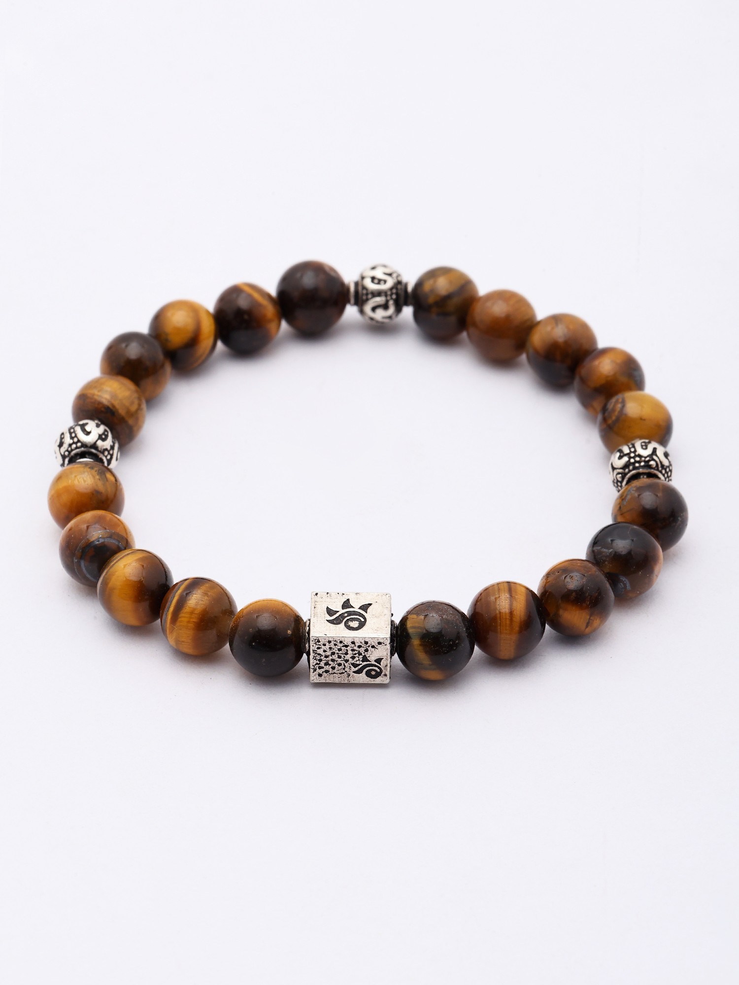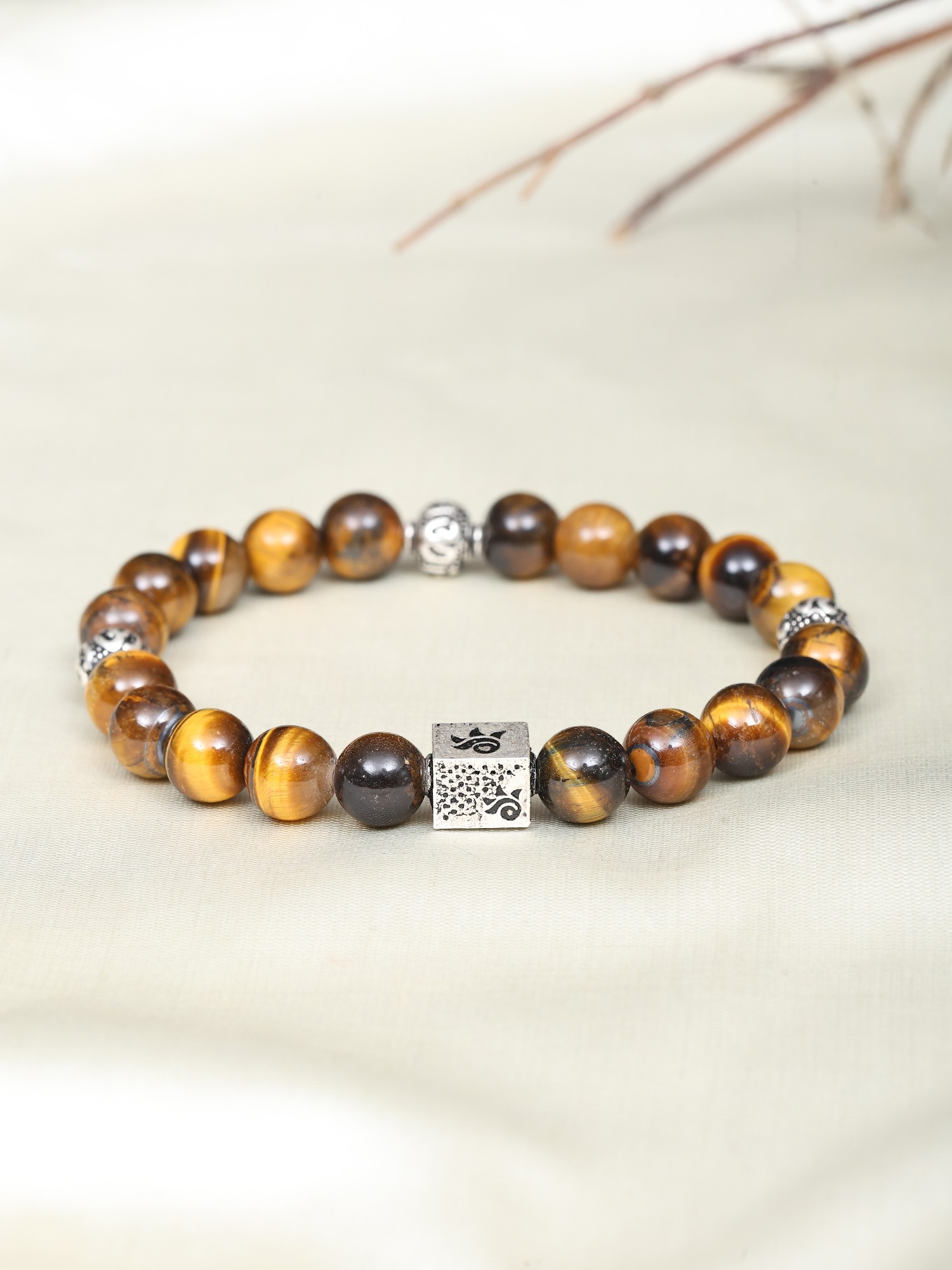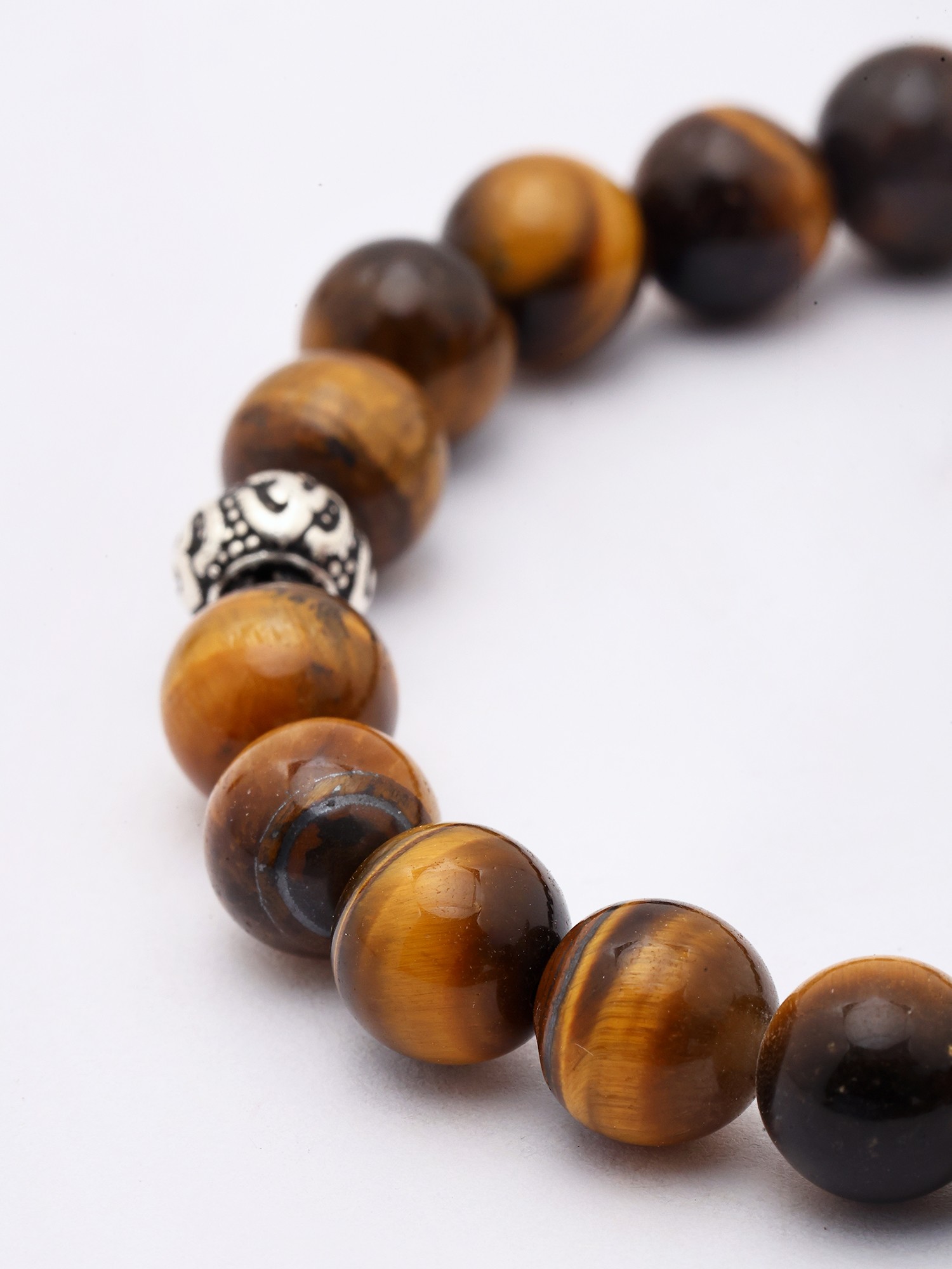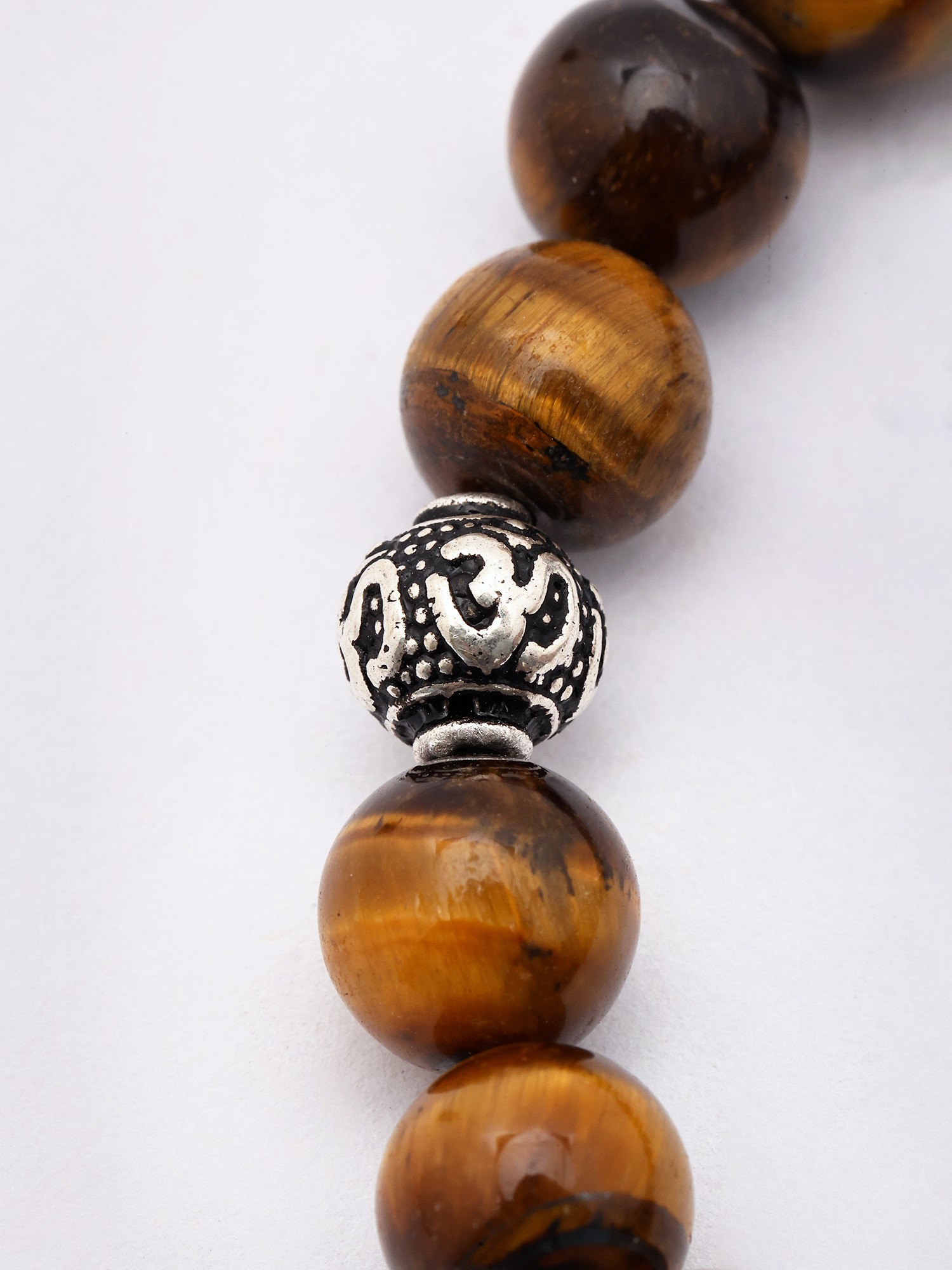 Genuine Certified Rudraksha and Tiger Eye Stretch Bracelet