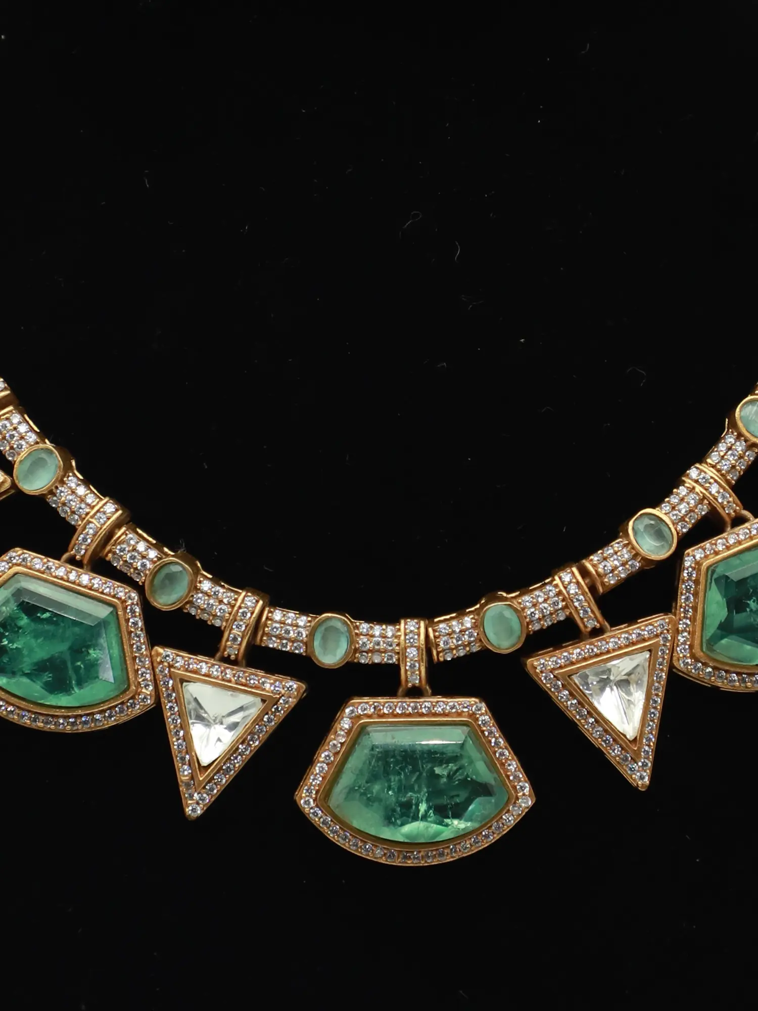Hasli Style Moissanite Kundan With Matt Polish Necklace With Matching Earrings