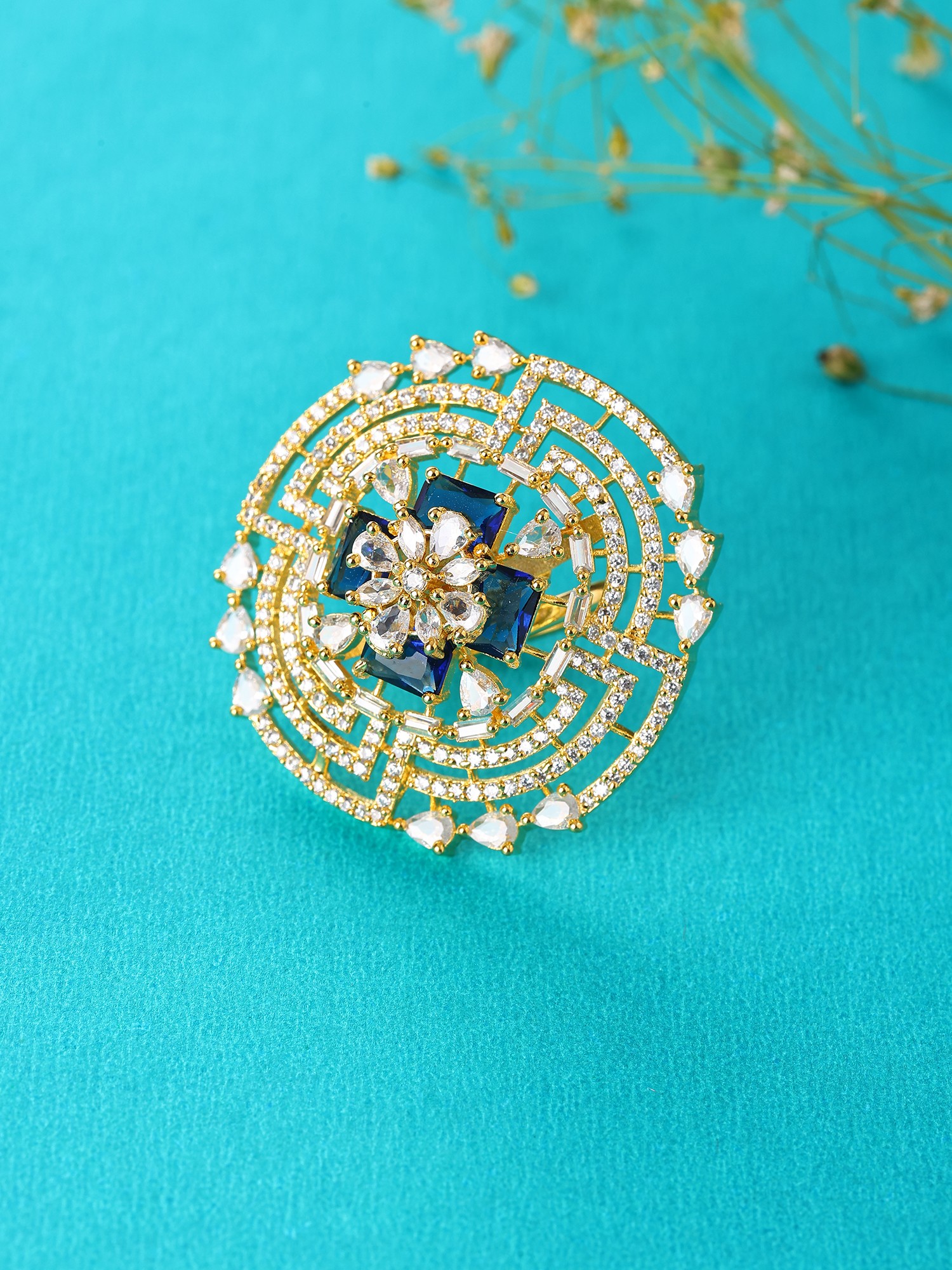 Floral Halo Design Adjustable American Diamond Statement Ring