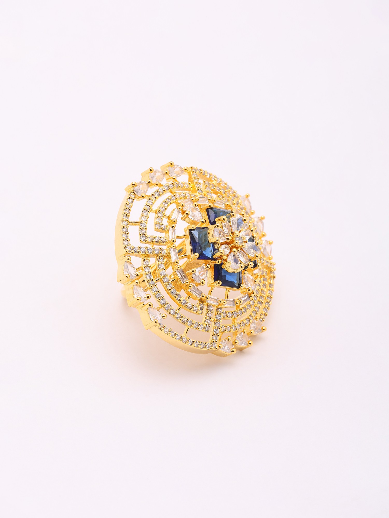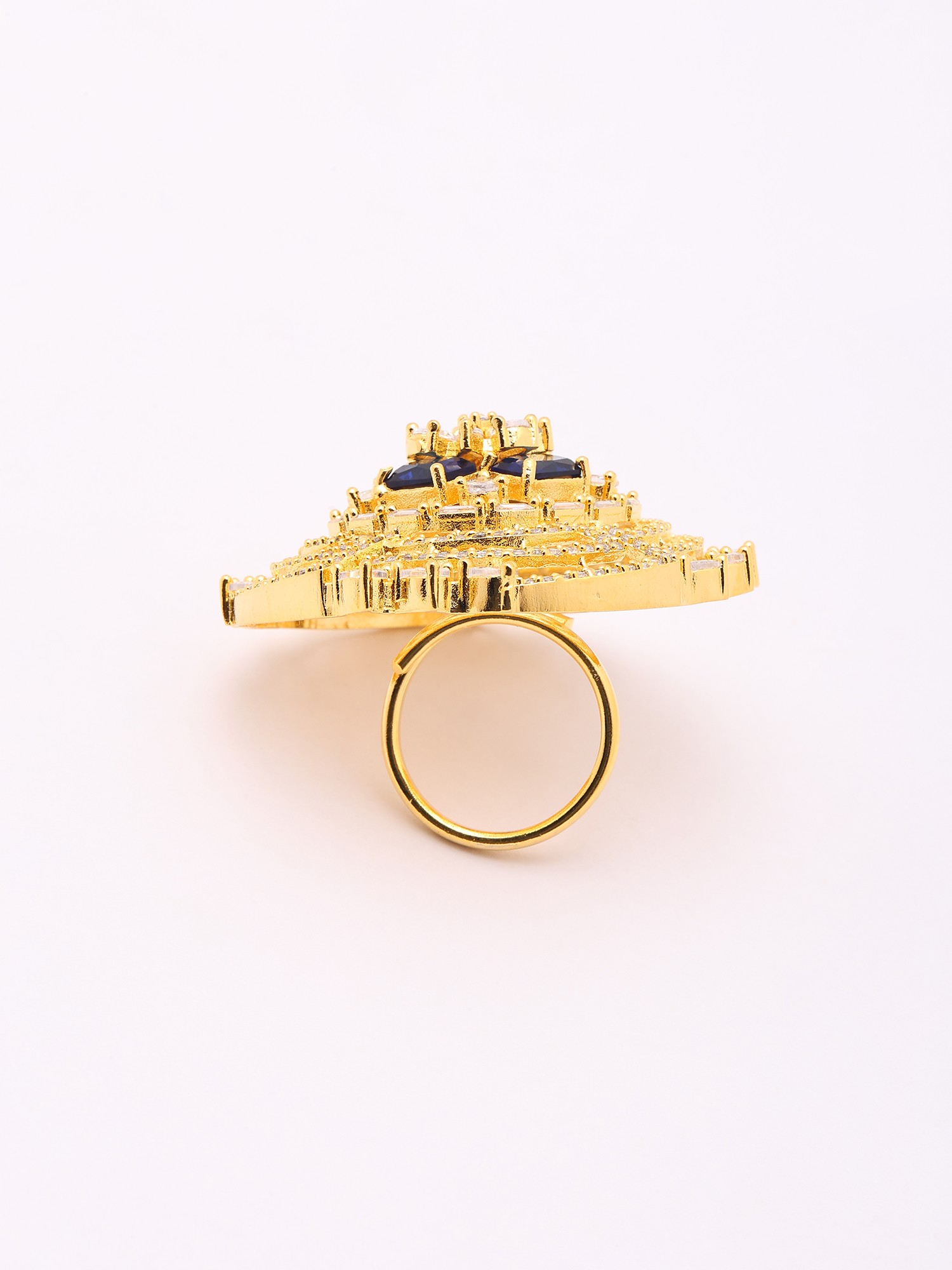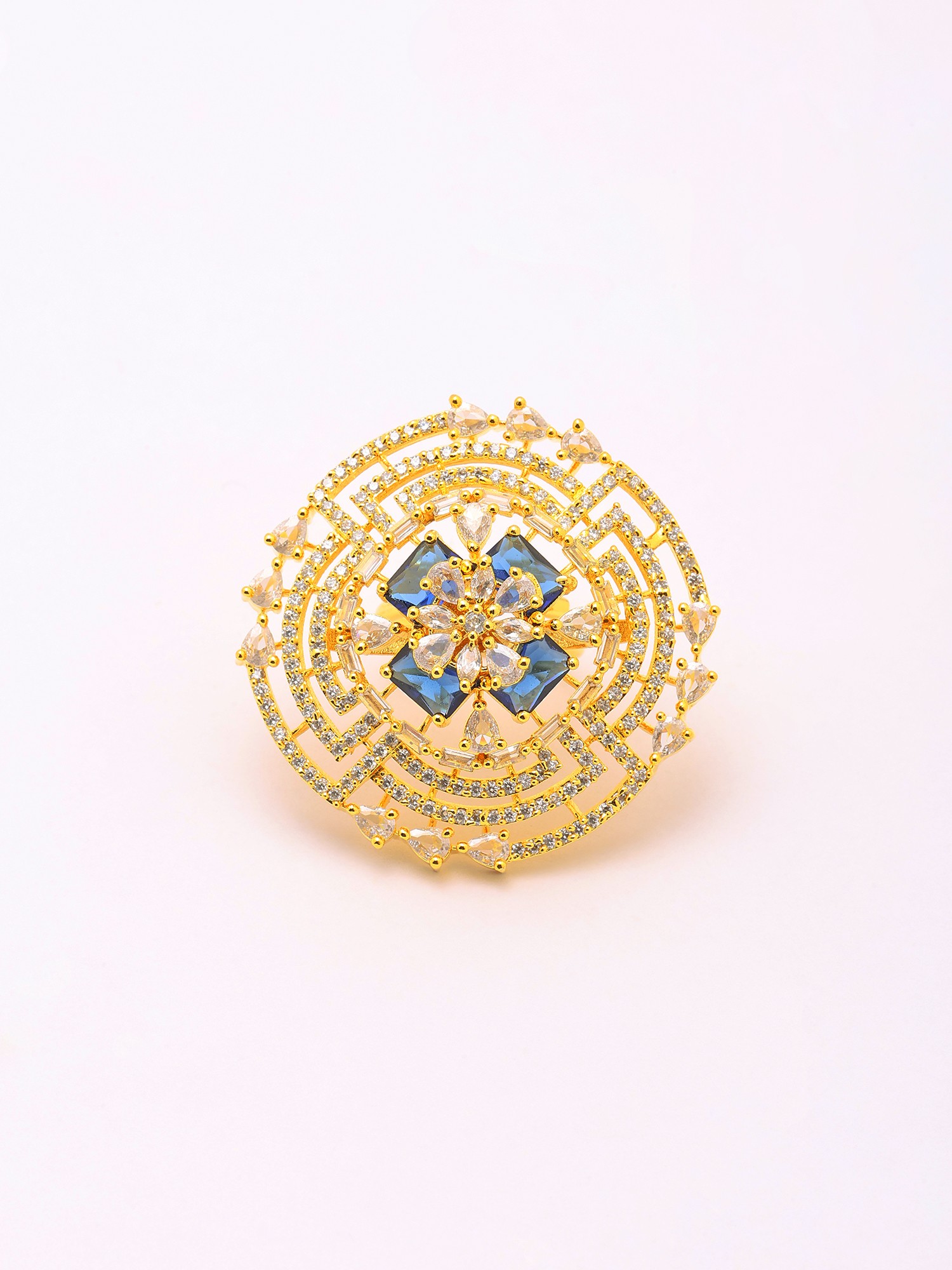Geometric Design Stone Studded Adjustable American-Diamond Ring