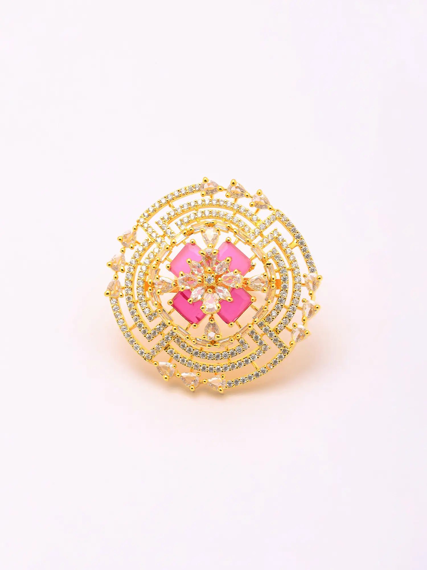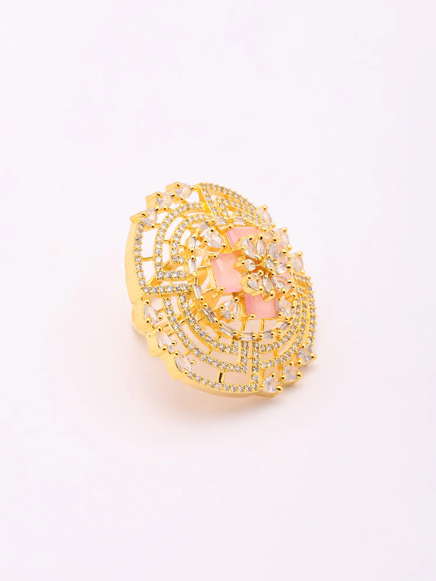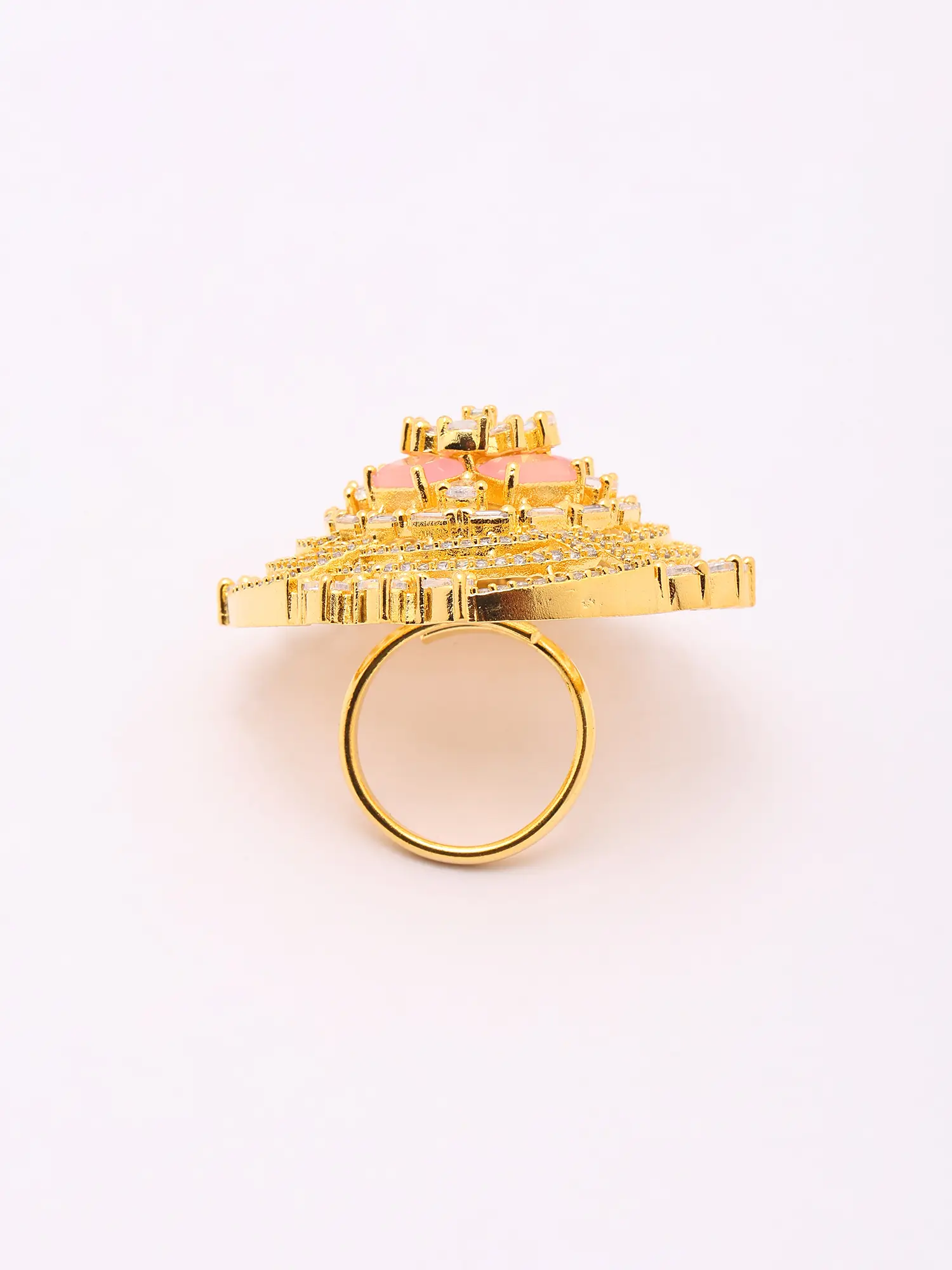 Pink Stone Studded Adjustable American-Diamond Statement Ring