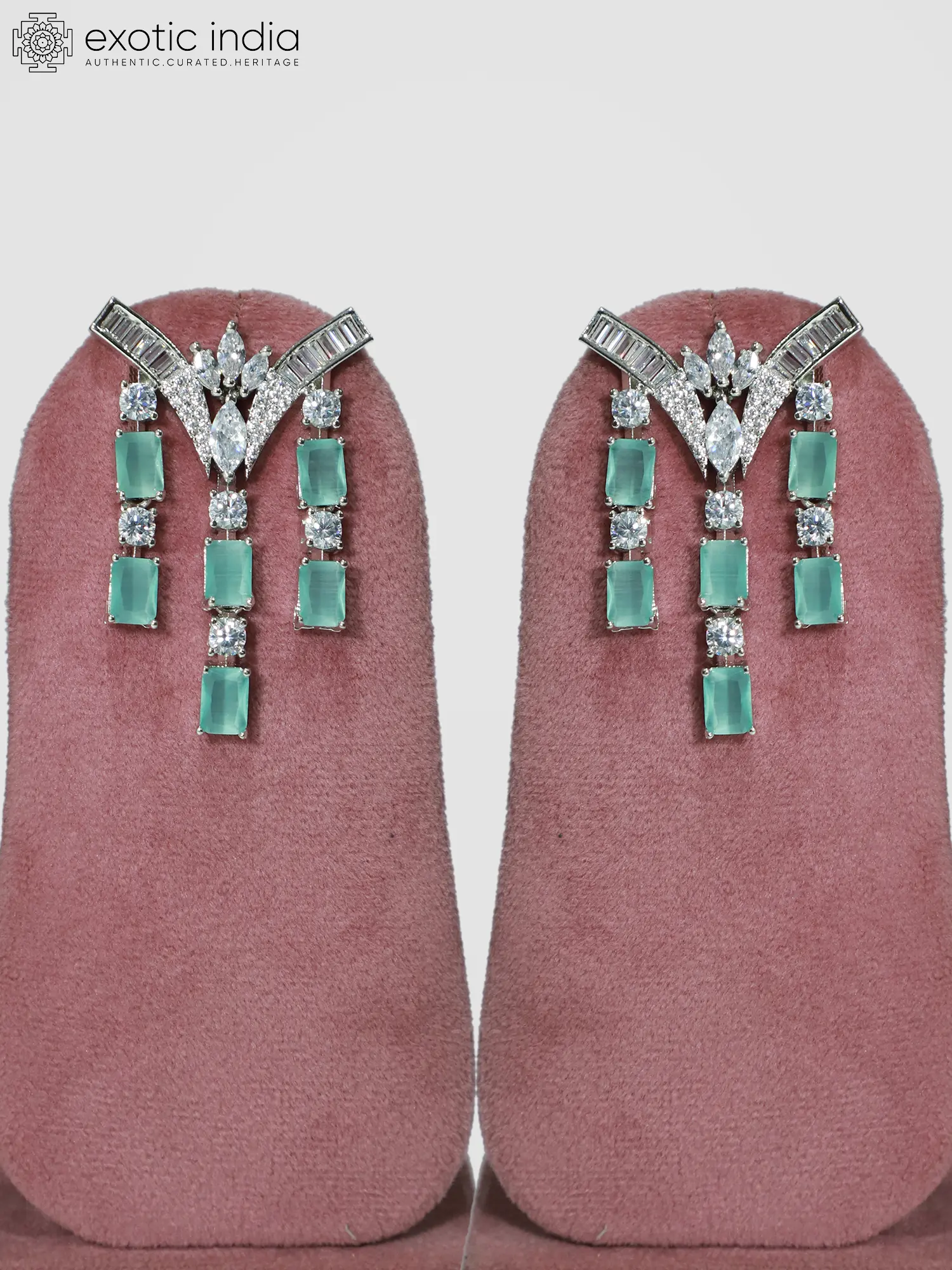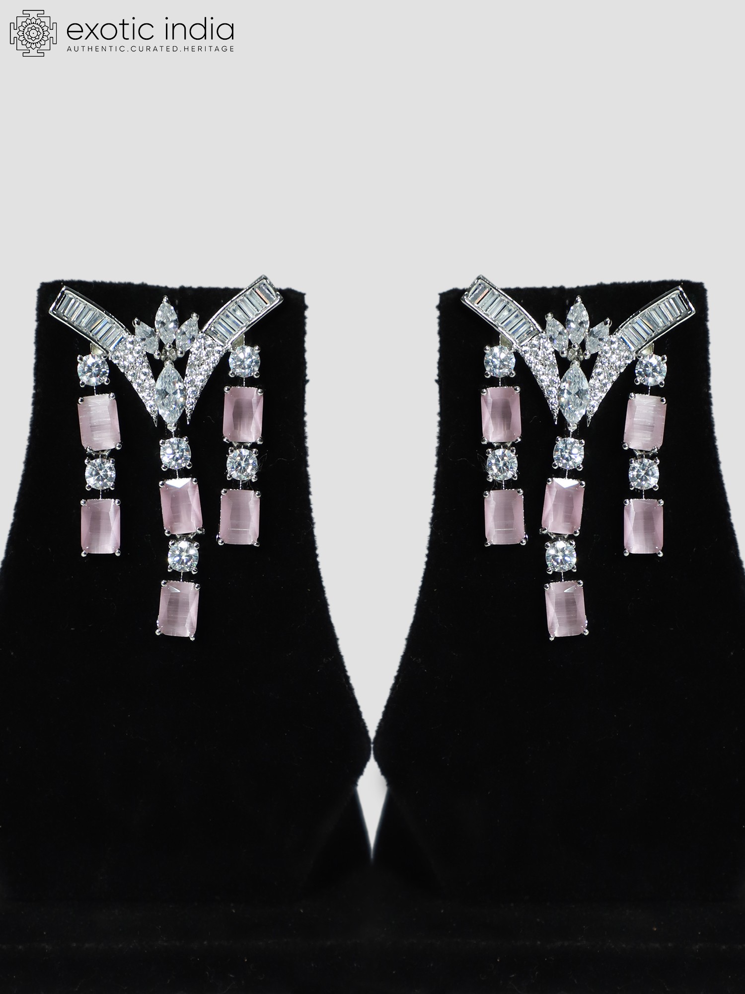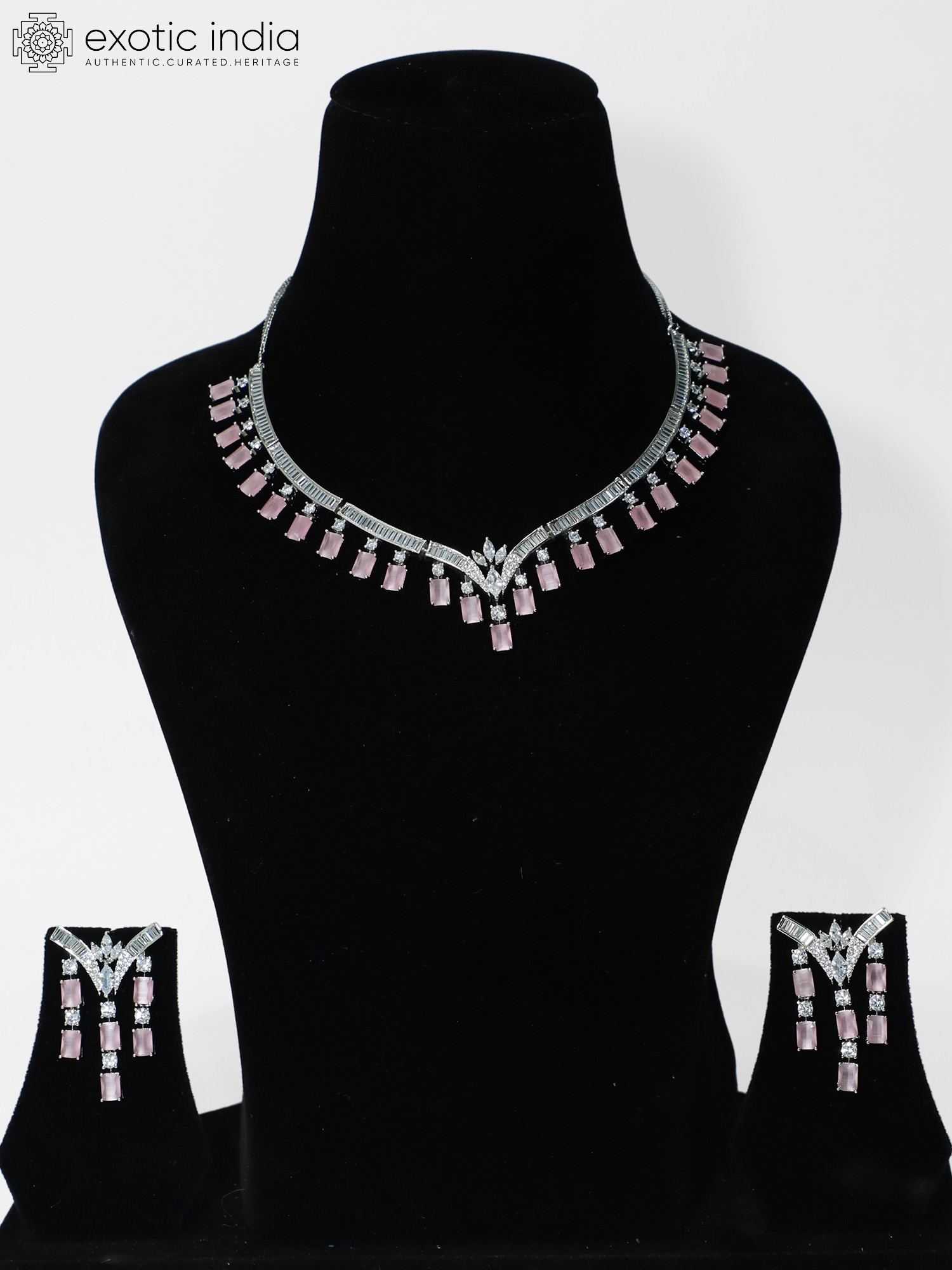 Geometric Design Stone Studded Elegant American Diamond Necklace Set With Earrings