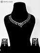The necklace boasts a captivating design. It features a structured arrangement that gently graces the neckline. The set includes exquisitely crafted earrings. These mirror the necklace's design, creating a coordinated look.