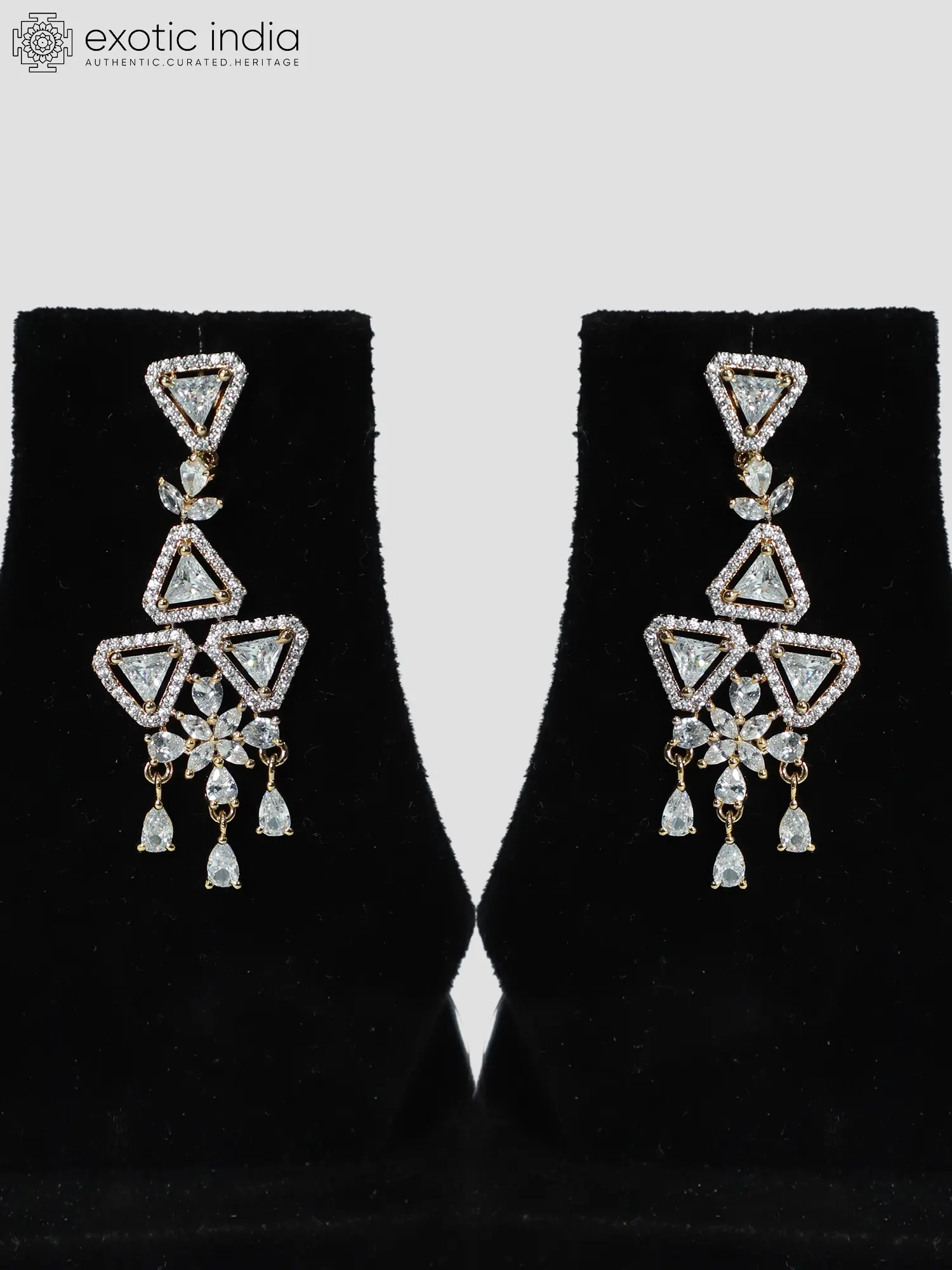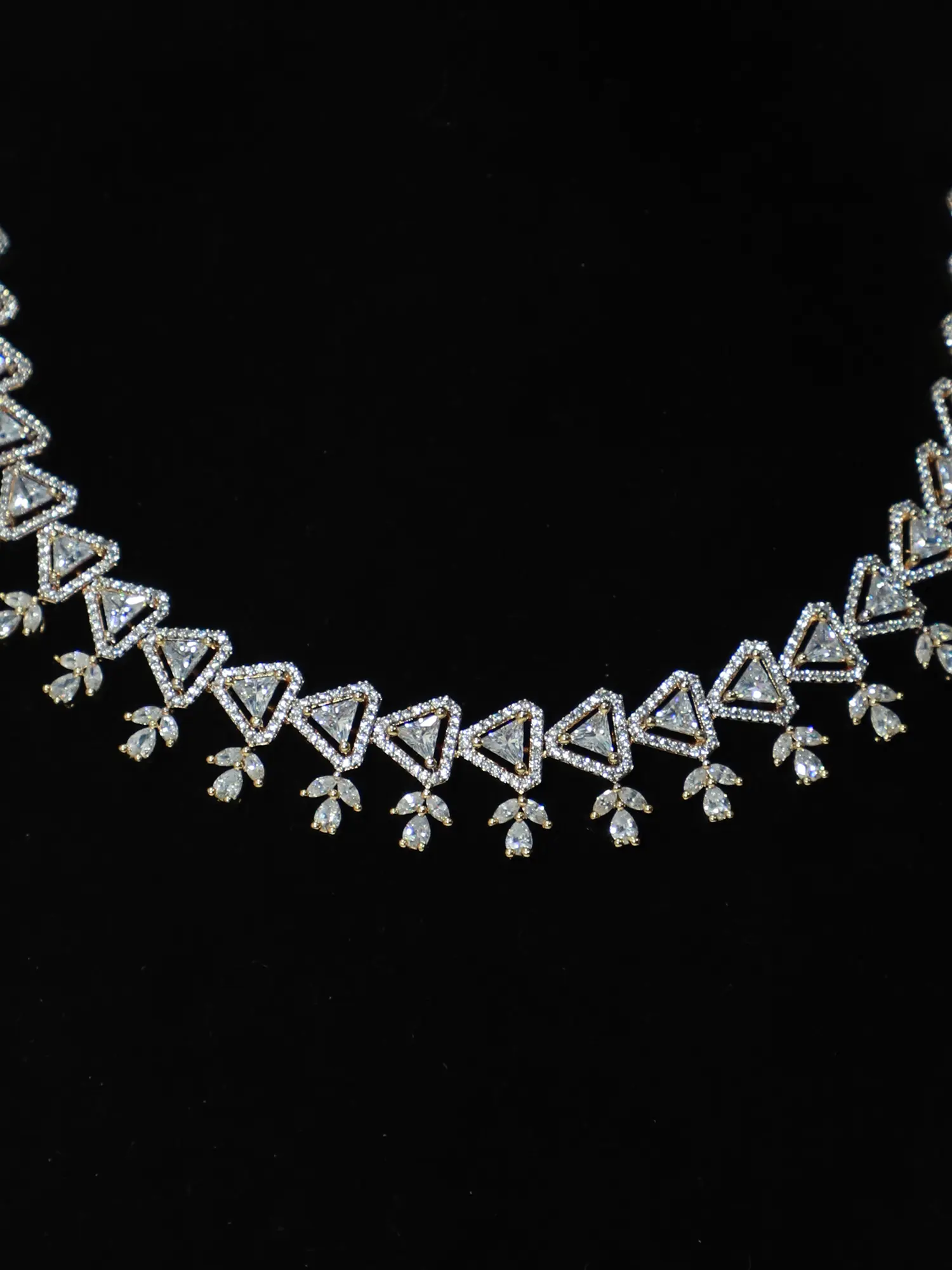 Geometric Design Stone Studded Elegant American Diamond Necklace Set With Earrings