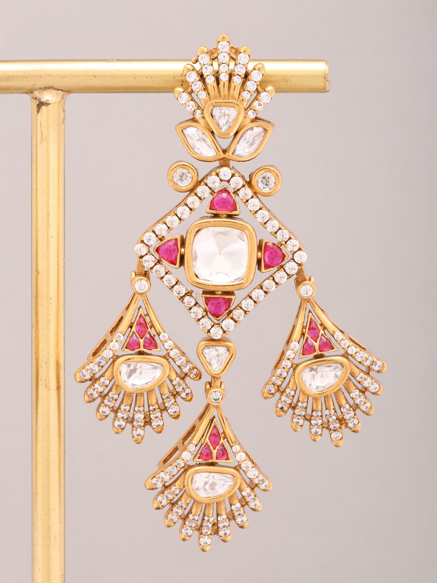Geometric Kundan Stone Bridal Statement Earrings