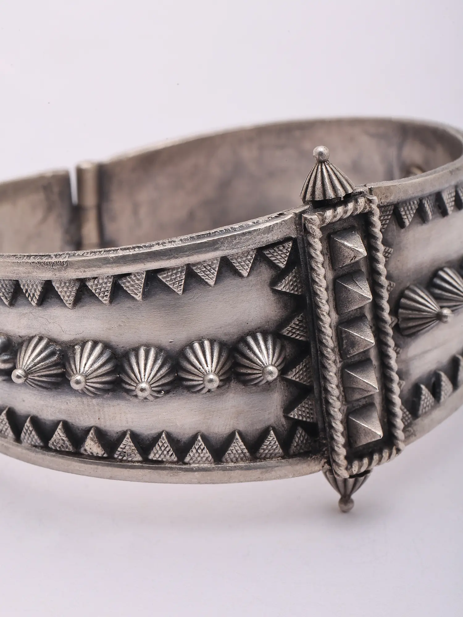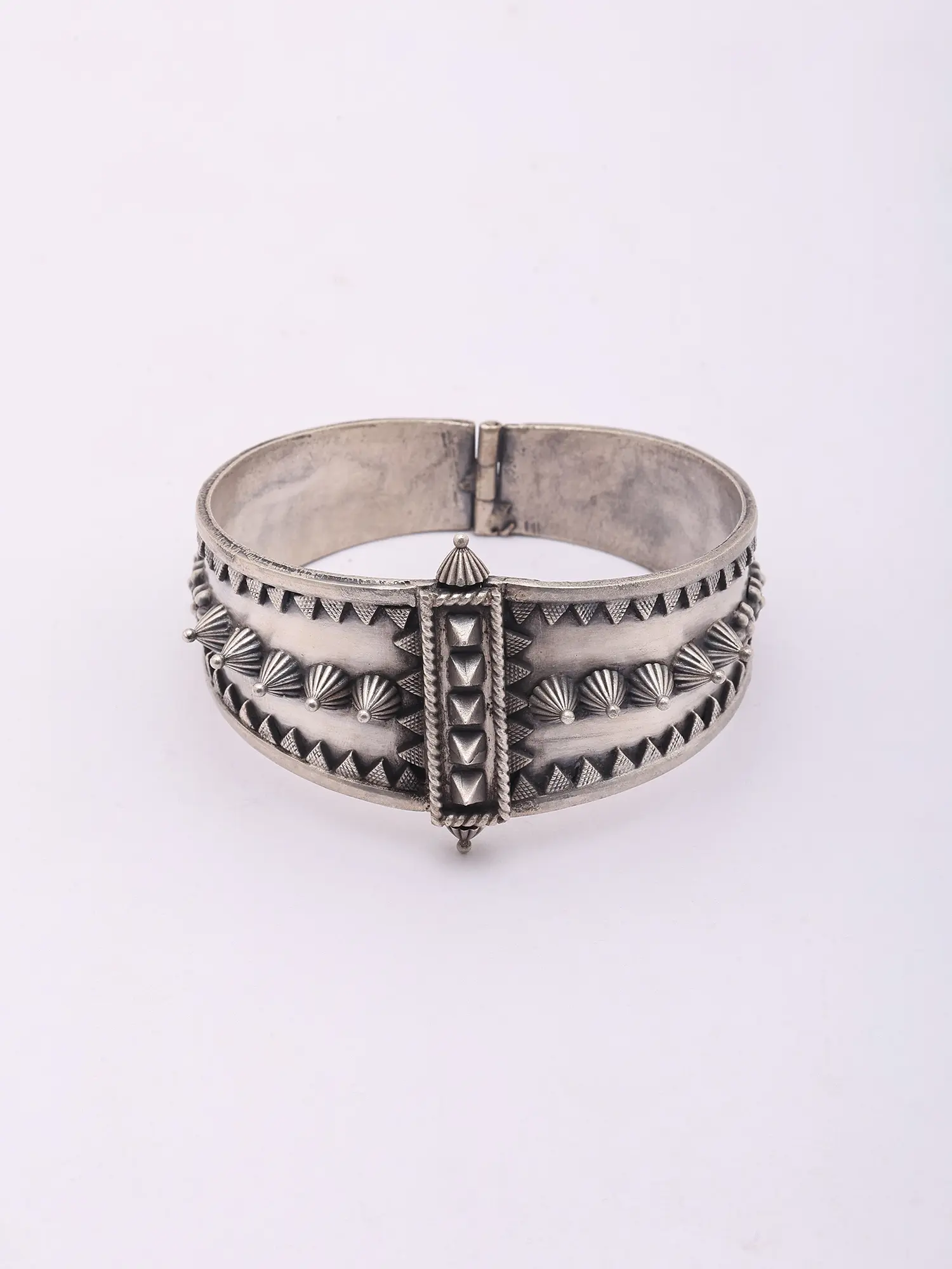 This design draws inspiration from the rich traditions of tribal adornment, where symbolism and artistry were deeply intertwined. The bold patterns and the unique oxidised finish reflect a lineage of skilled metalworkers who understood the power of adornment to tell stories and convey status. You'll feel a connection to this heritage every time you wear it, a subtle nod to the cultures that mastered the art of transforming metal into wearable tales.