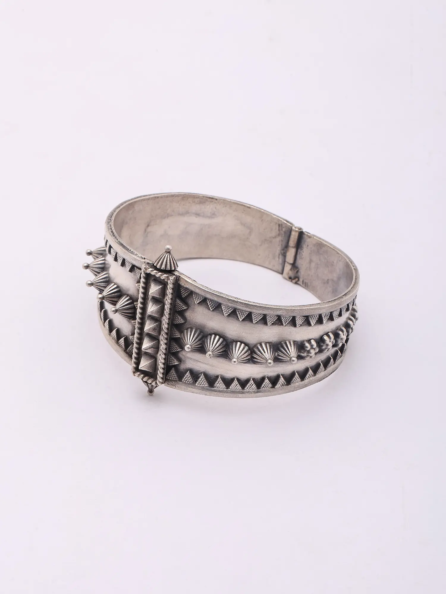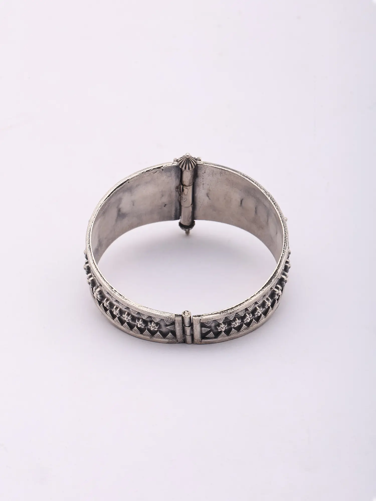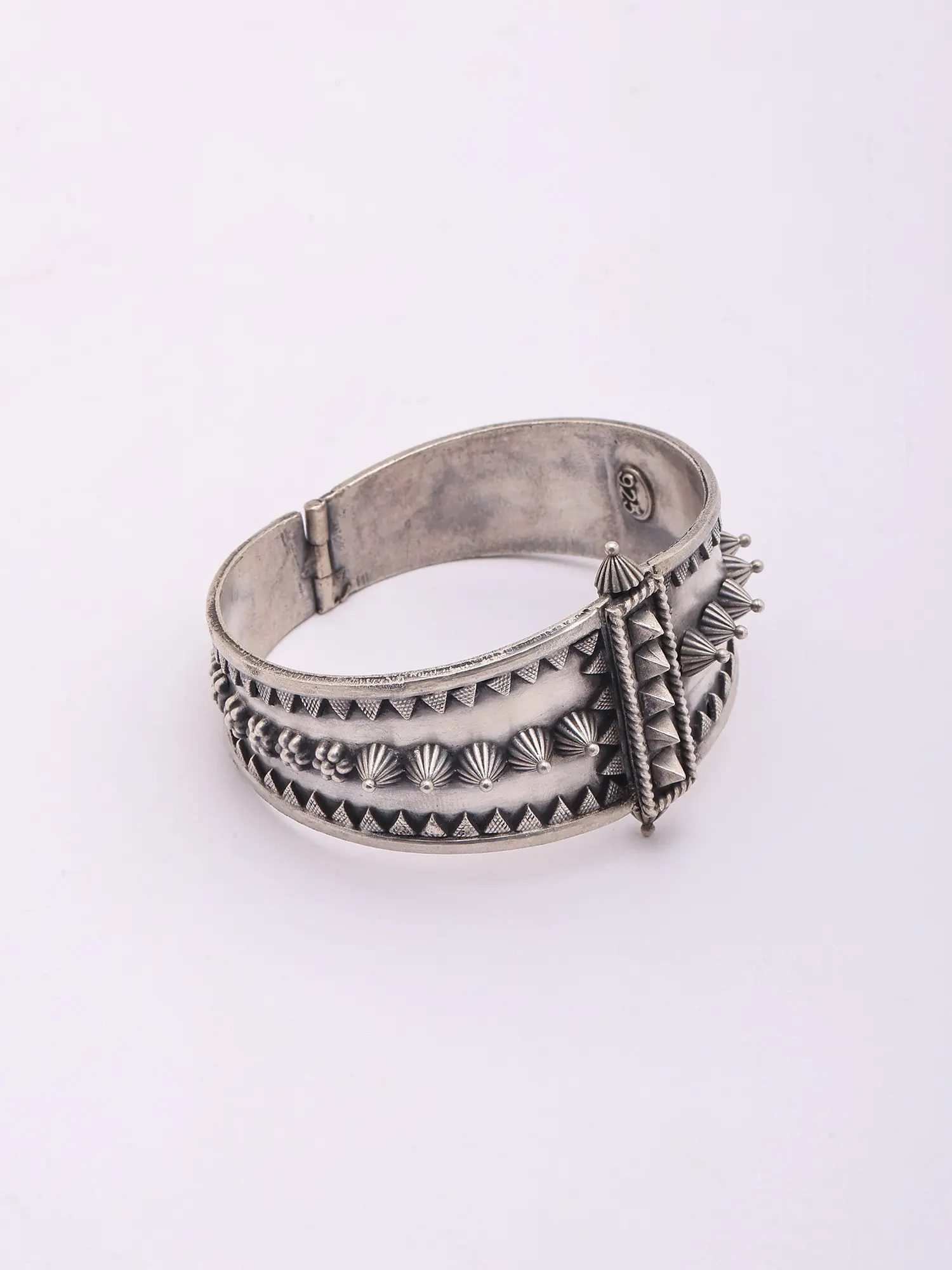 Geometric Tribal Oxidised Silver Openable Bracelet