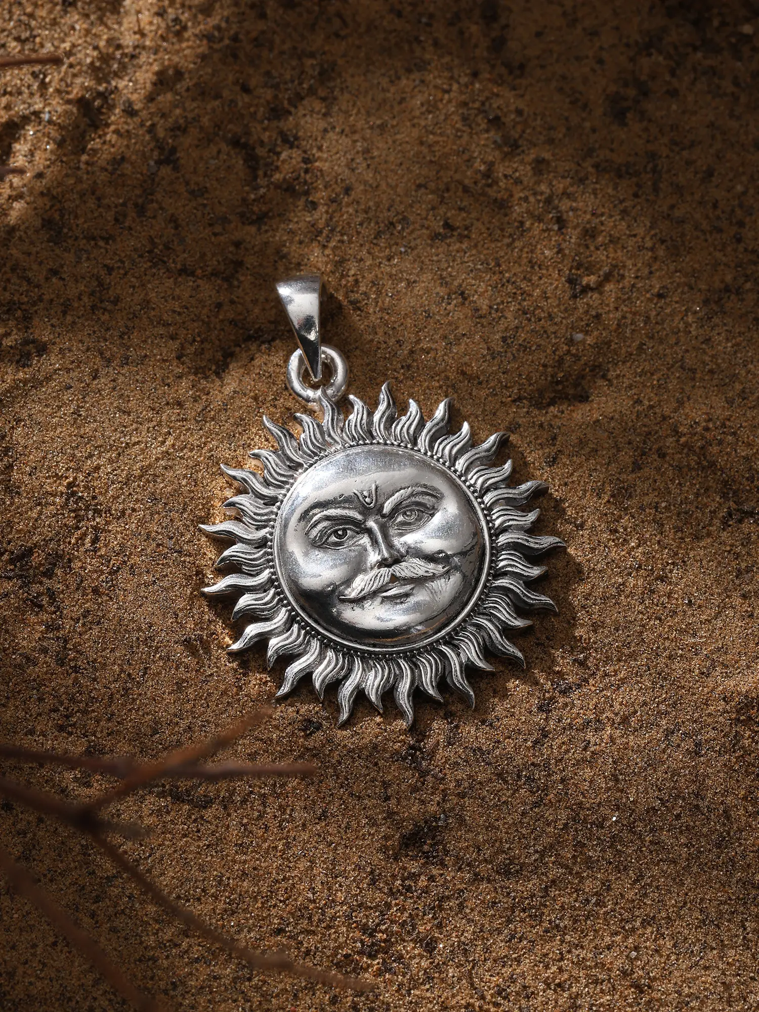 Sterling Silver Lord Surya Pendant with Tibetan Turquoise Gemstone