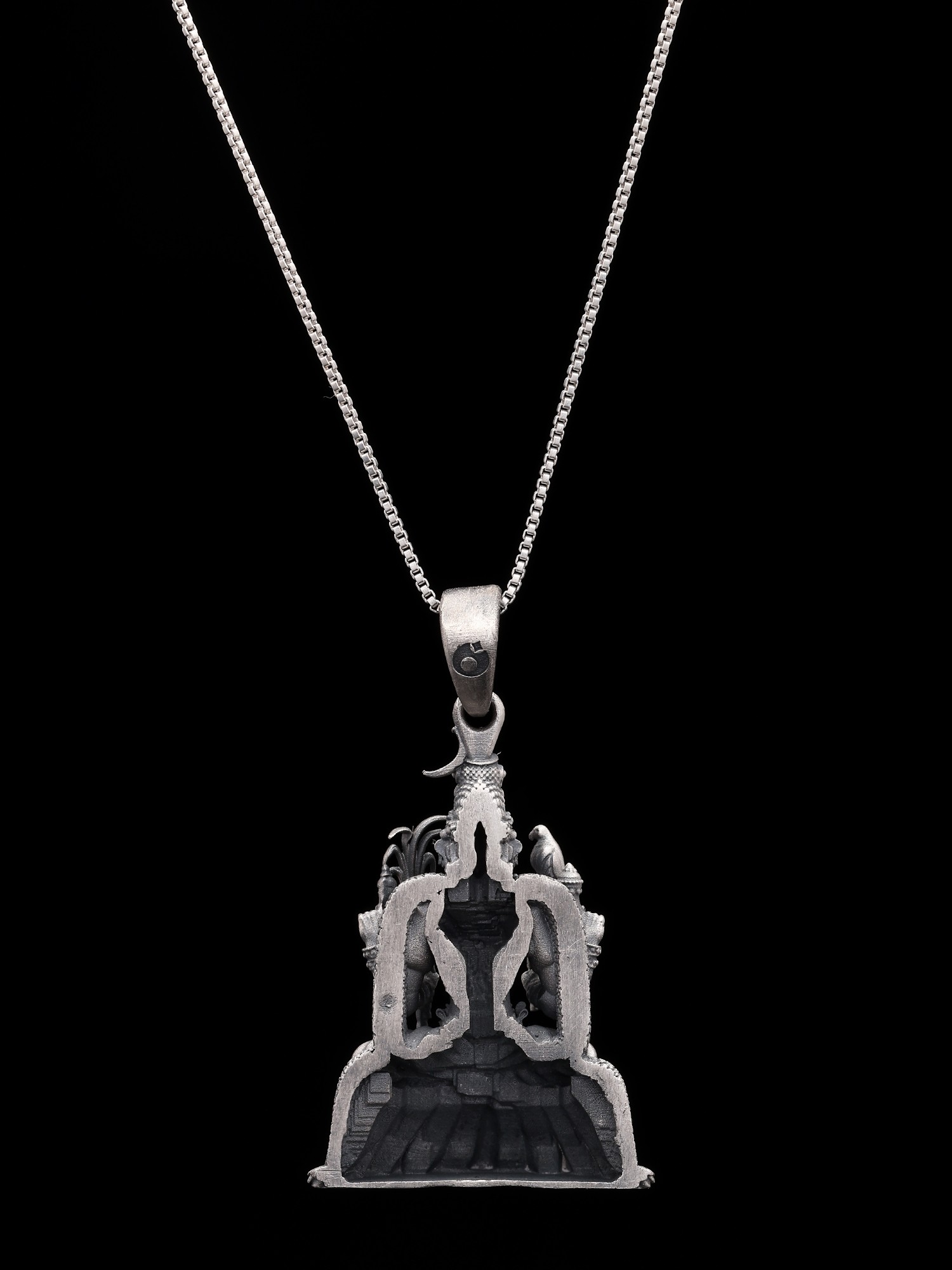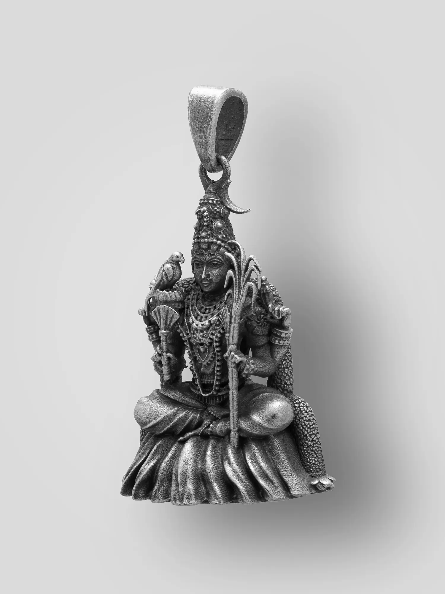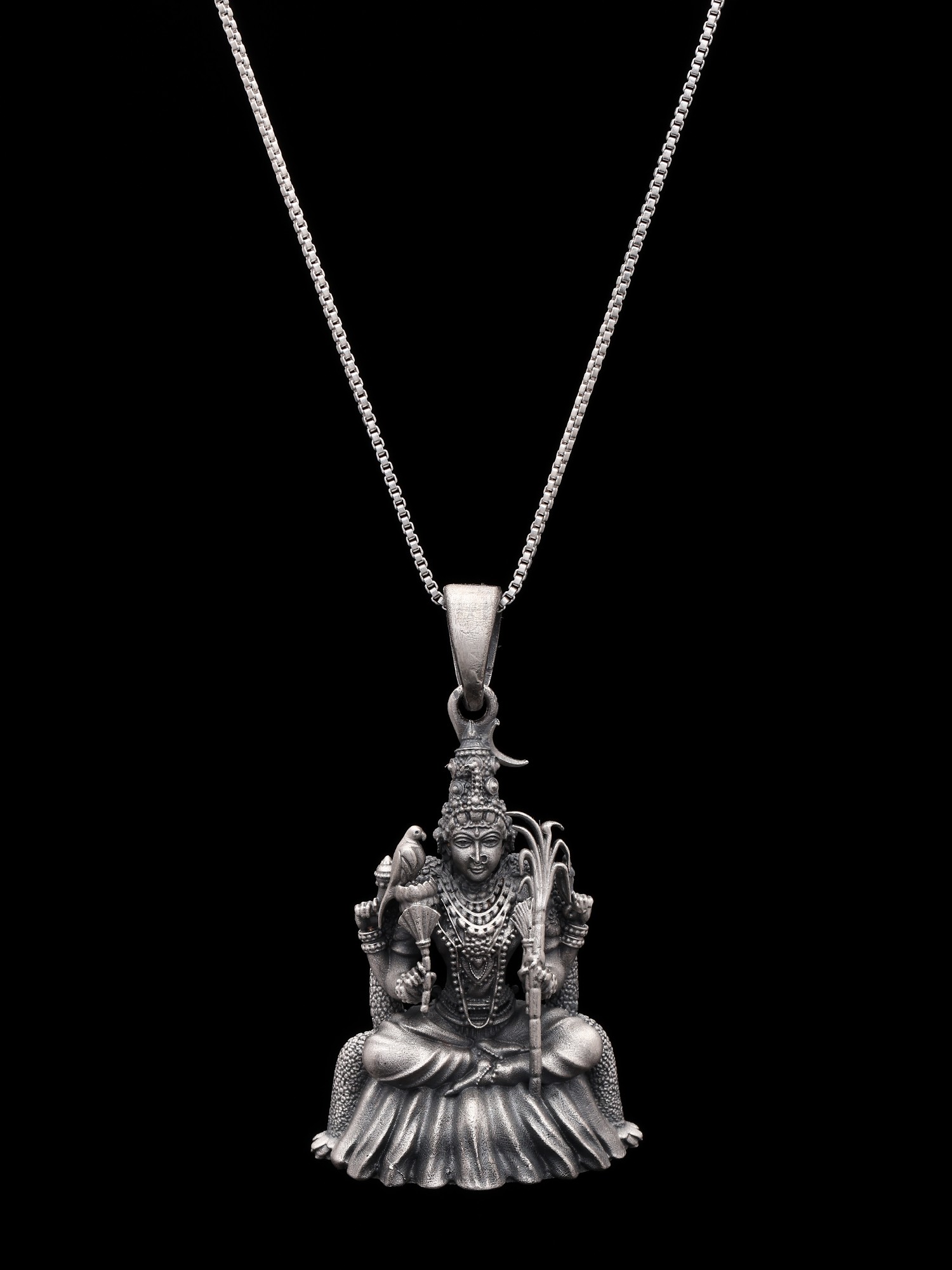 Adorn yourself with this intricately designed pendant, a testament to artistry and devotion. This exquisite piece captures the divine essence in stunning detail. Crafted with precision, the pendant embodies a sense of serenity and power, making it a meaningful addition to any jewelry collection. The antique finish adds a touch of vintage charm, emphasizing the rich history and cultural significance of the deity it represents.