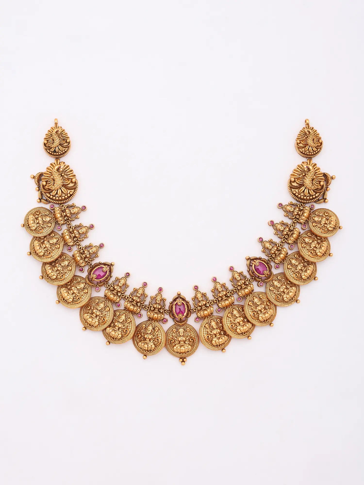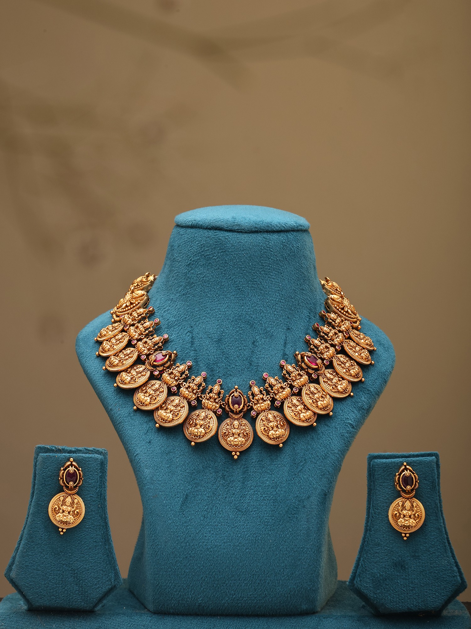 Temple-Style Goddess Lakshmi Multiple Strands Choker Necklace Set