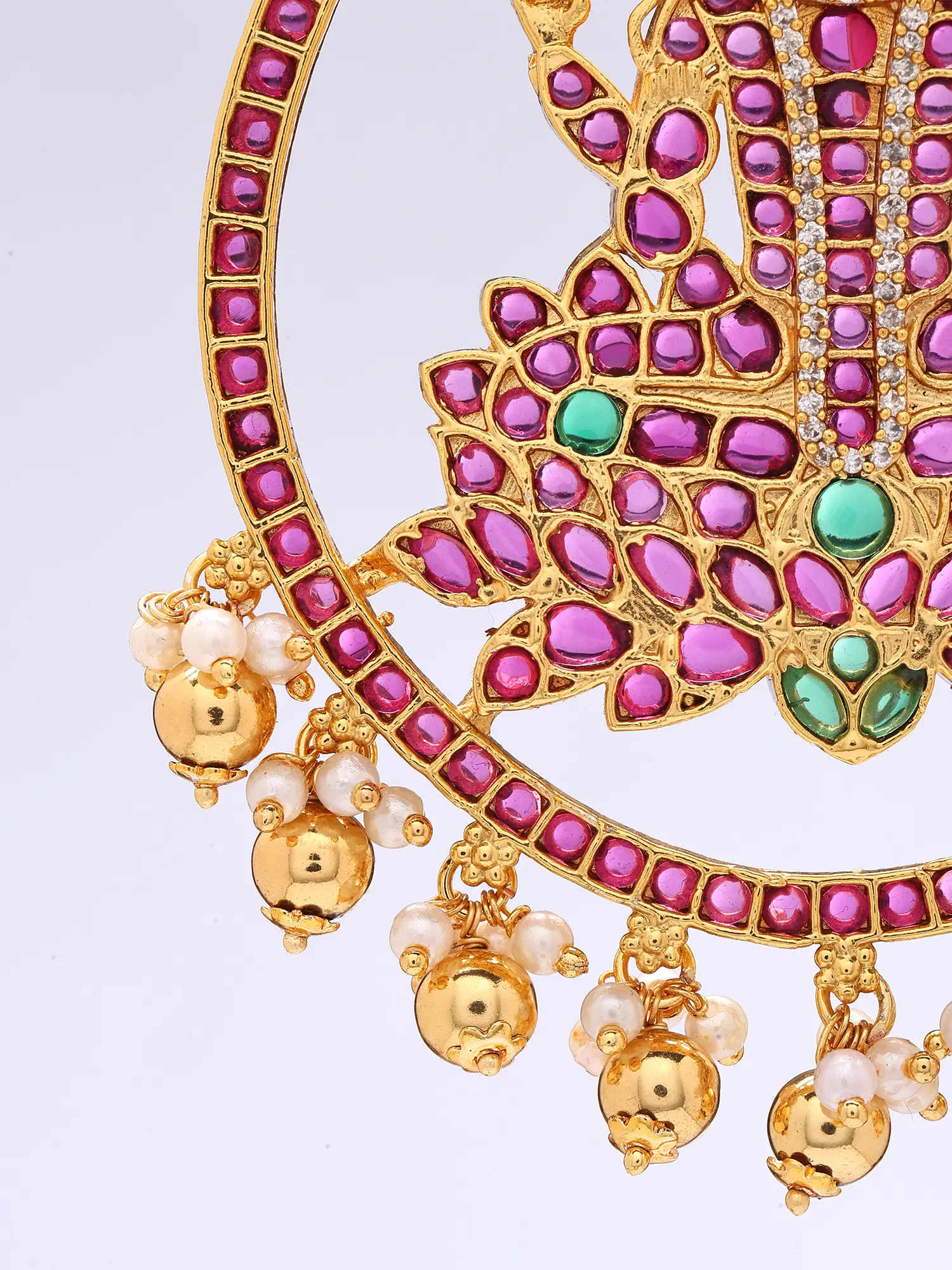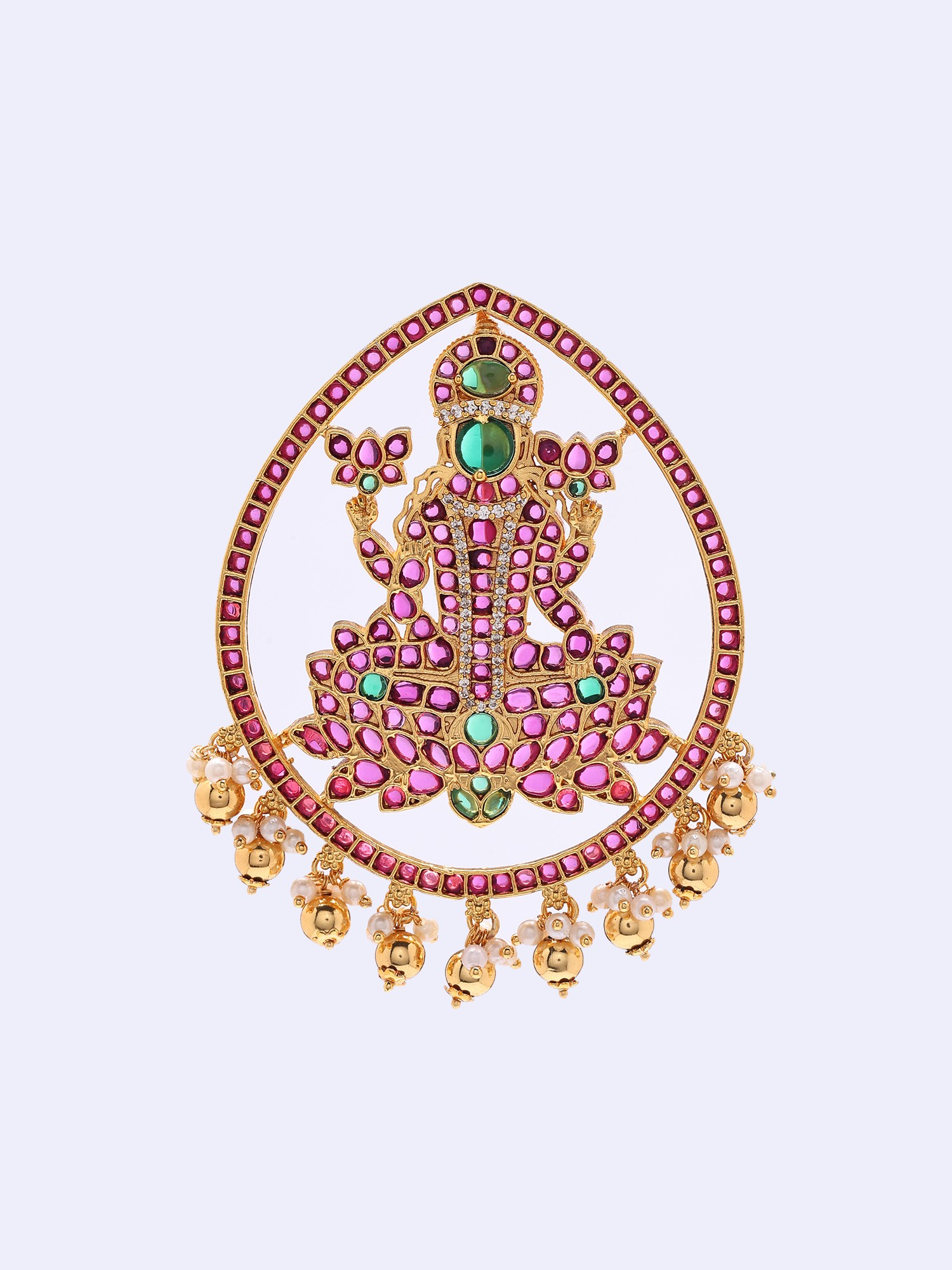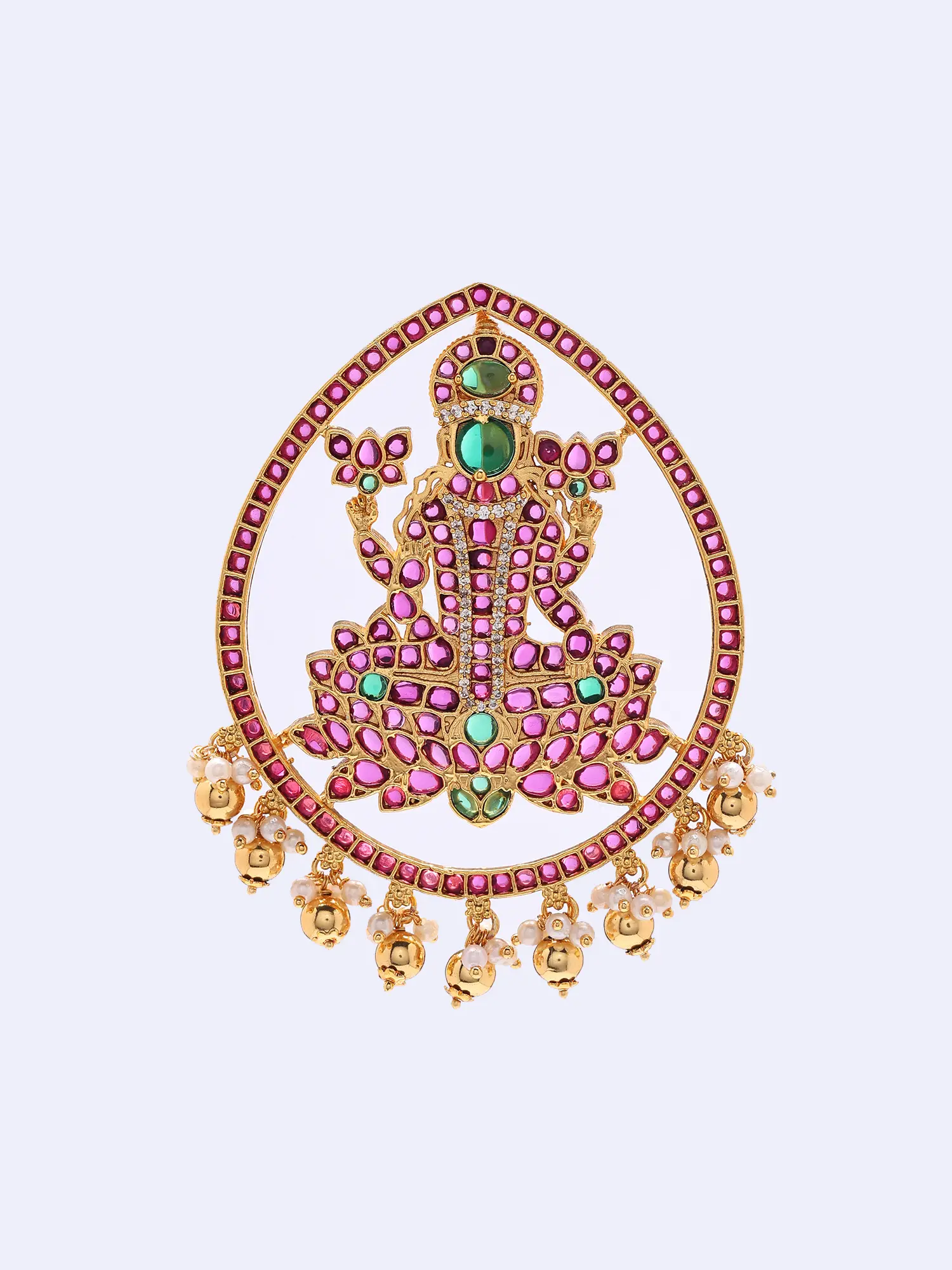 Goddess Lakshmi Temple Style Stone-Studded Jadai Billai (Juda Brooch)